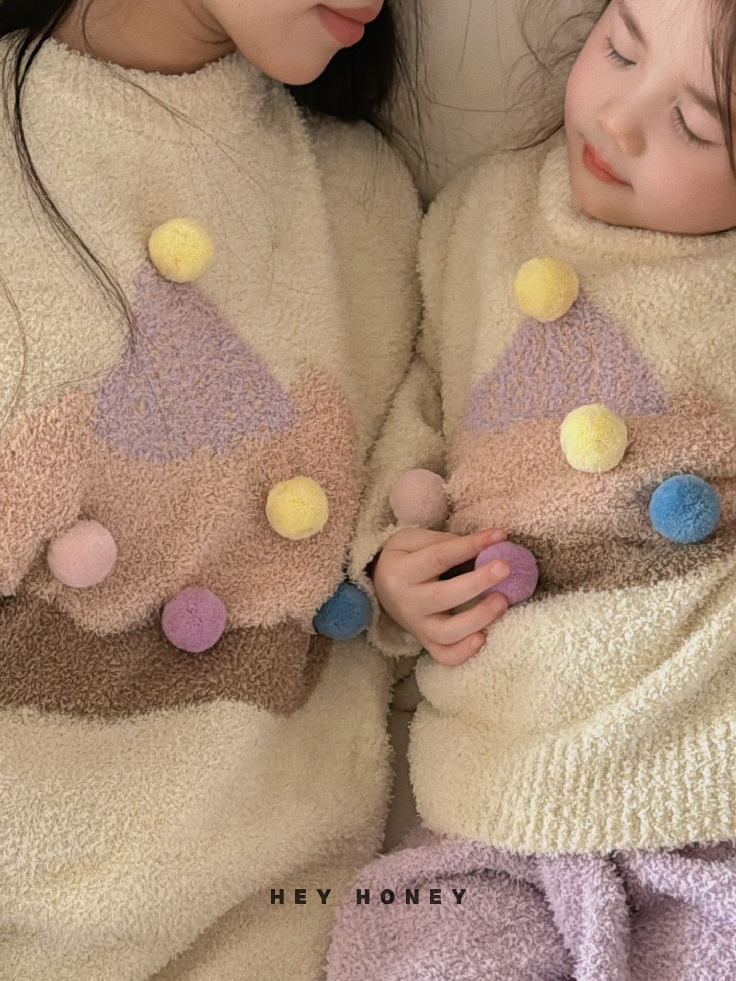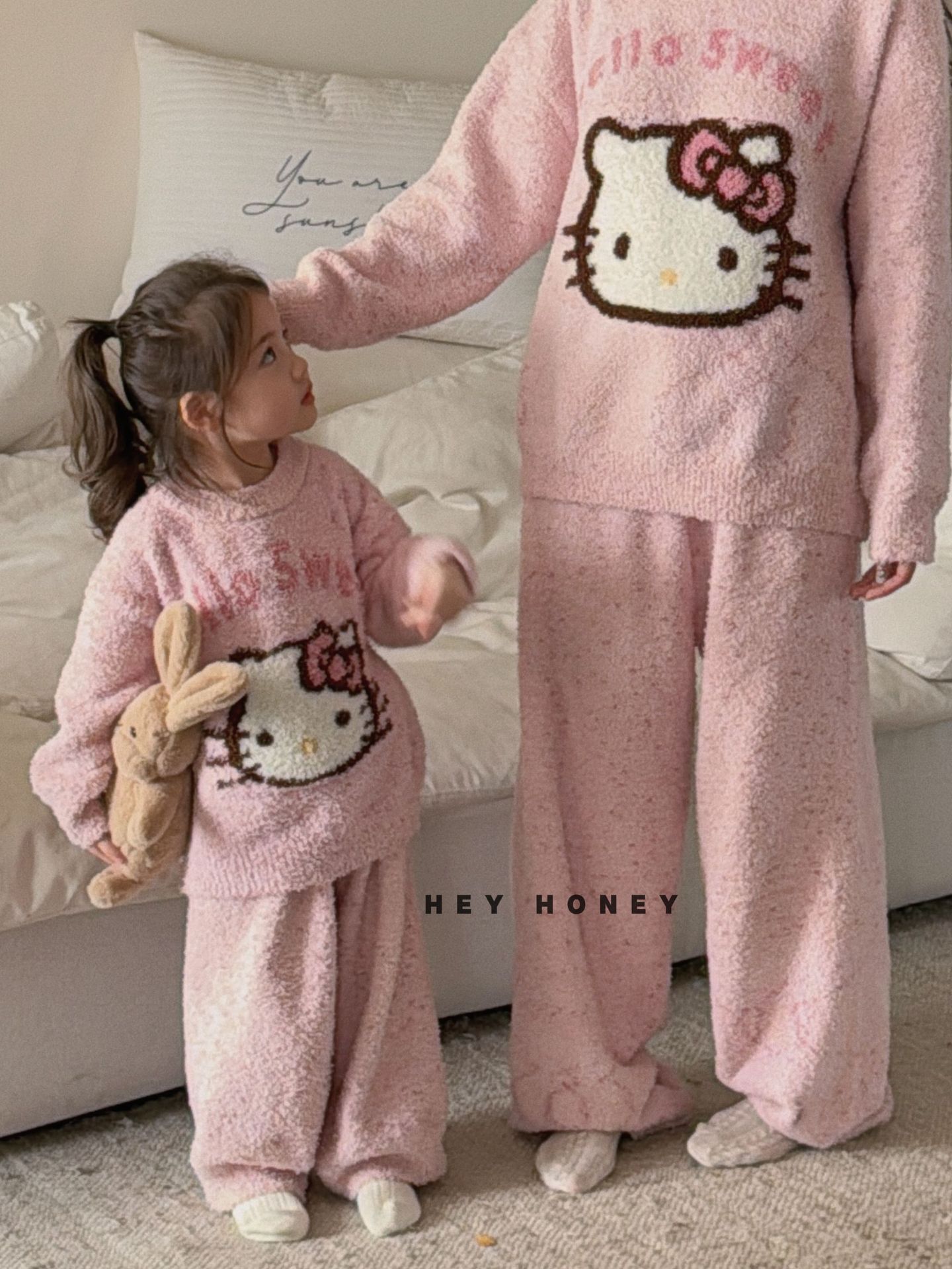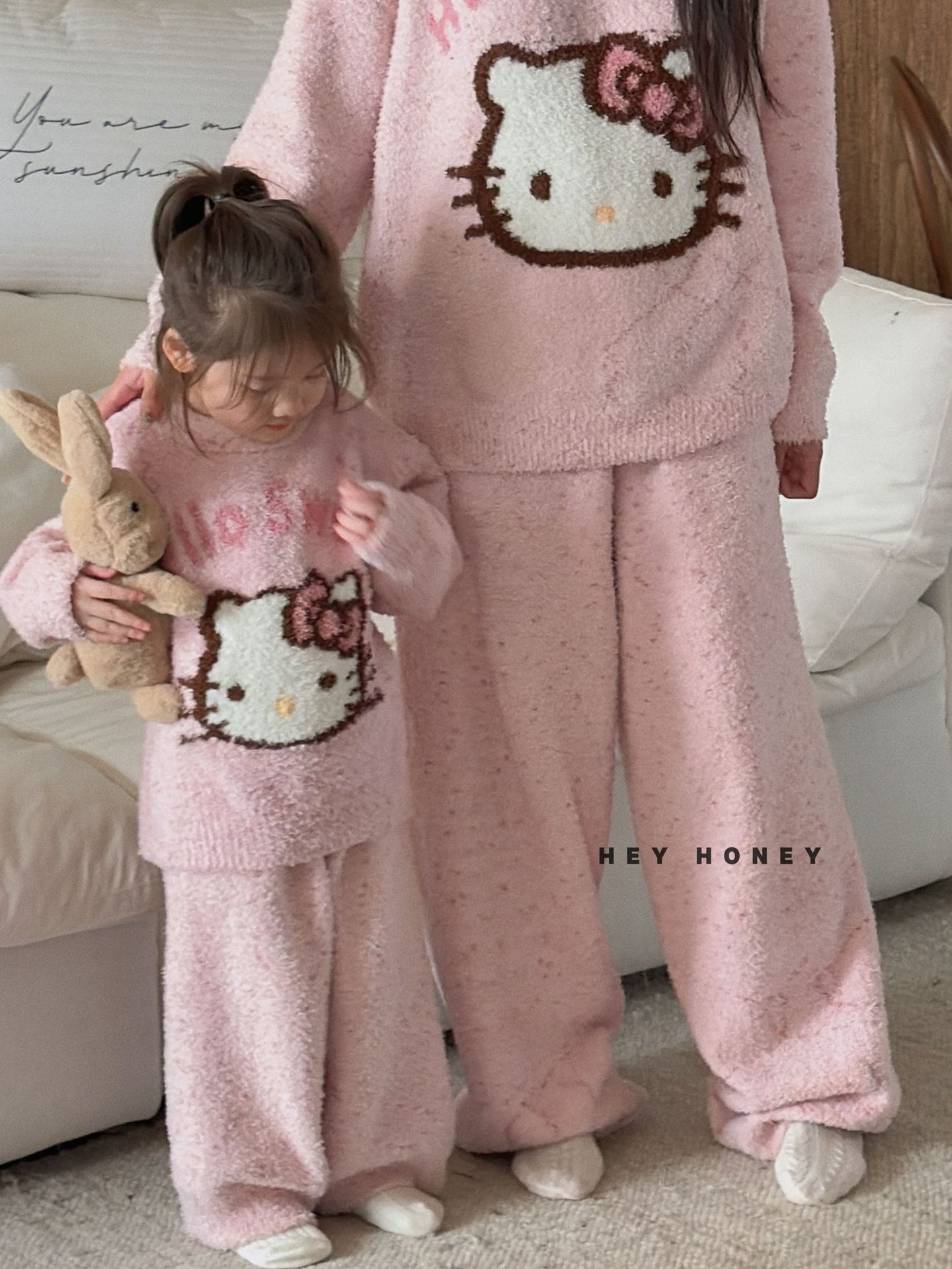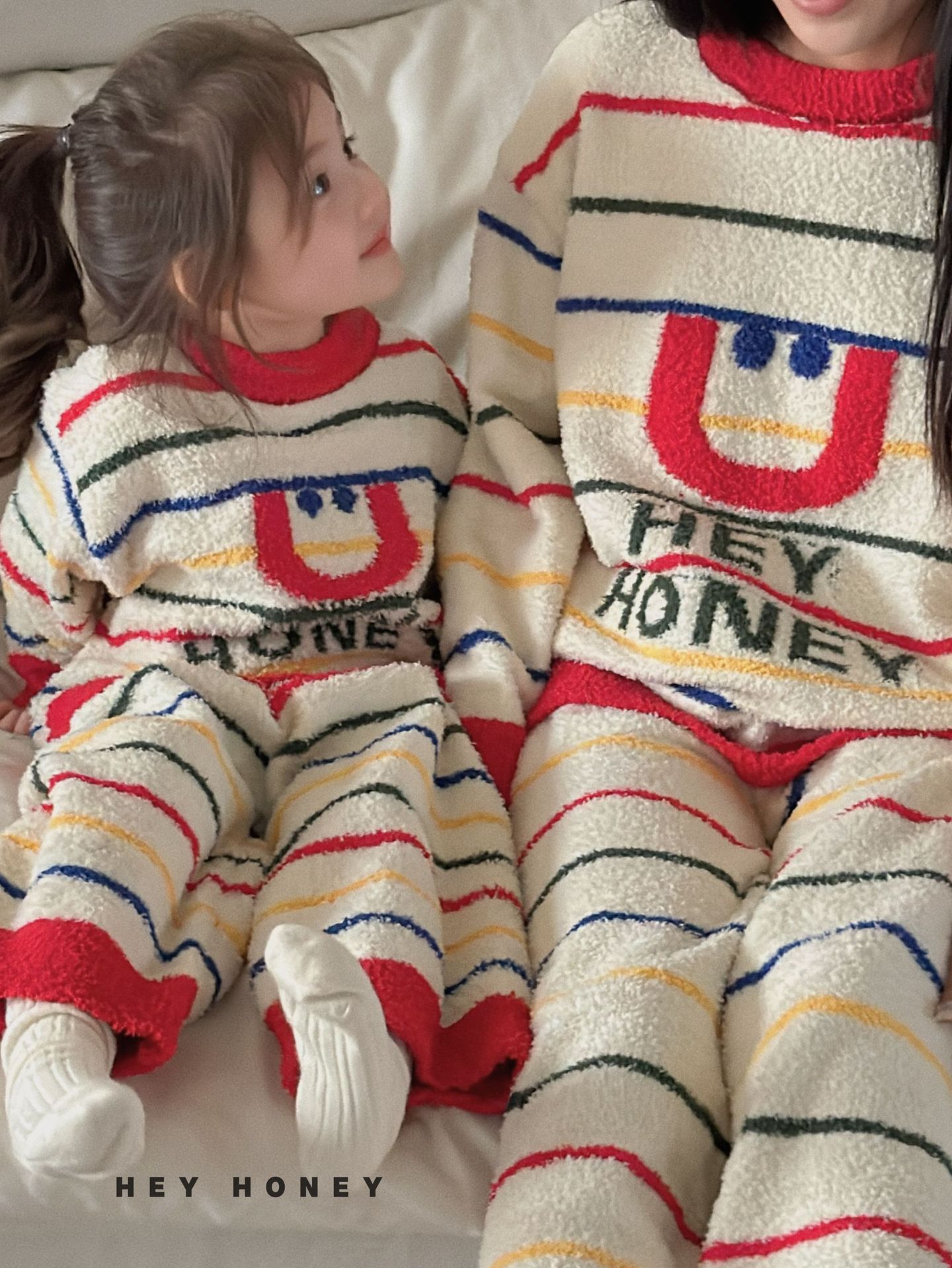 大小卷秋冬季新款半边绒可爱亲子装加厚保暖家居服套装
