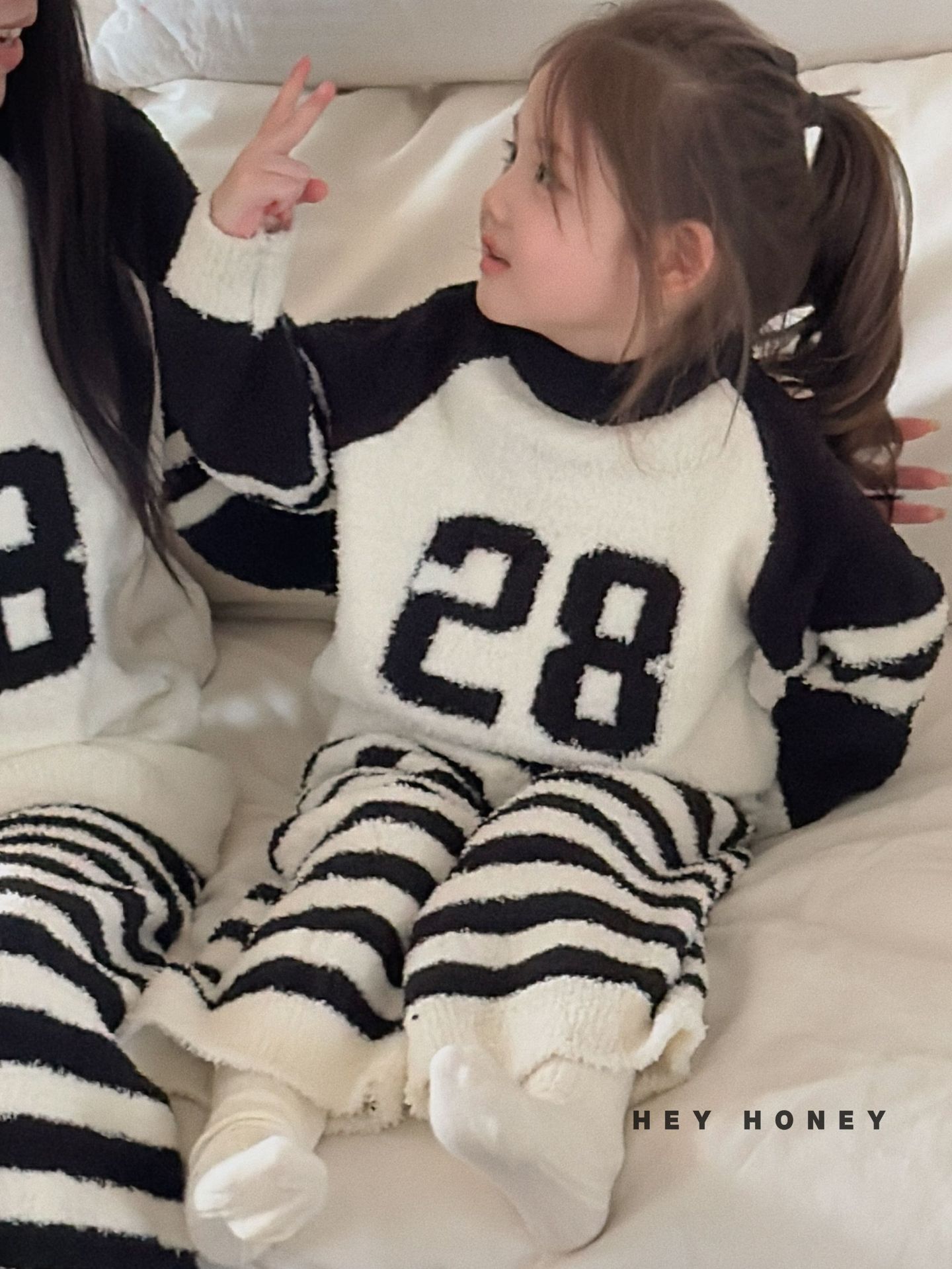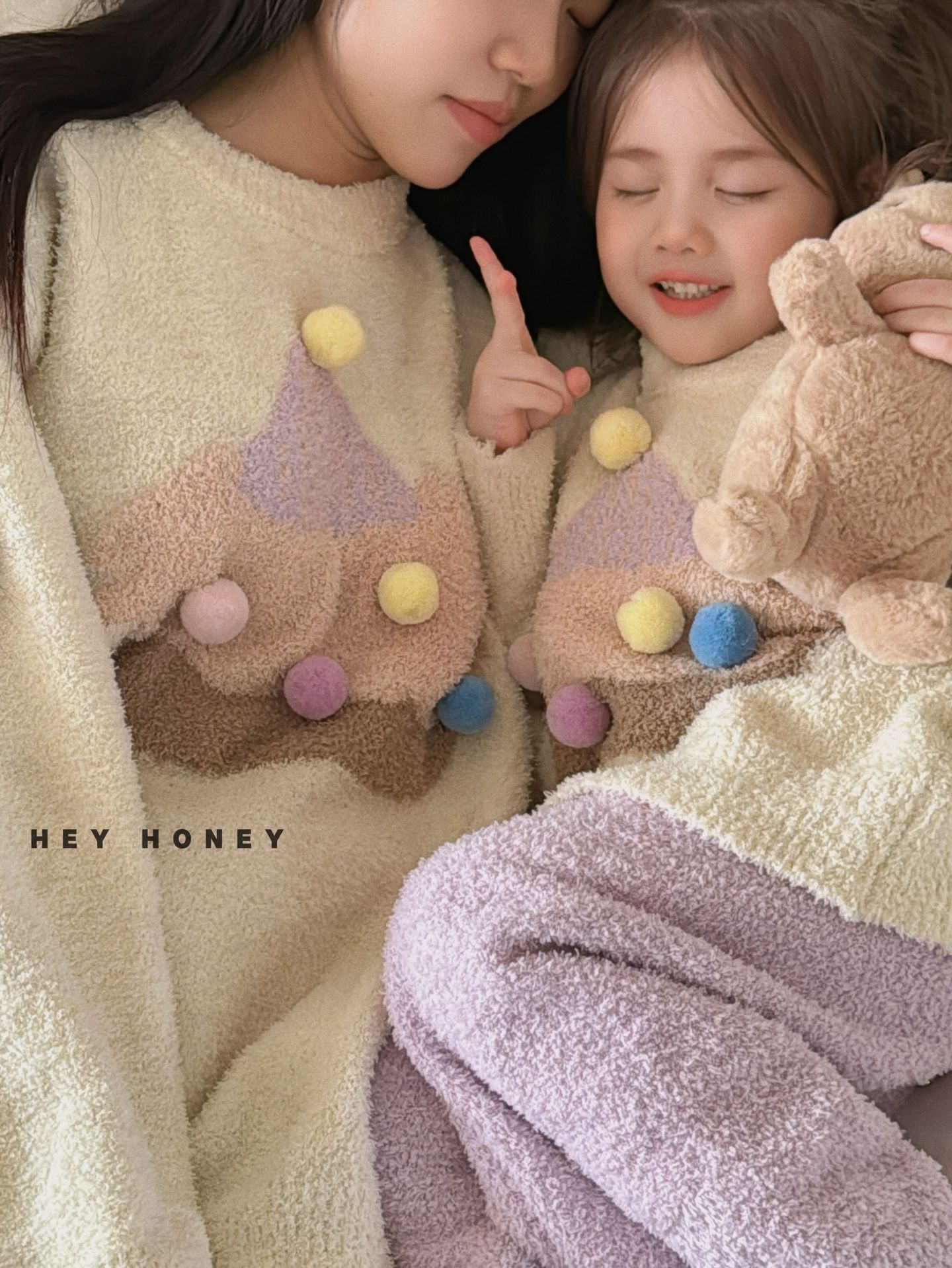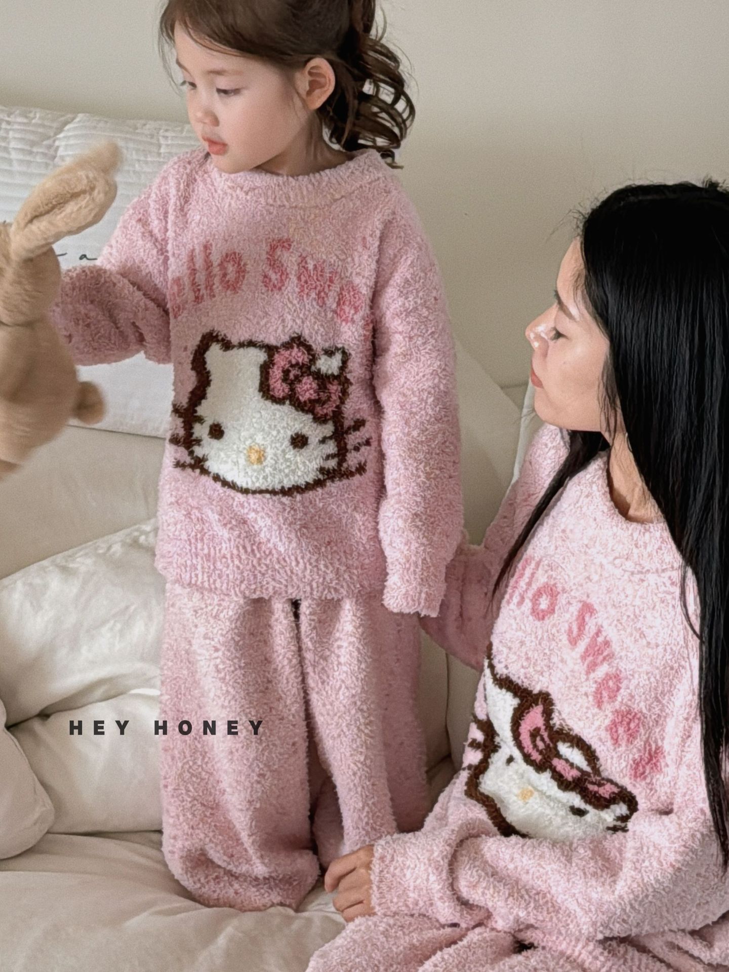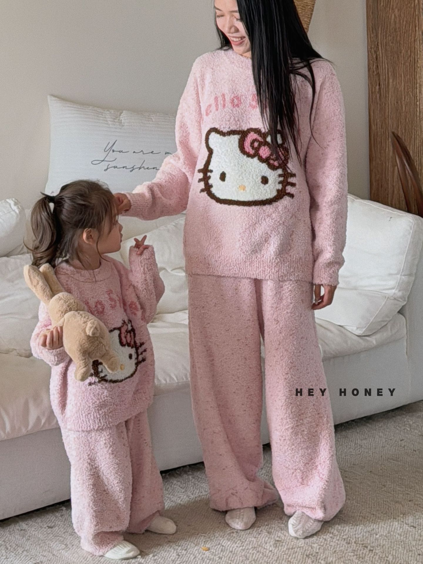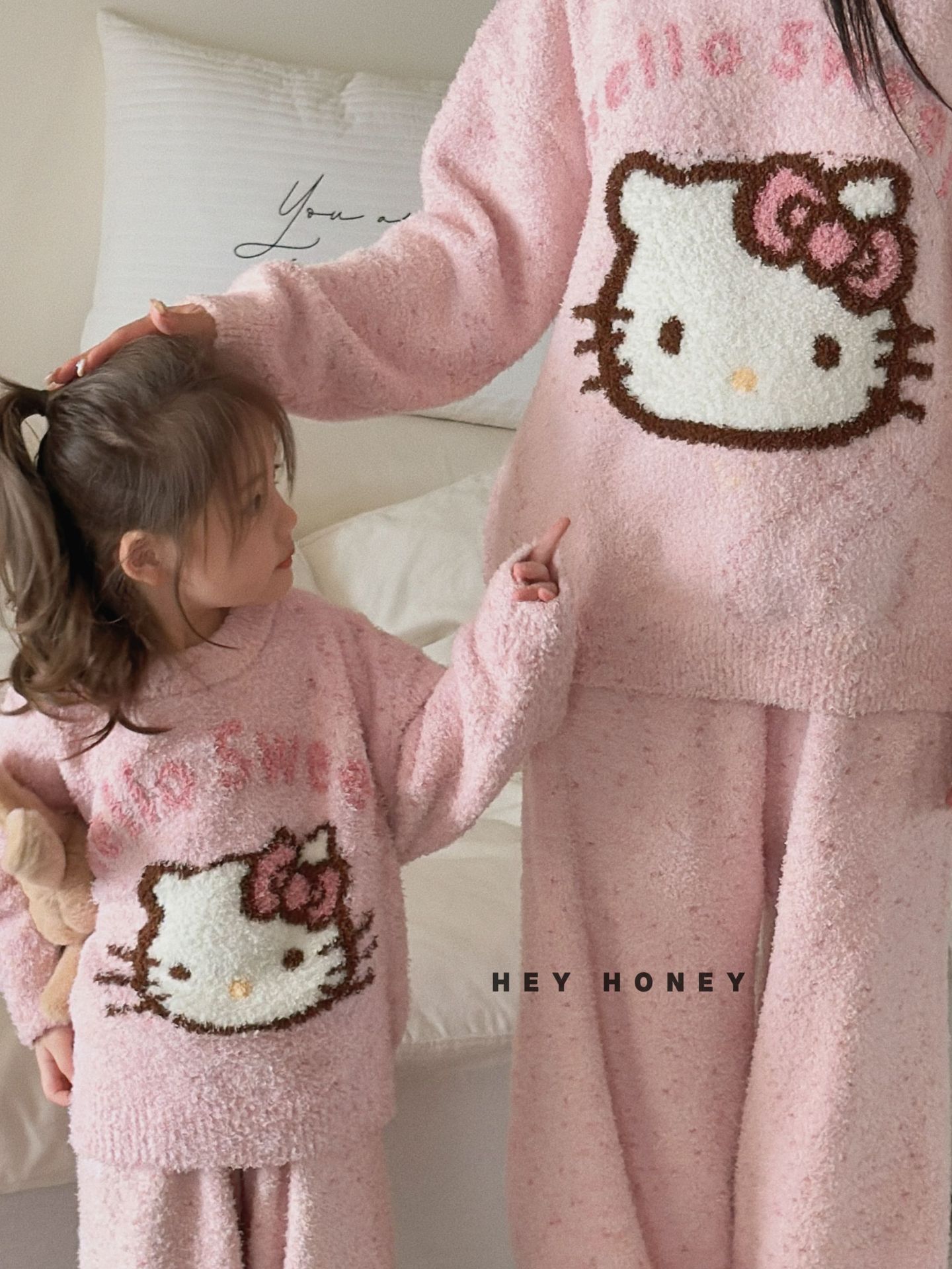 大小卷秋冬季新款半边绒可爱亲子装加厚保暖家居服套装