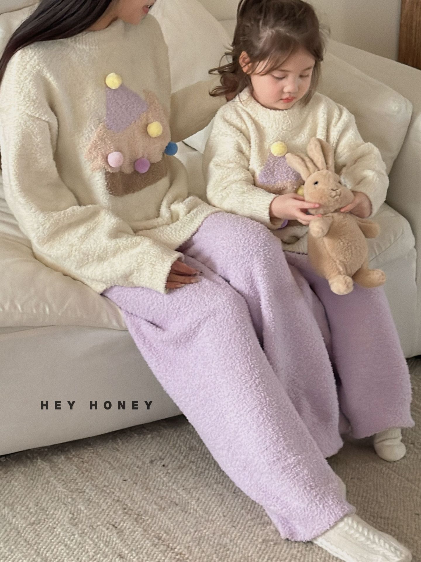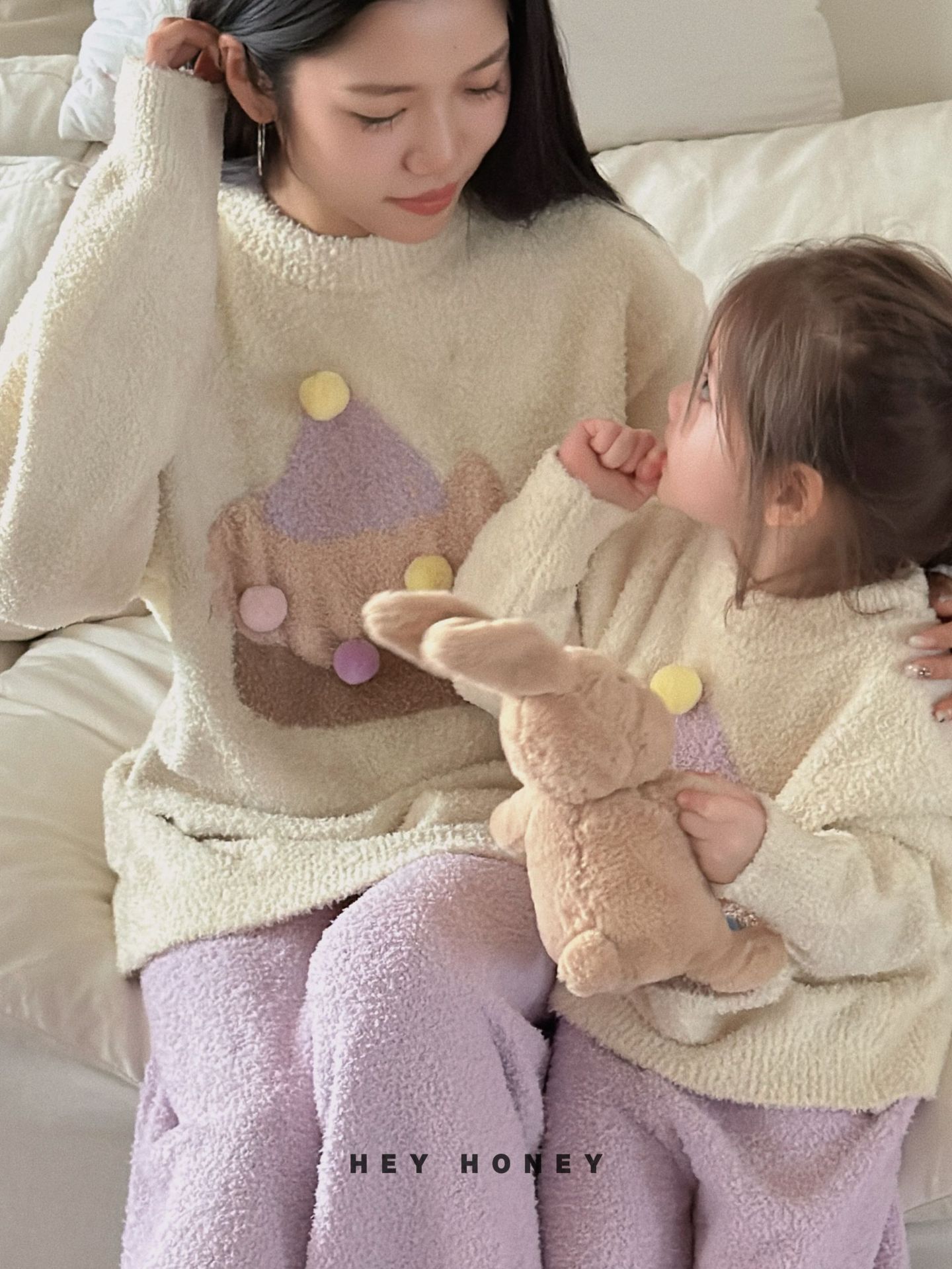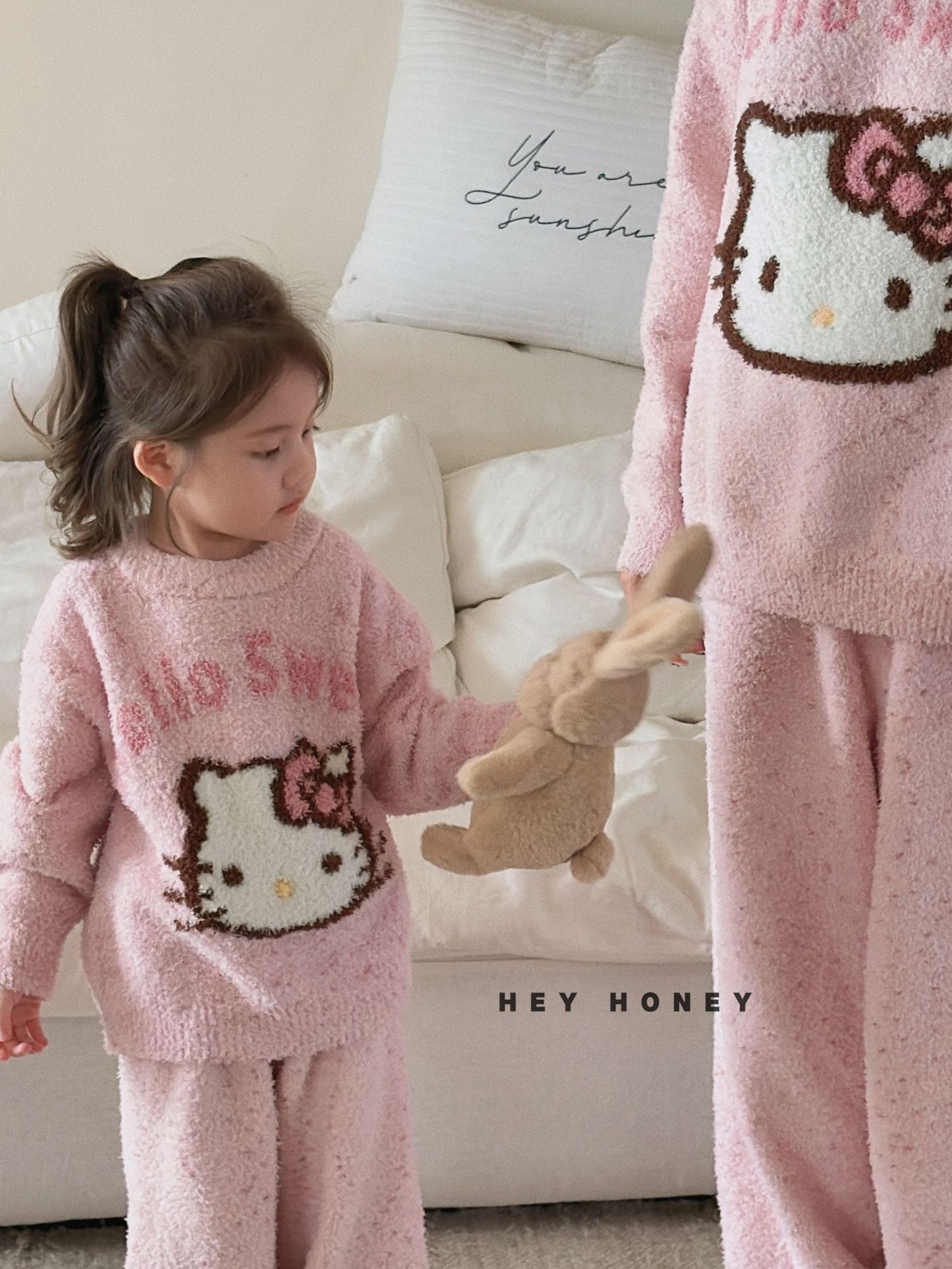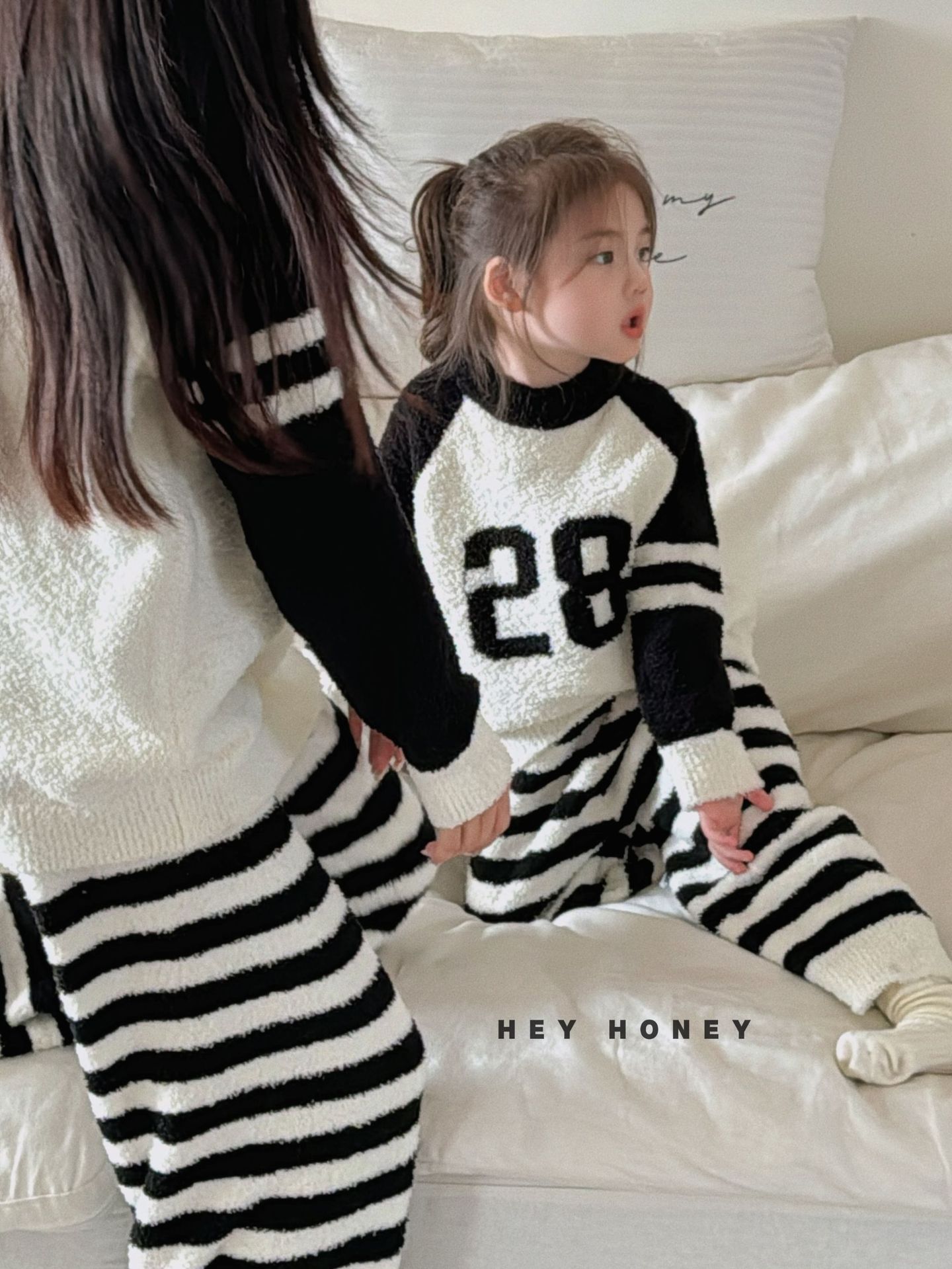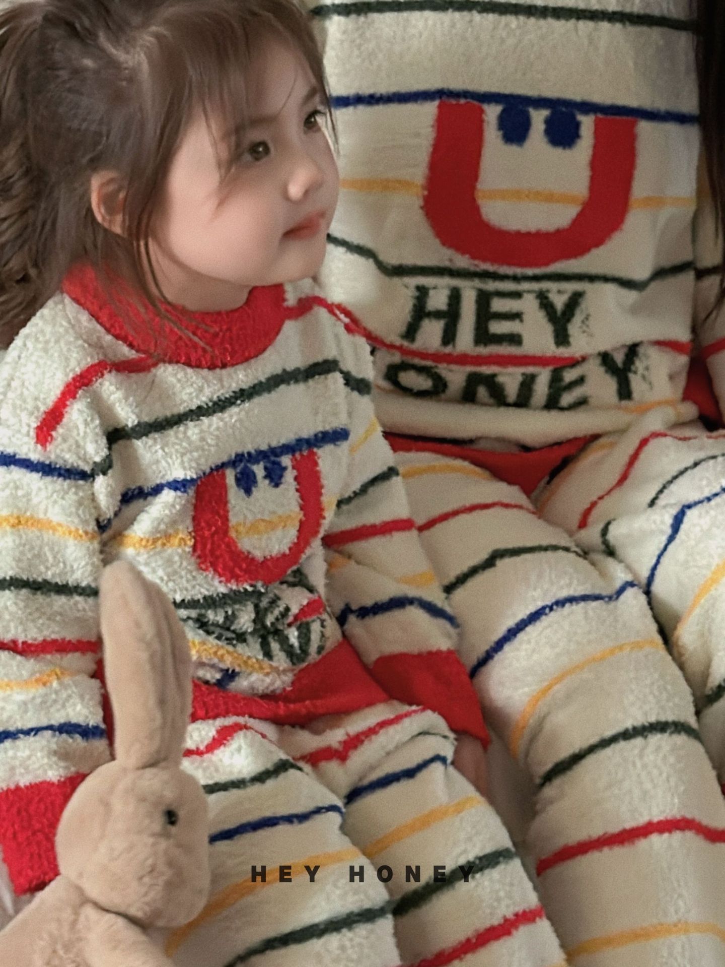 大小卷秋冬季新款半边绒可爱亲子装加厚保暖家居服套装