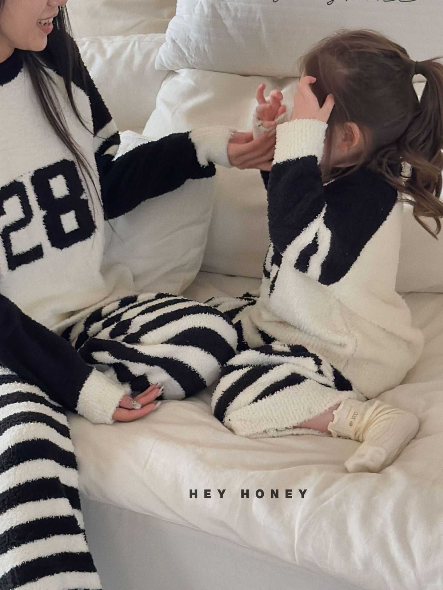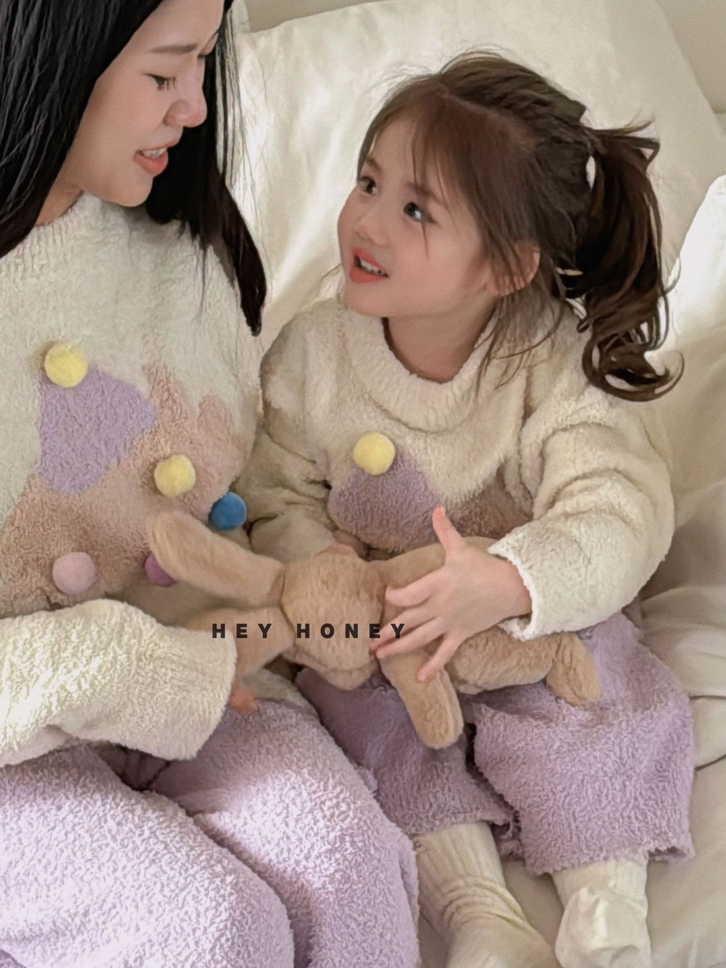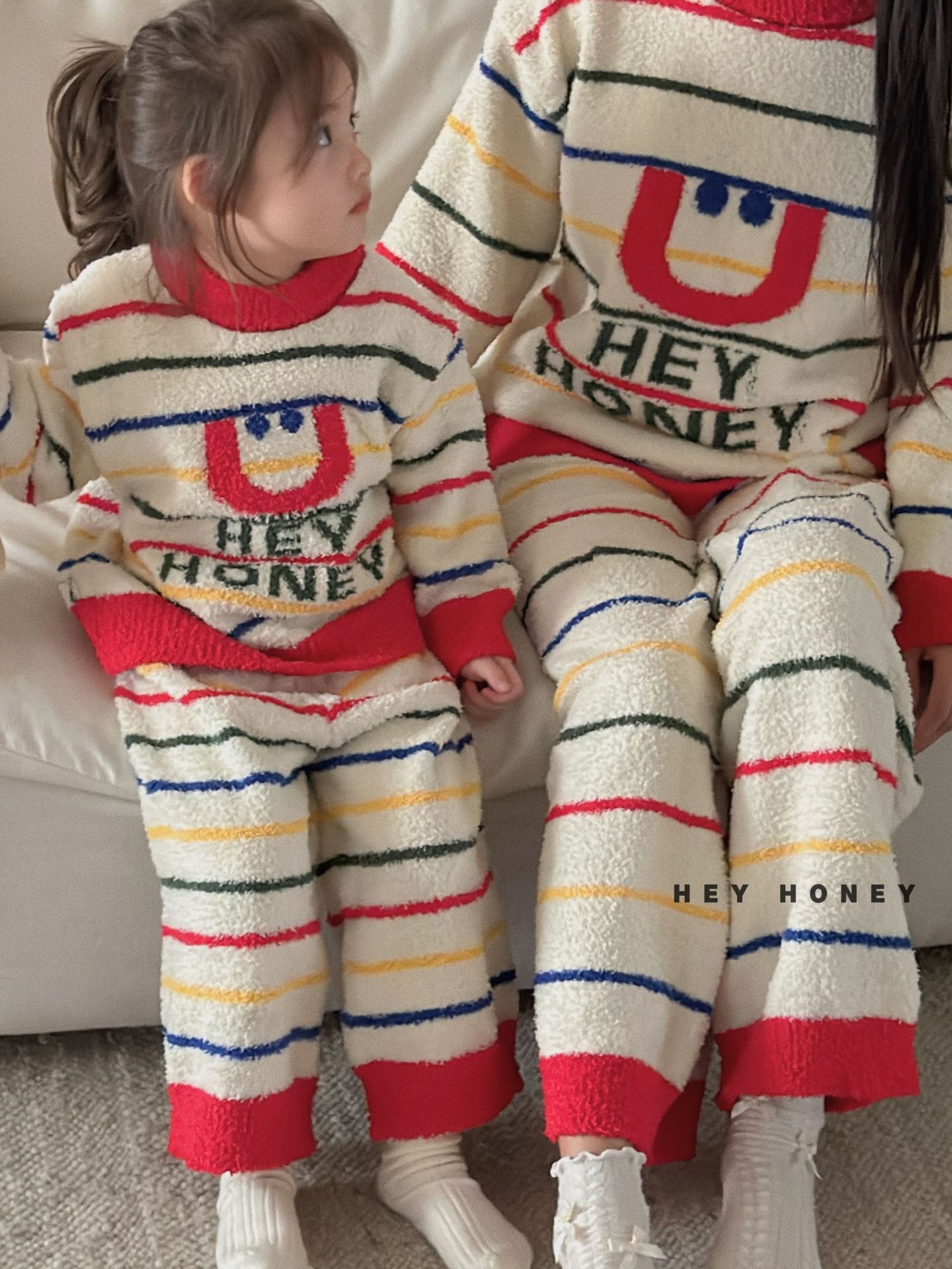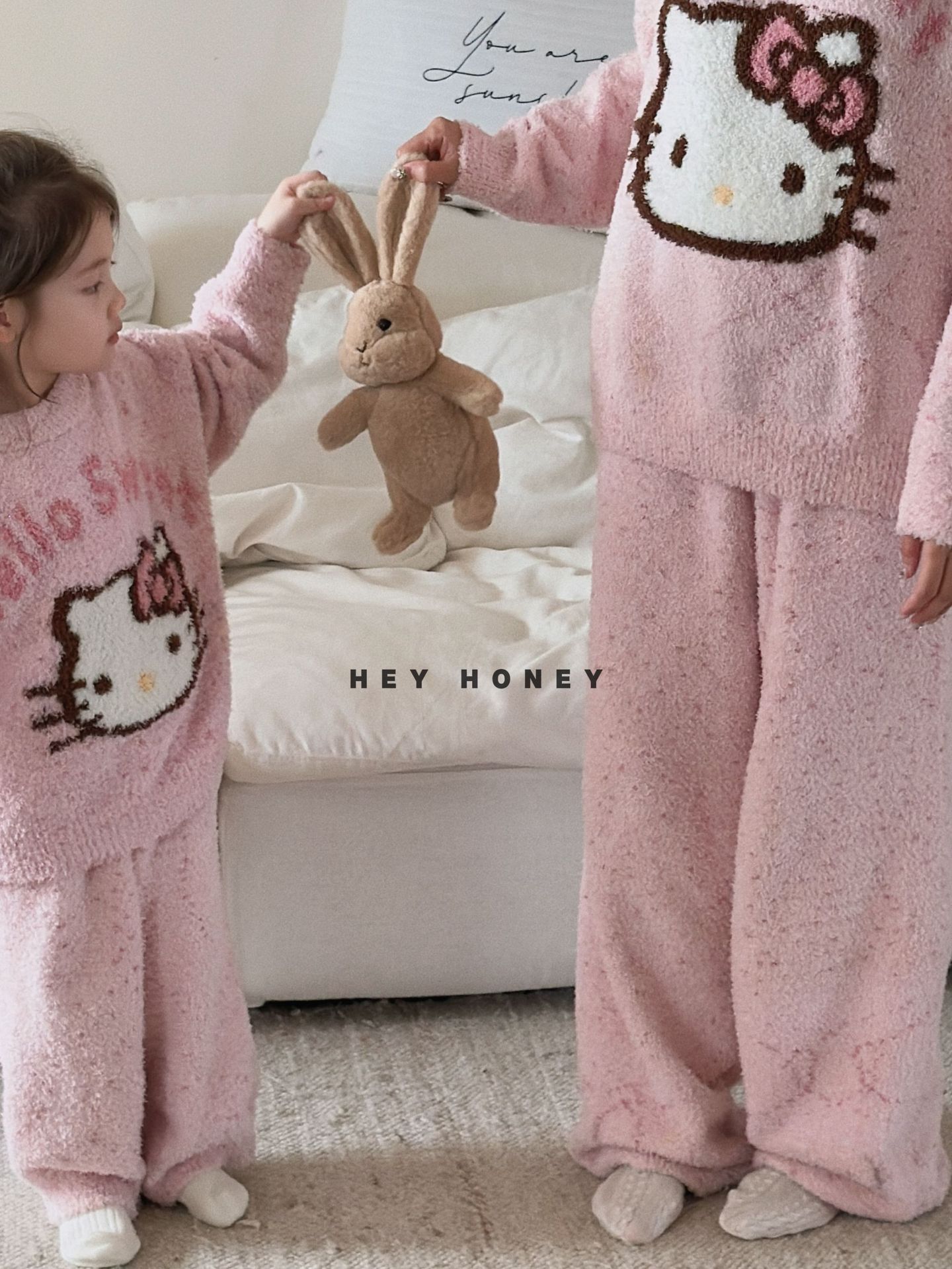 大小卷秋冬季新款半边绒可爱亲子装加厚保暖家居服套装