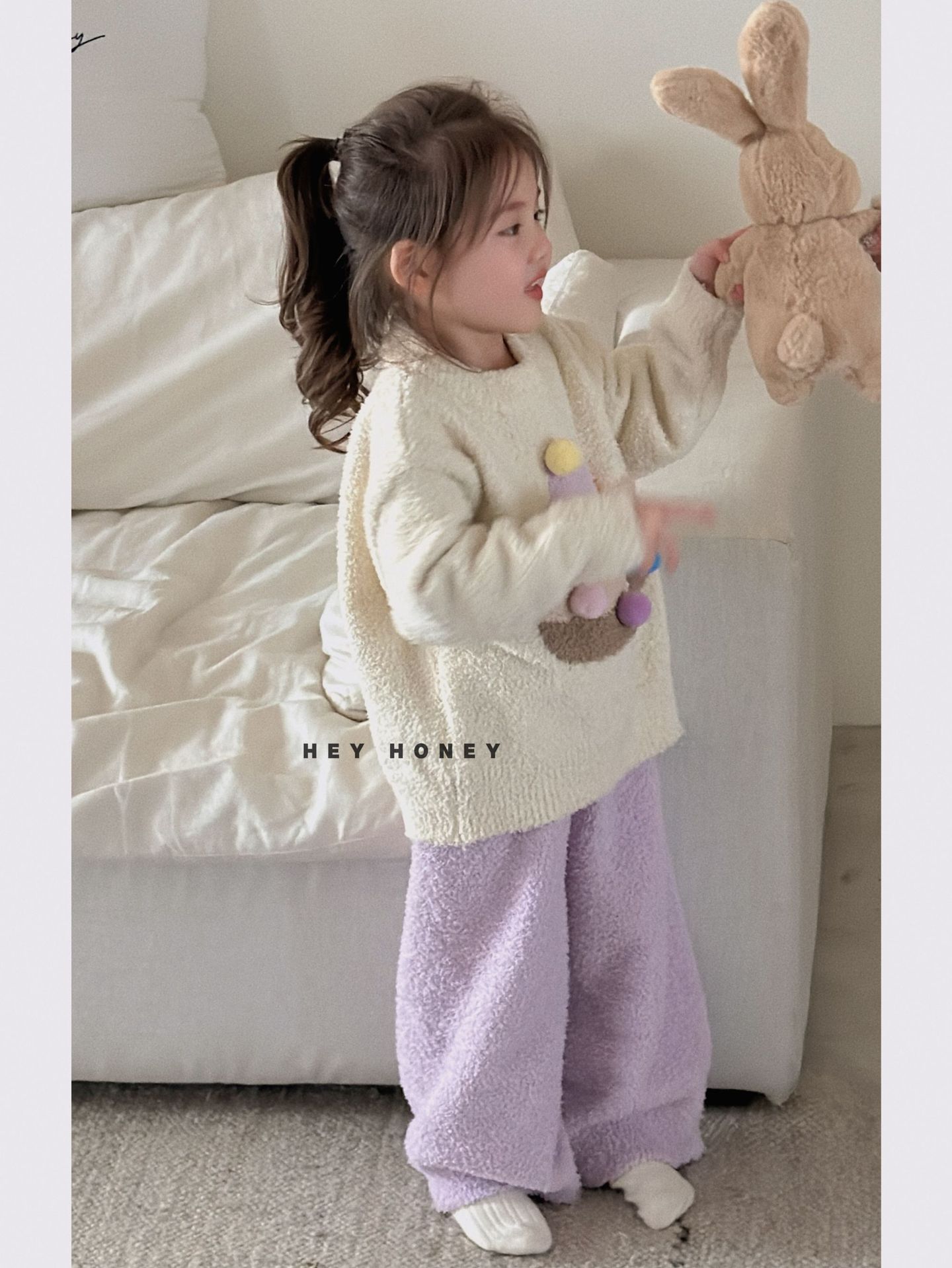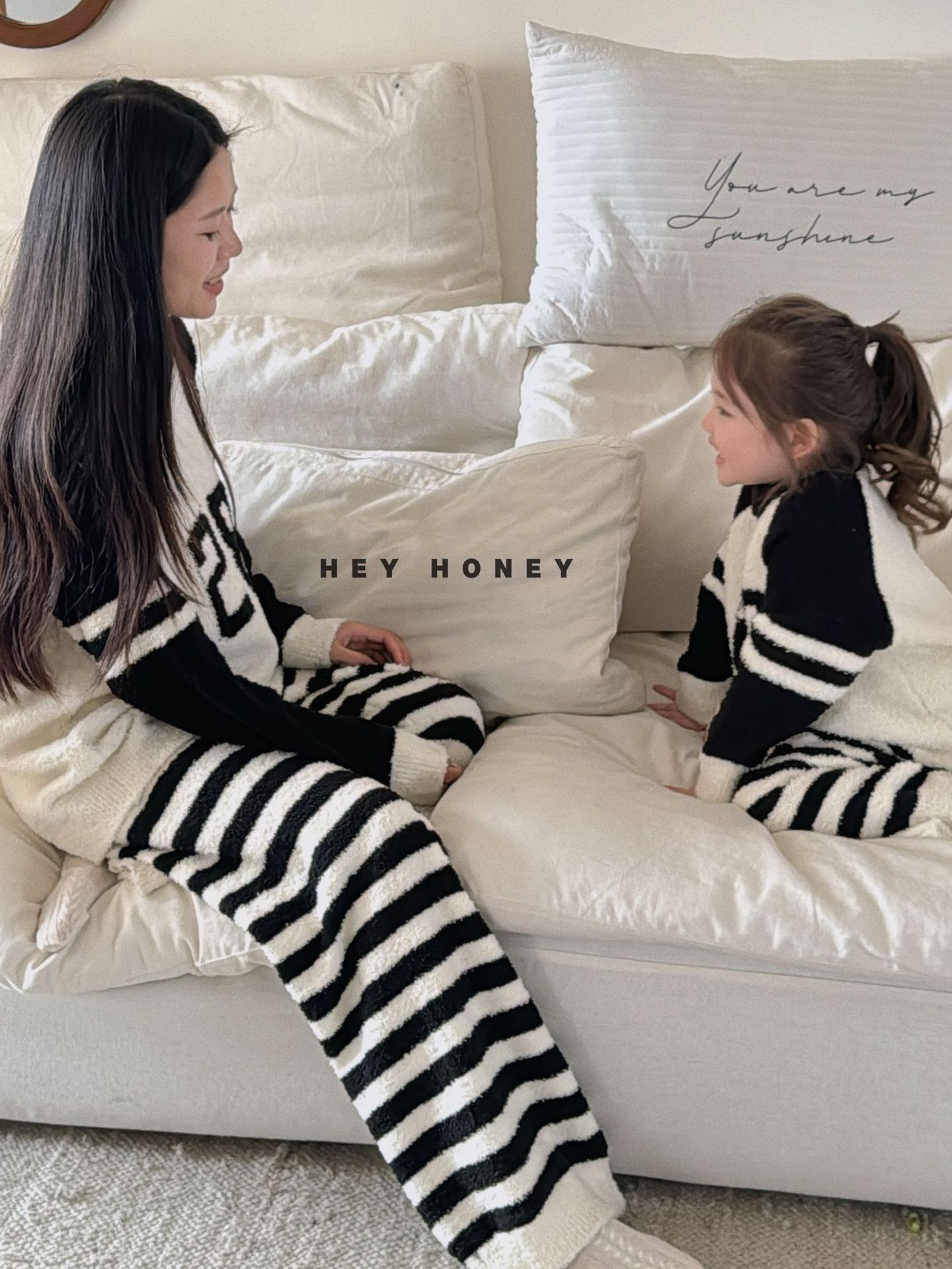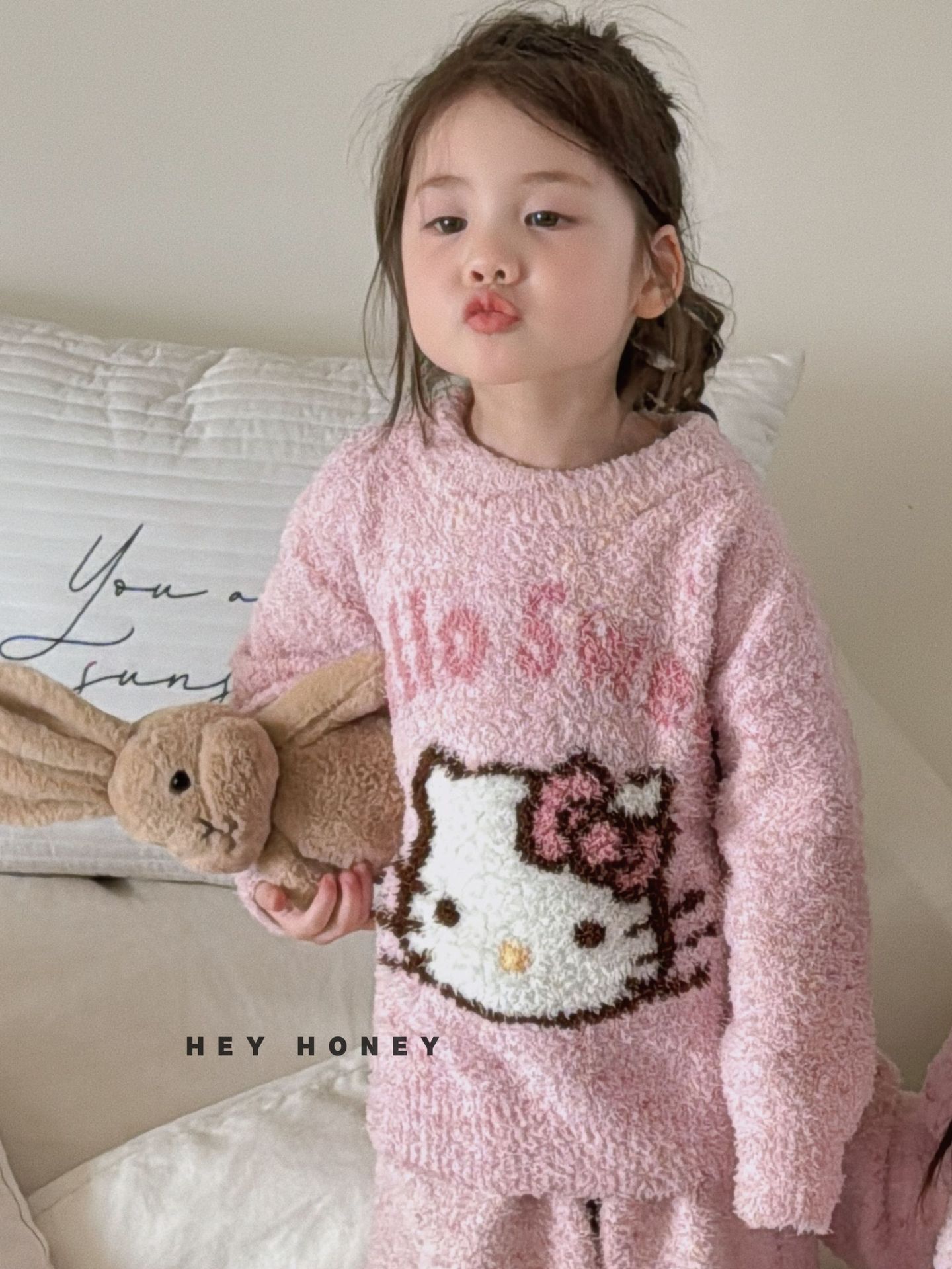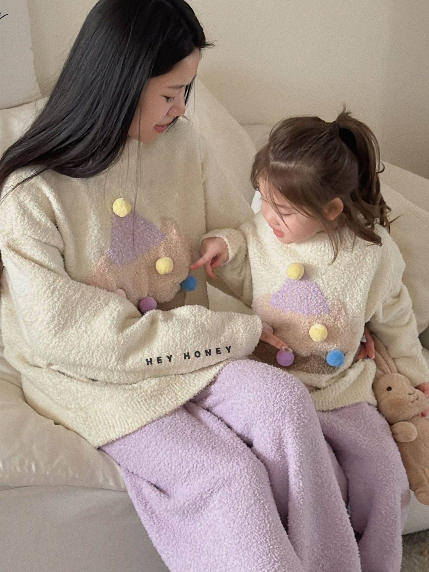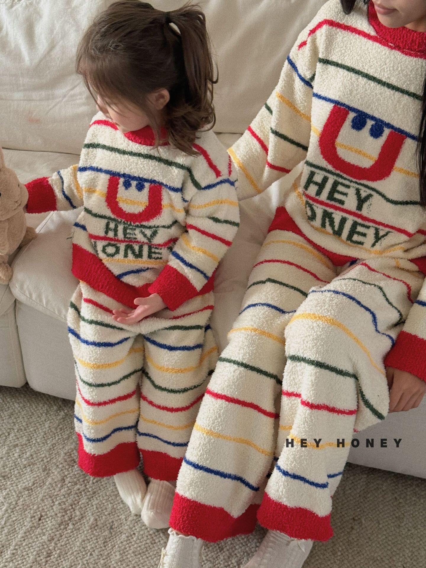 大小卷秋冬季新款半边绒可爱亲子装加厚保暖家居服套装