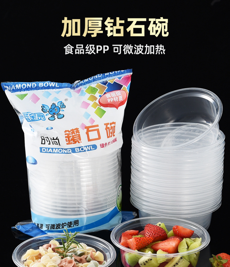 一次性家用食品级碗塑料碗家用打包碗冰粉碗塑料碗打包盒餐盒圆形