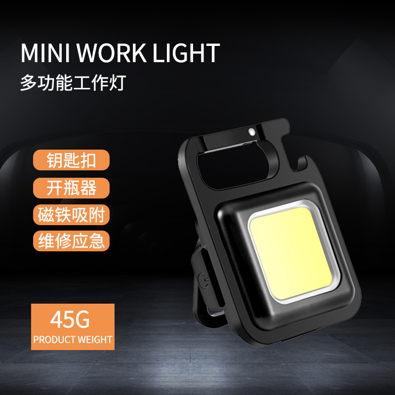 多功能户外露营新款迷你高亮防身钥匙扣工作灯usb充电汽修探照灯