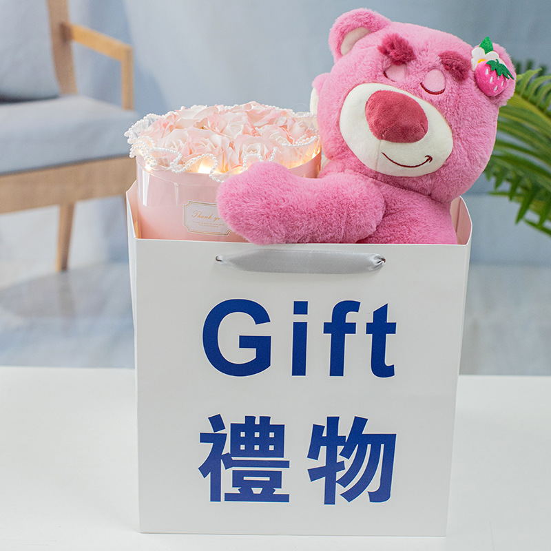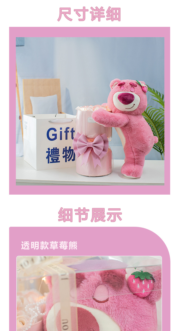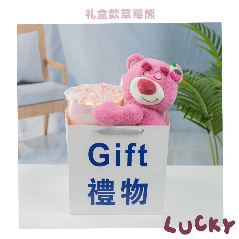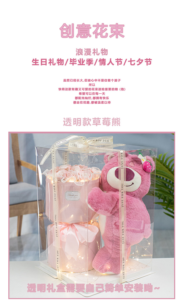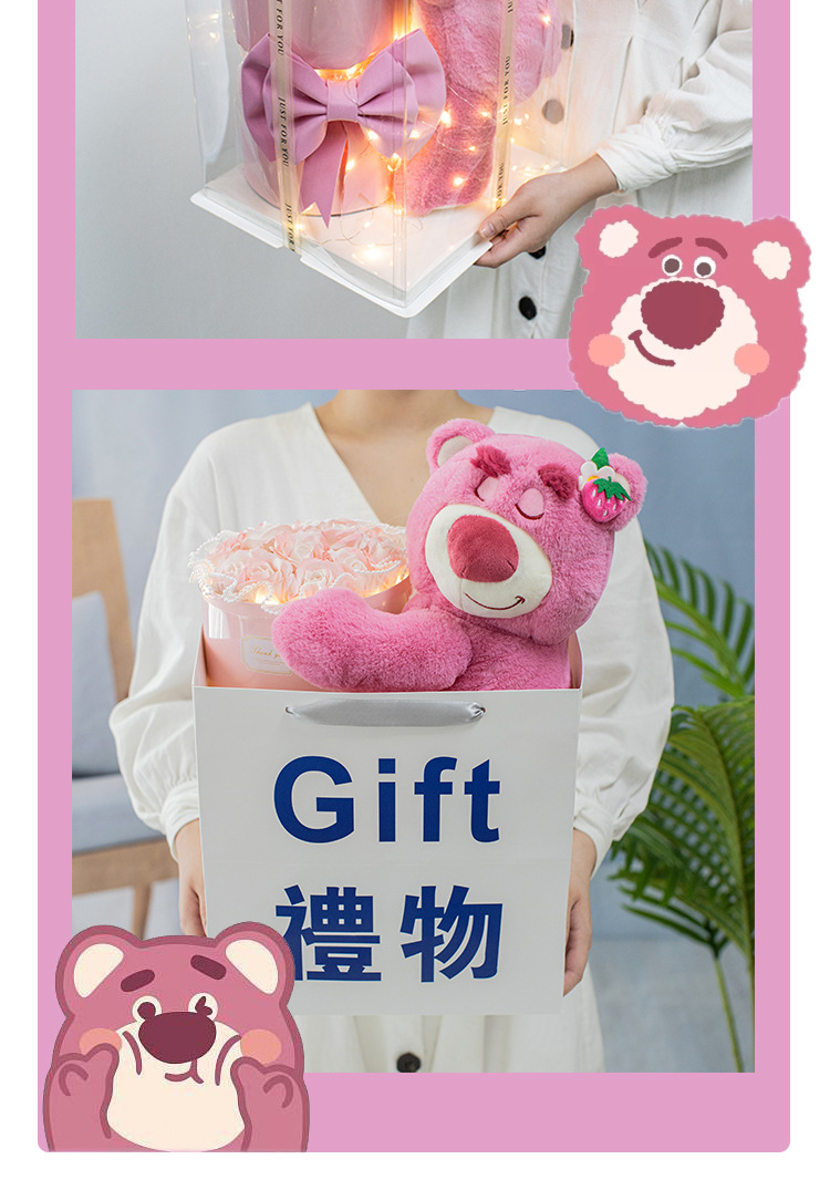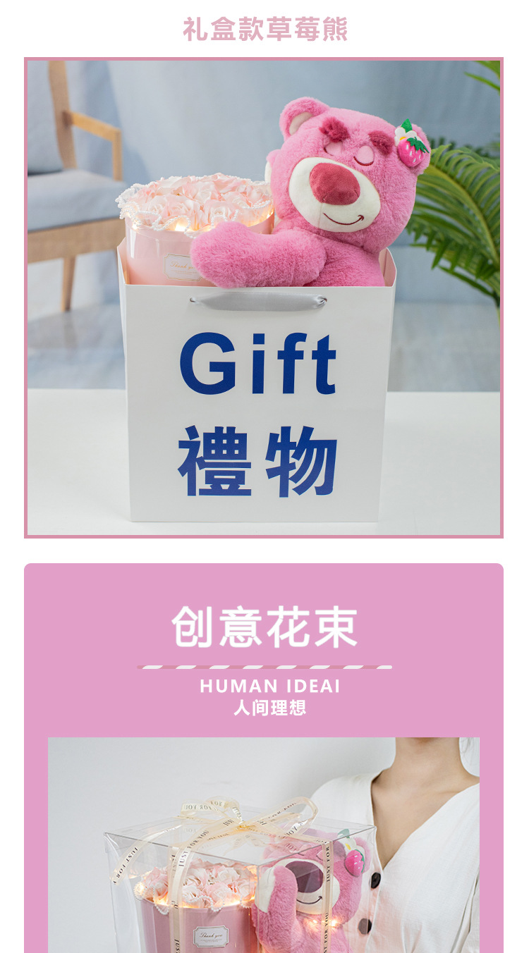 草莓熊玫瑰永生花花束生日礼物送女友女生朋友七夕情人节礼物代发