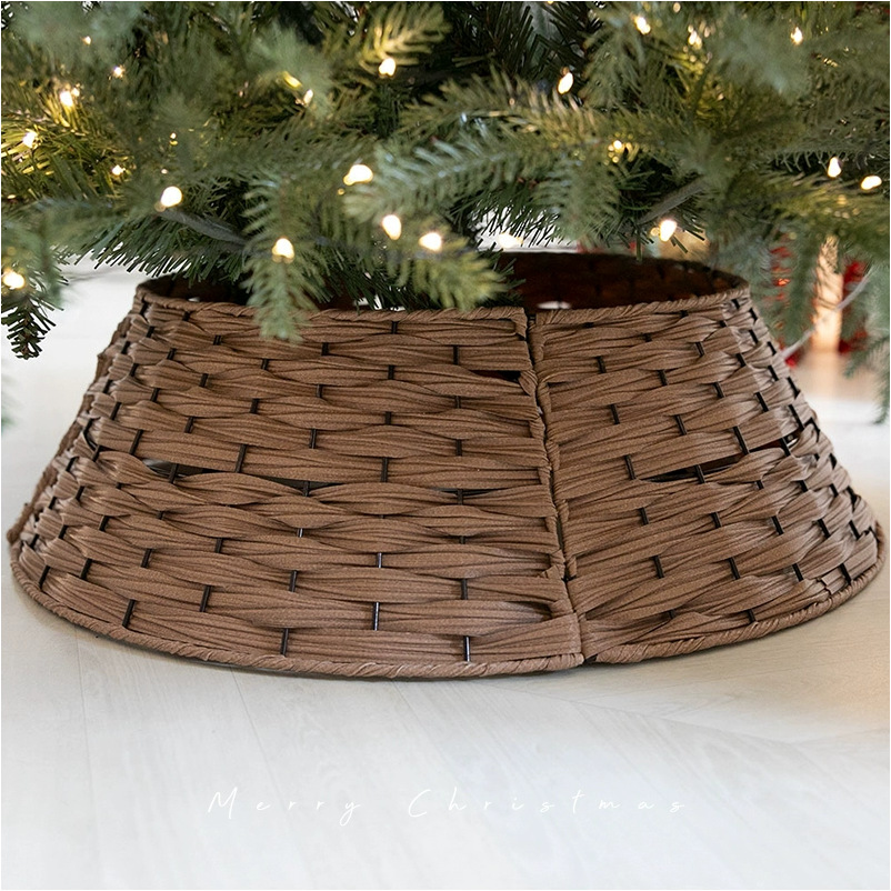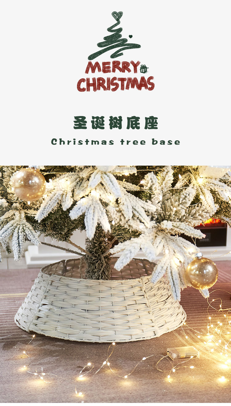 圣诞节树脚仿竹编树篮子树裙圆框围栏ins北欧复古圣诞树装饰底座