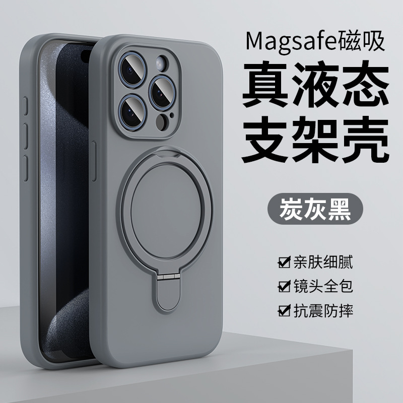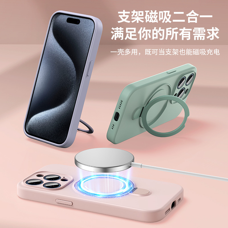 液态硅胶磁吸支架手机壳适用苹果iPhone16promax摄像头全包保护套