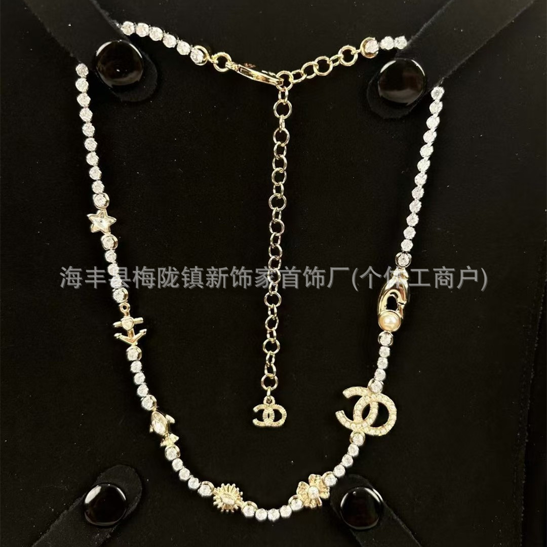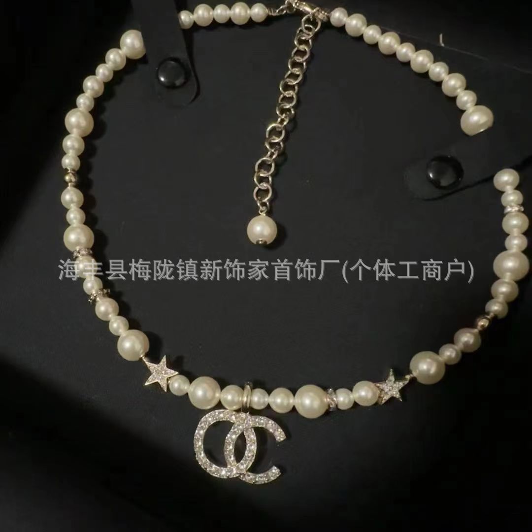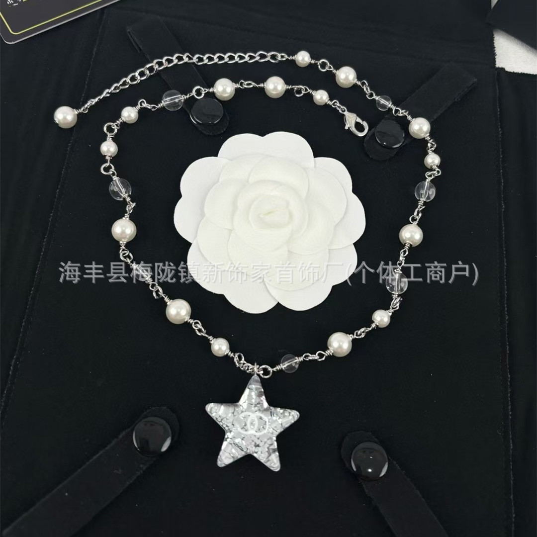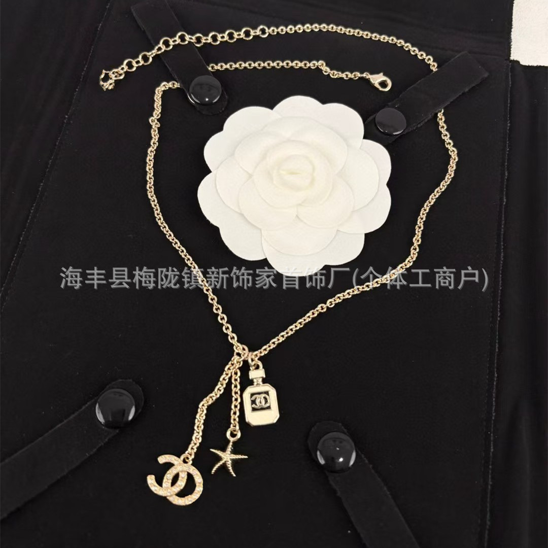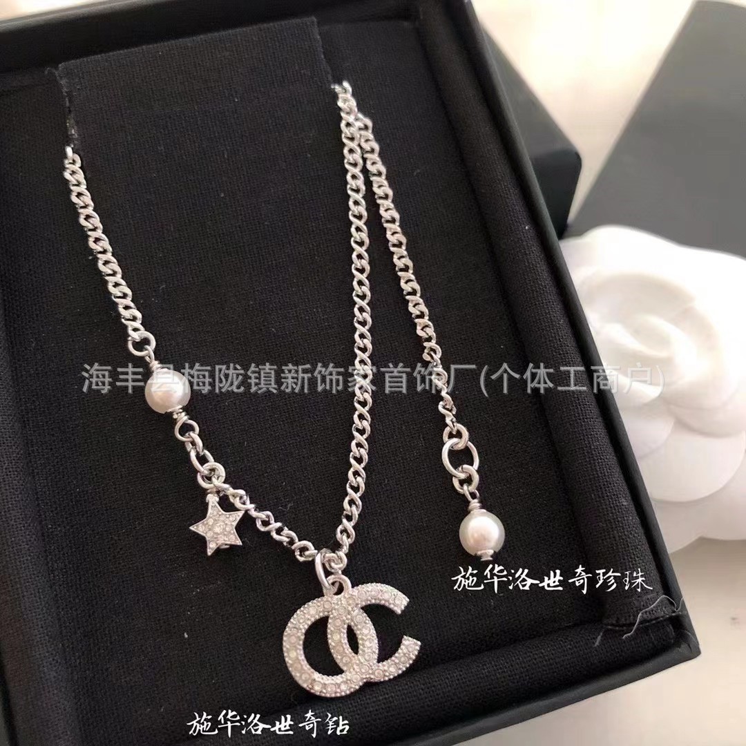 高版本小香双c字母项链女星星锁骨链包包珍珠水钻黑桃爱心毛衣链