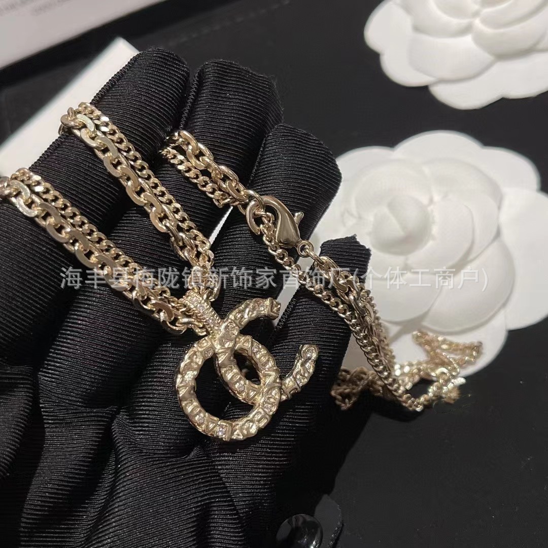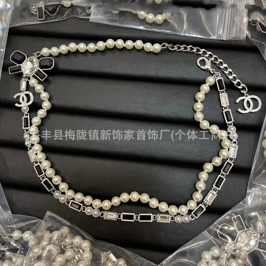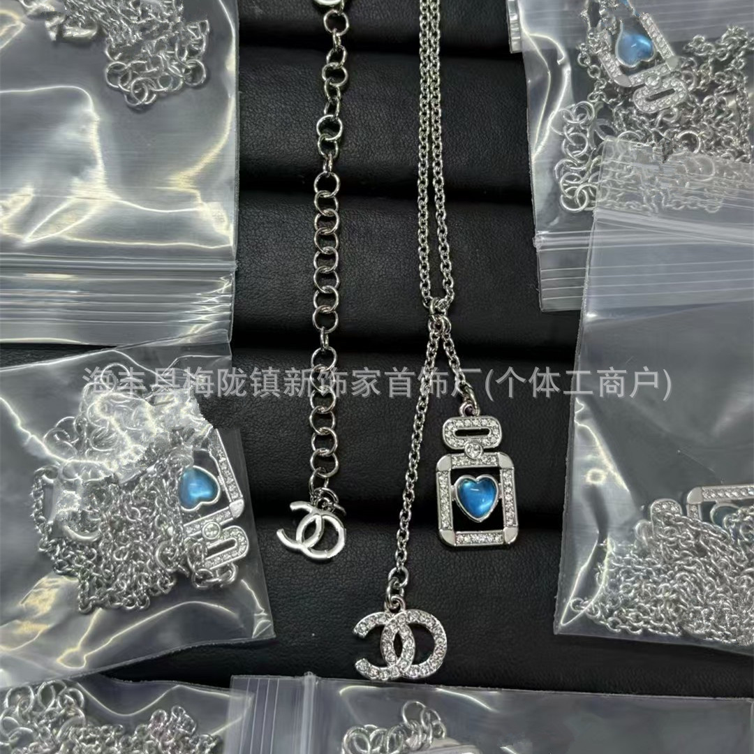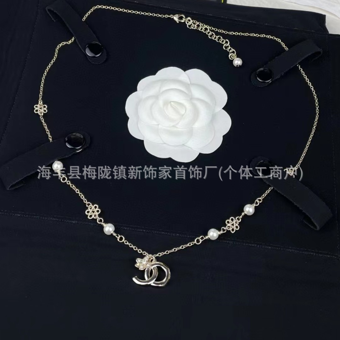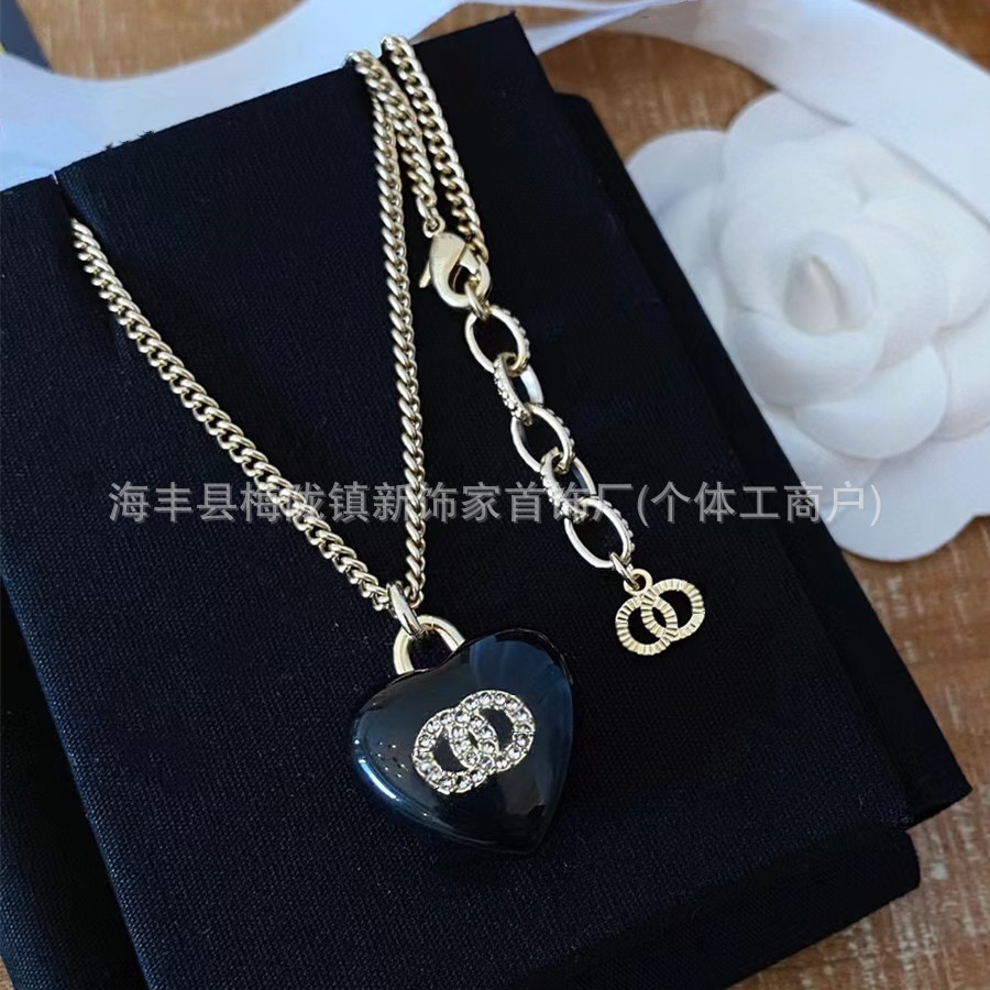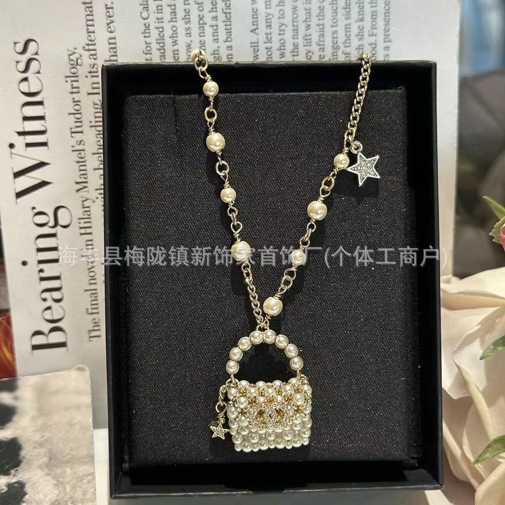 高版本小香双c字母项链女星星锁骨链包包珍珠水钻黑桃爱心毛衣链