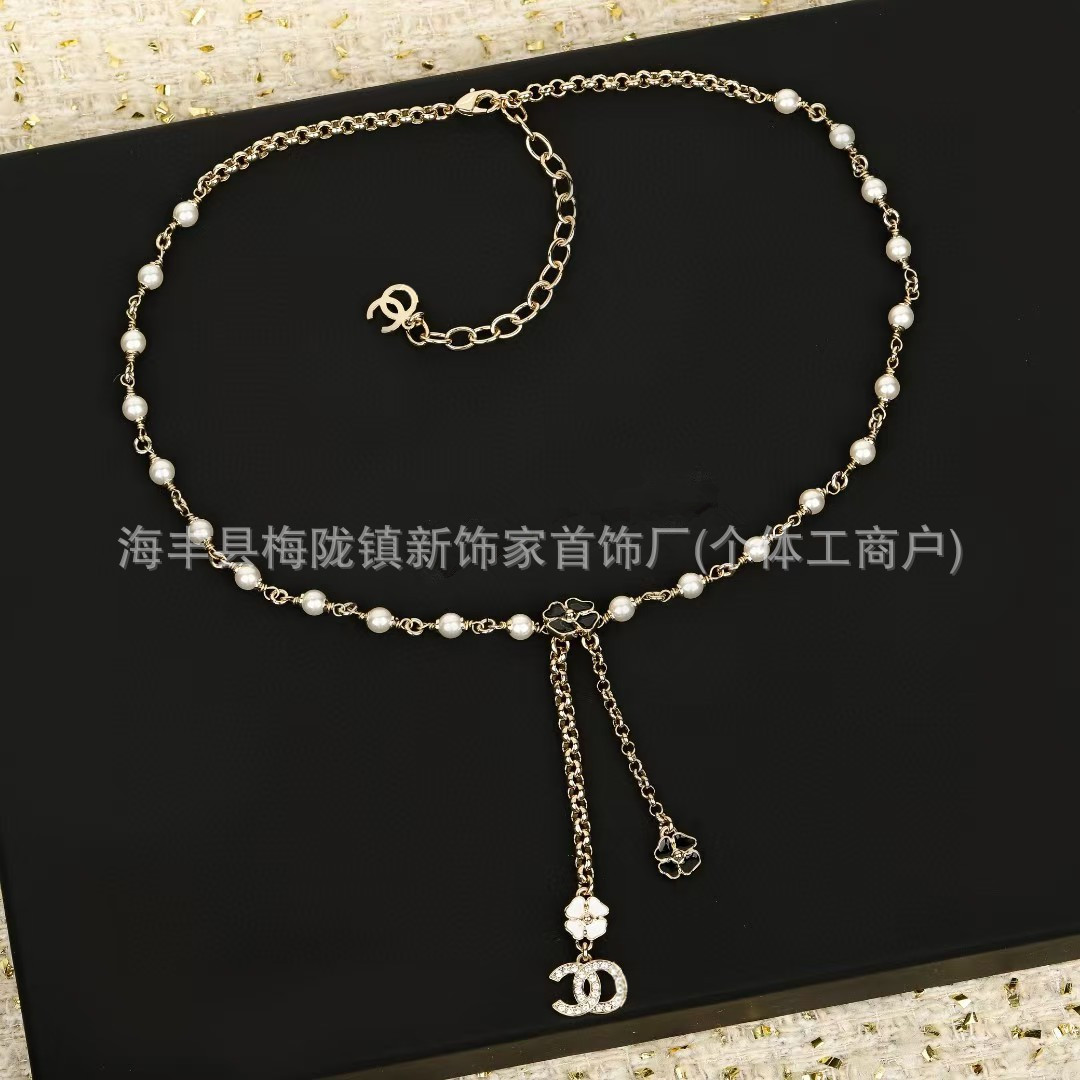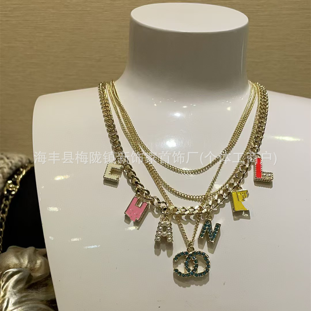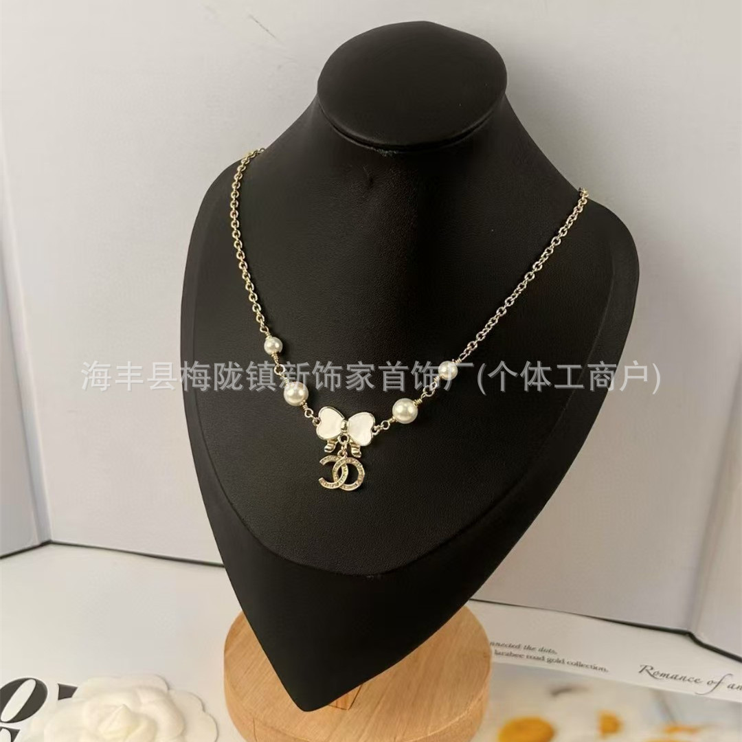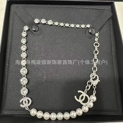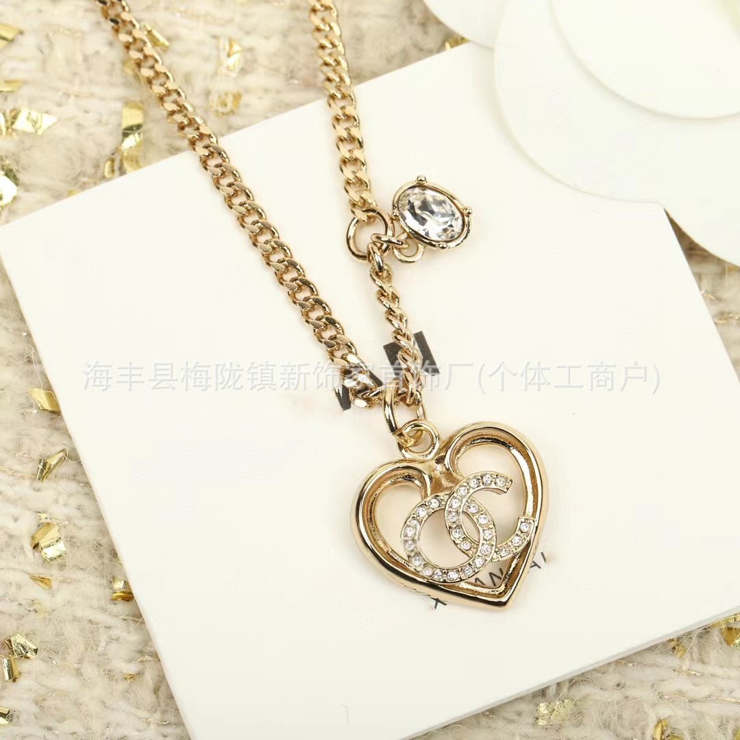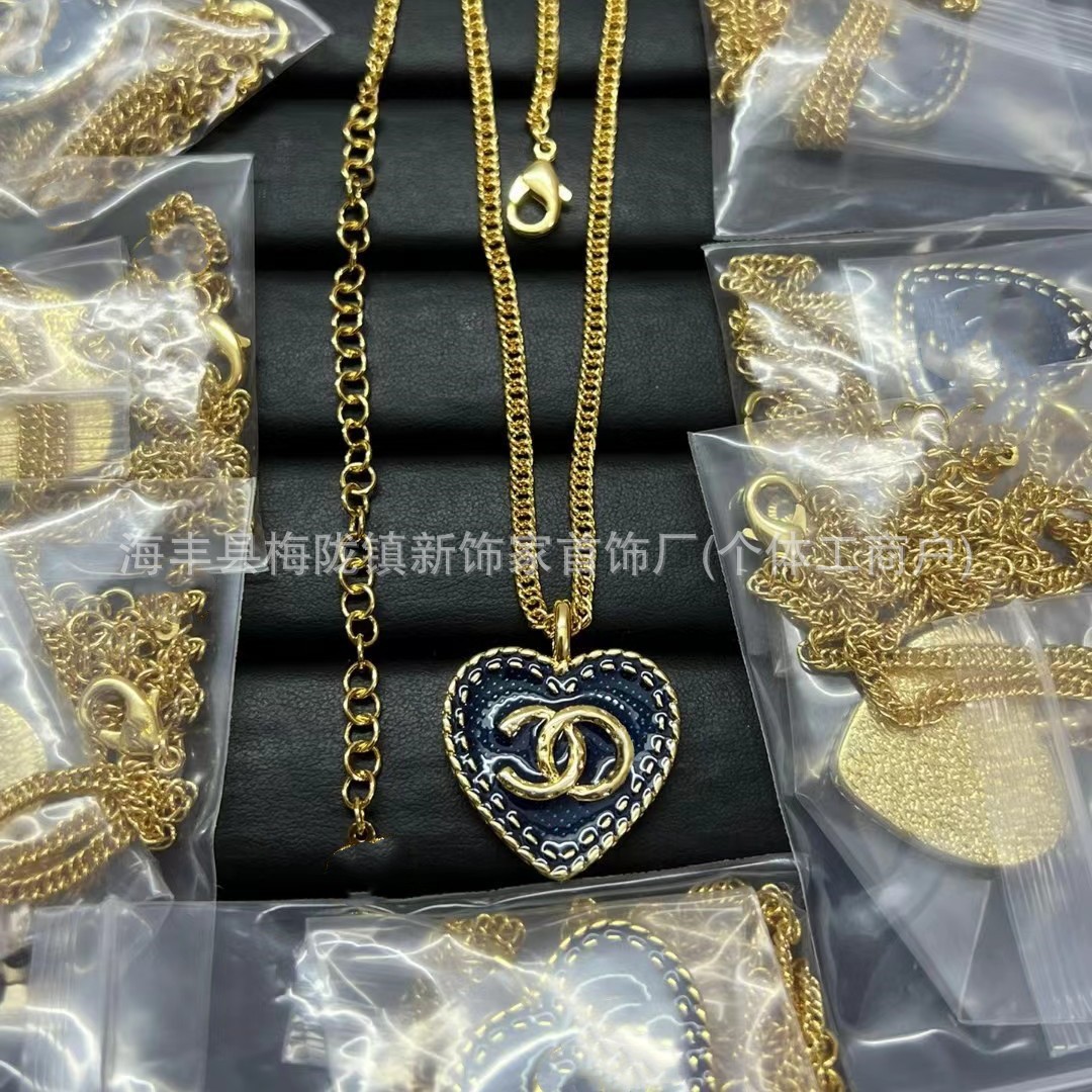 高版本小香双c字母项链女星星锁骨链包包珍珠水钻黑桃爱心毛衣链