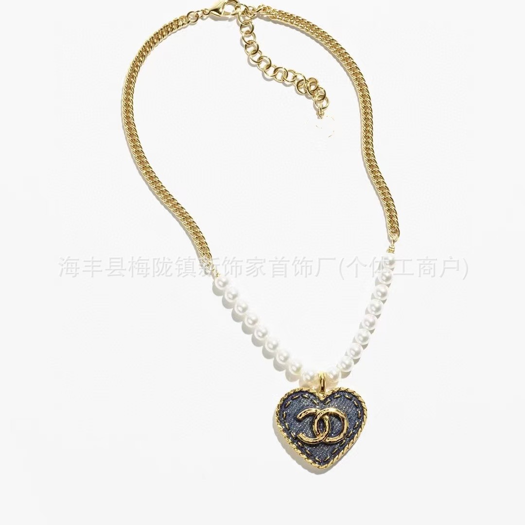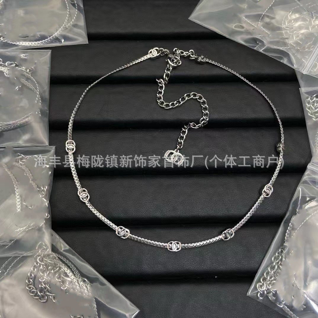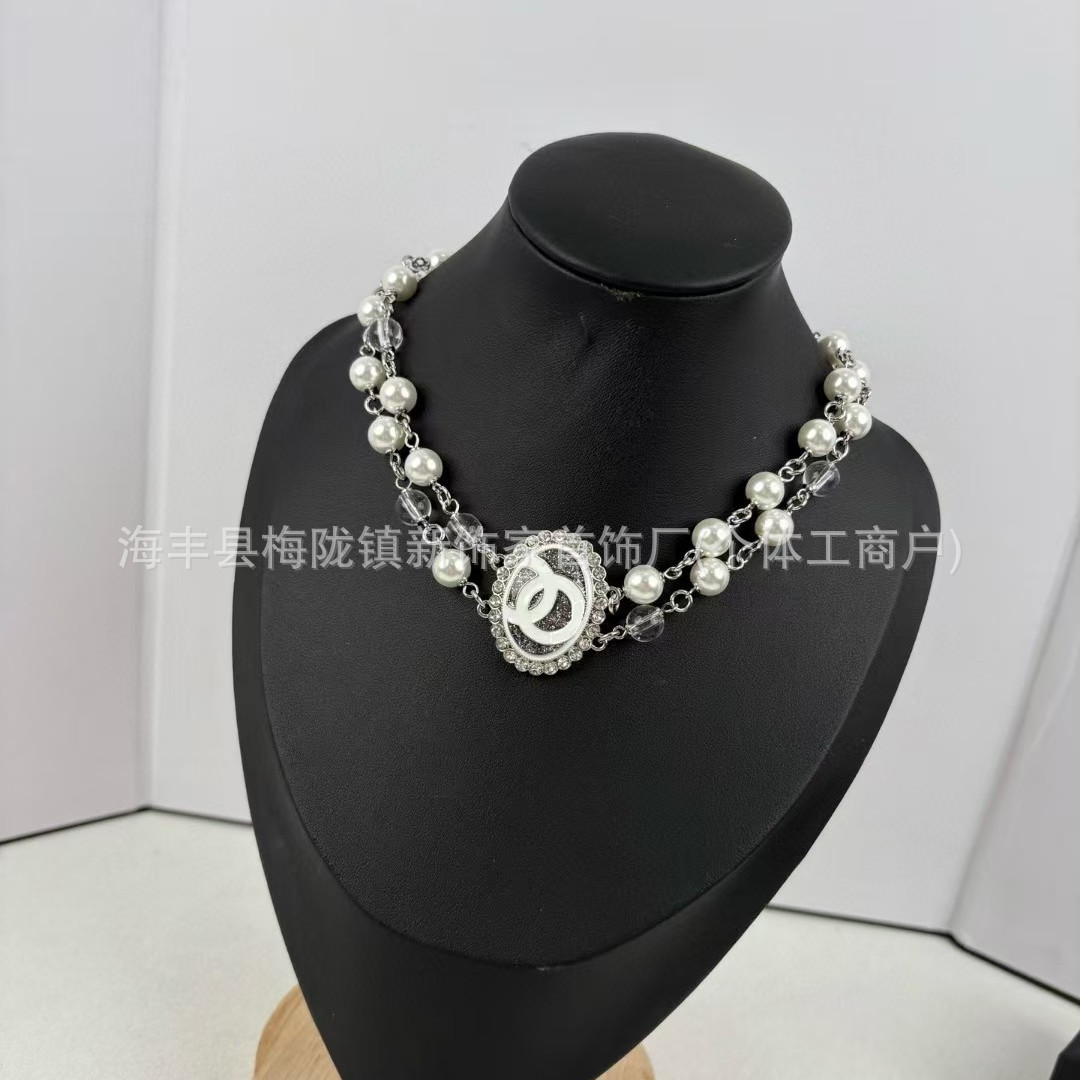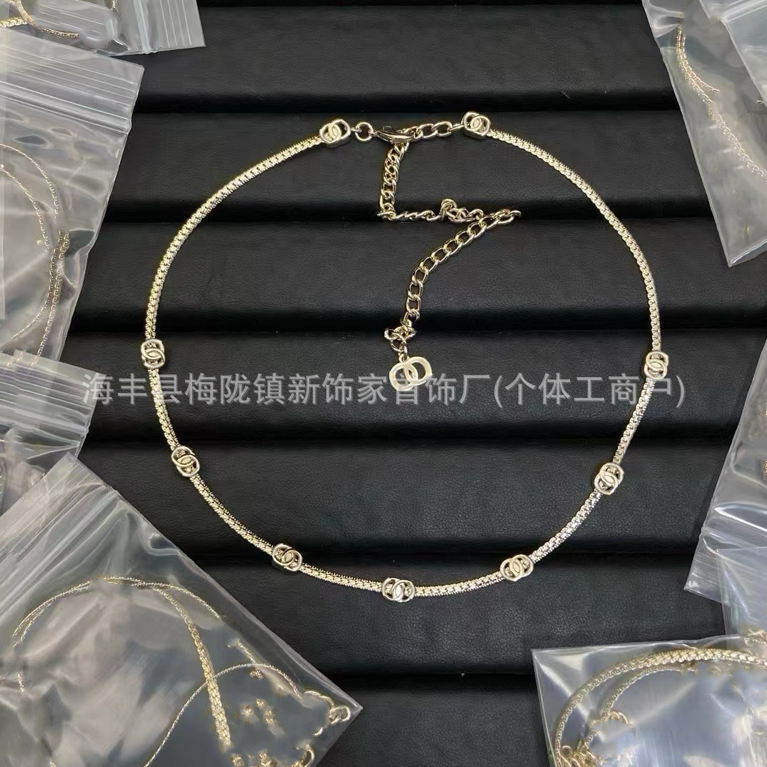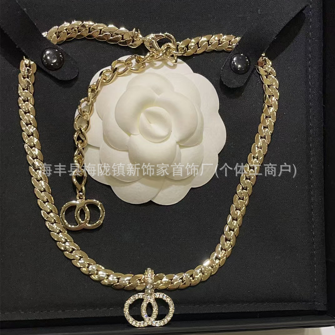 高版本小香双c字母项链女星星锁骨链包包珍珠水钻黑桃爱心毛衣链