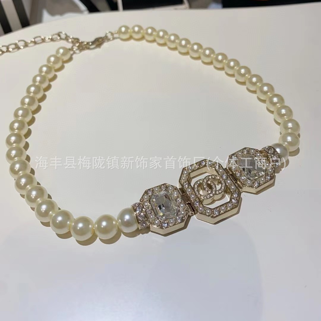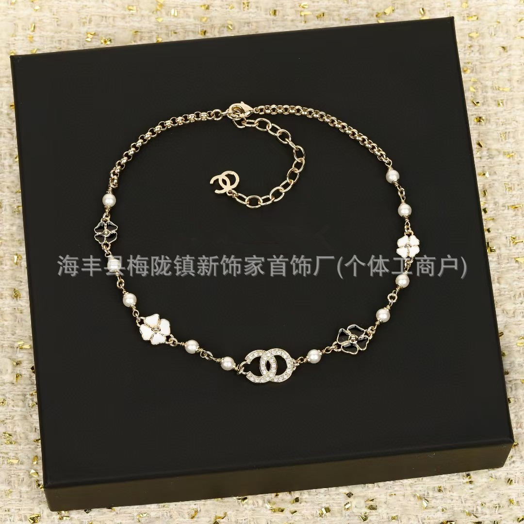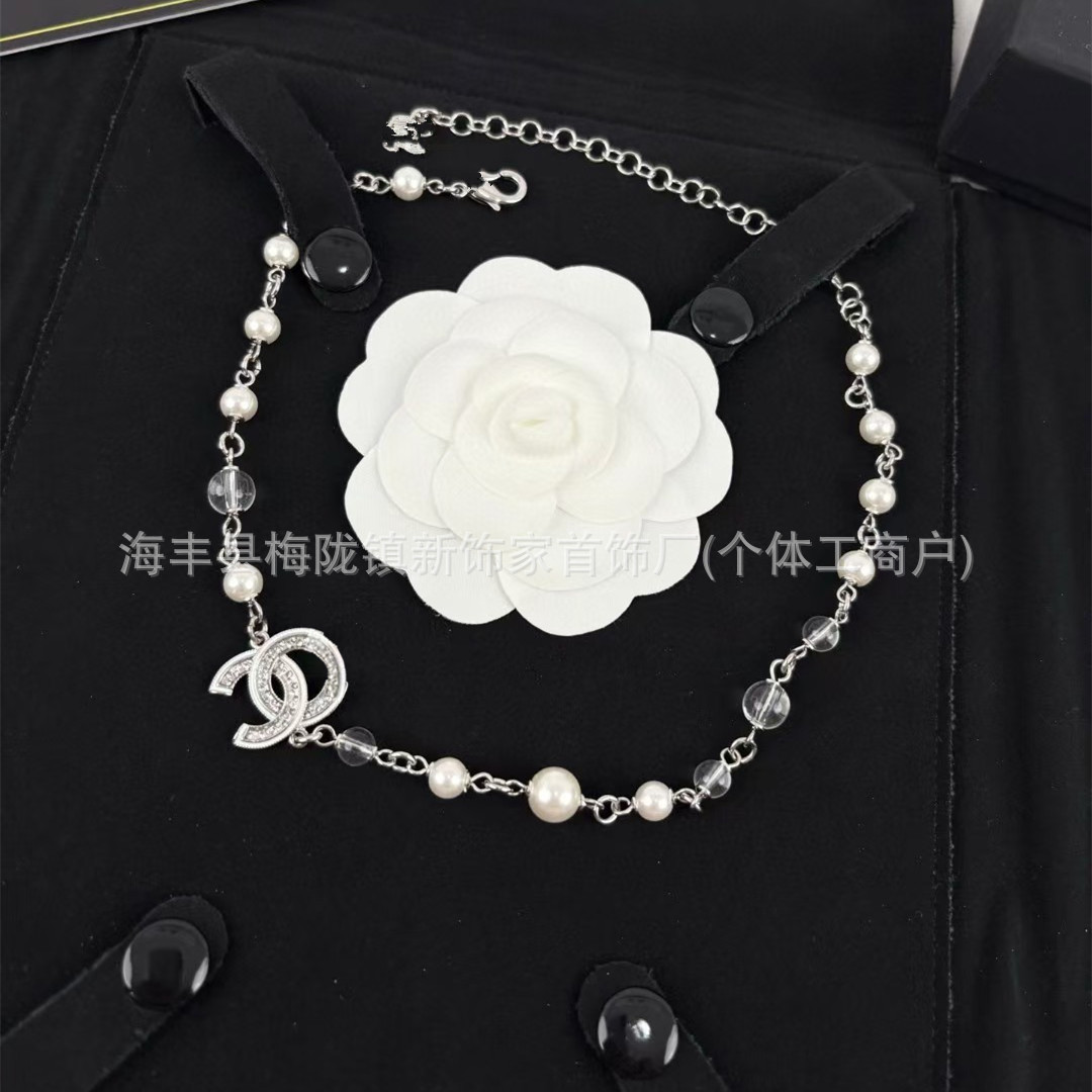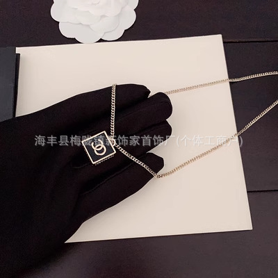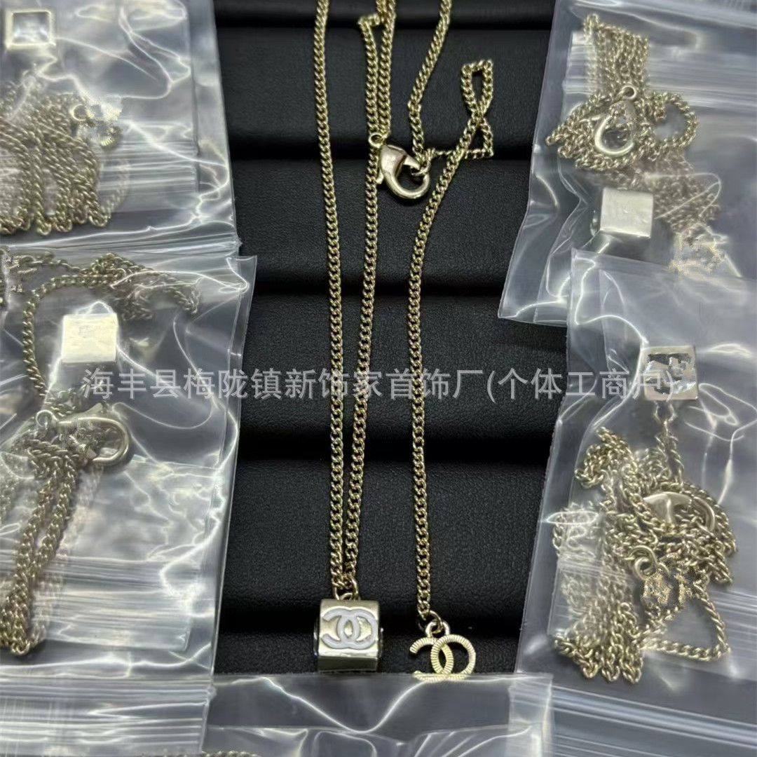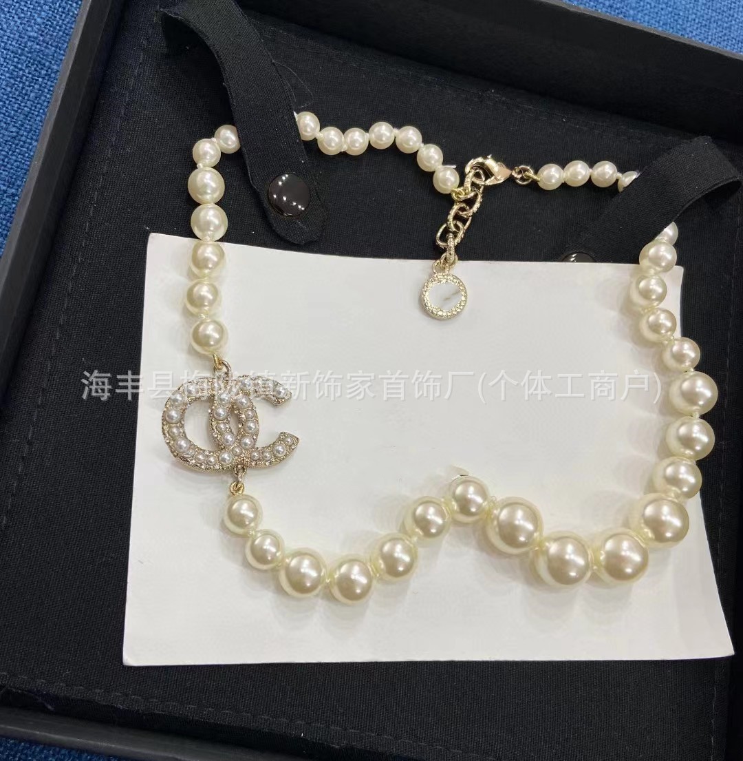 高版本小香双c字母项链女星星锁骨链包包珍珠水钻黑桃爱心毛衣链