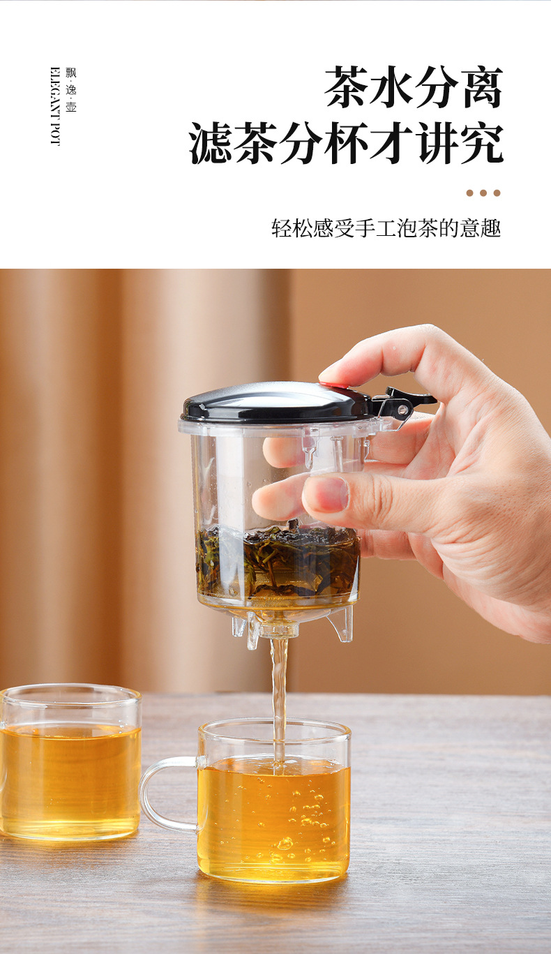 飘逸杯泡茶壶过滤冲茶器家用茶壶茶水一键分离茶具滤茶玻璃泡茶杯