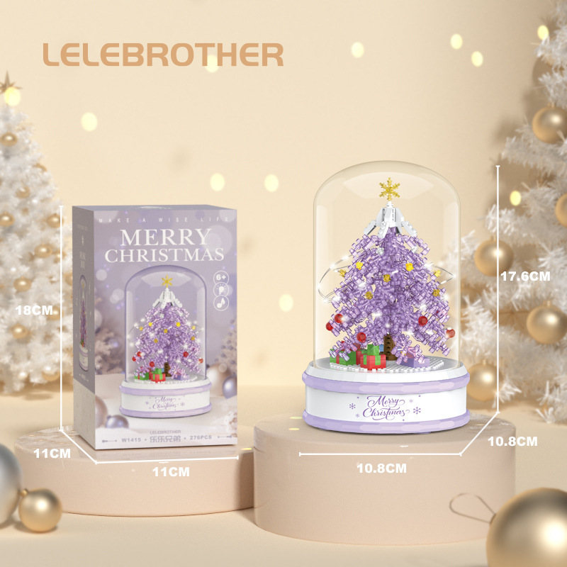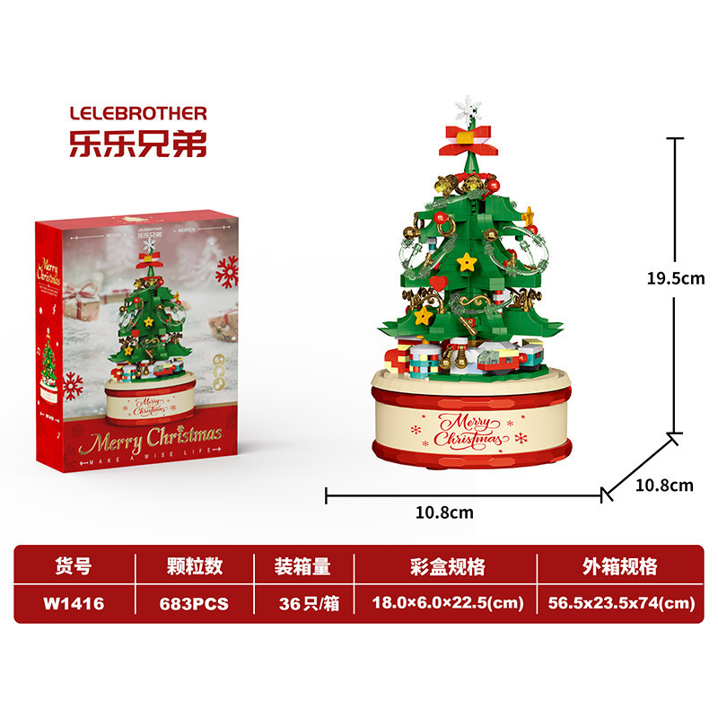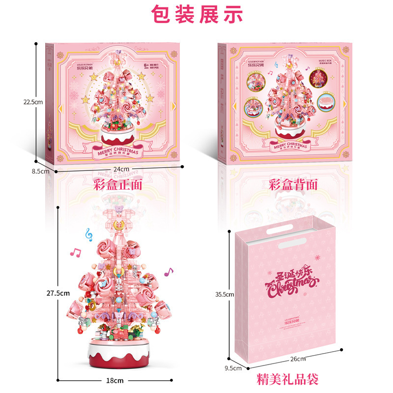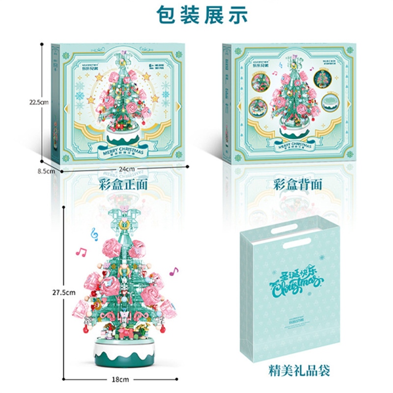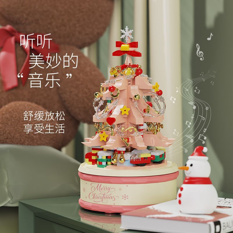兼容乐高积木圣诞树灯光旋转音乐盒微小颗粒积木玩具圣诞节日礼品