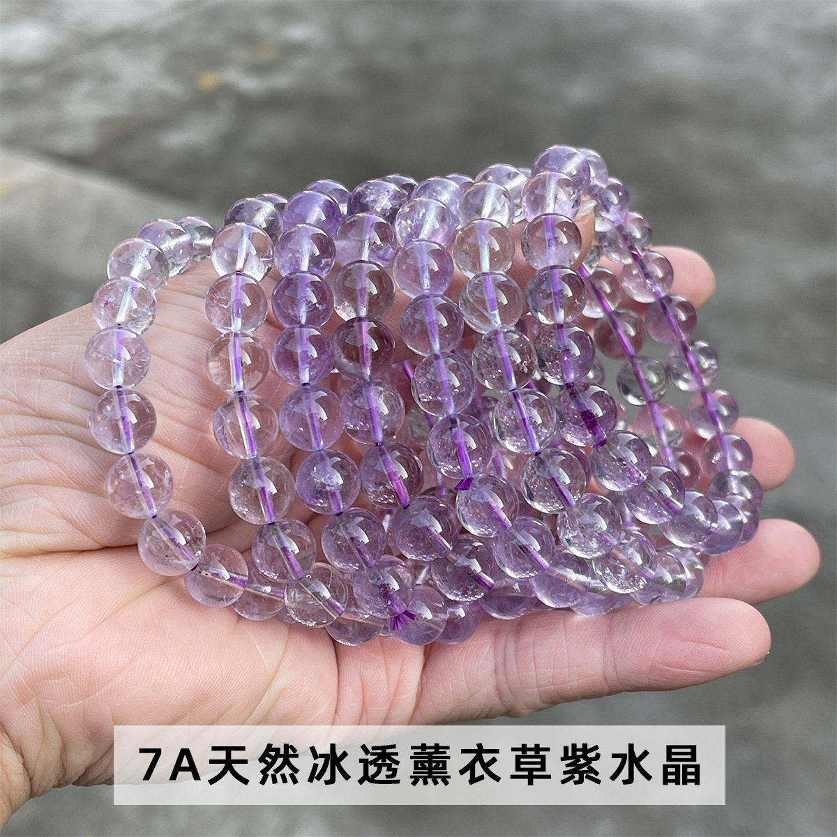 晶德珠宝5A天然冰透薰衣草紫水晶手串女百搭水晶圆珠手链饰品批发