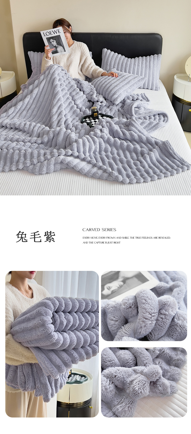 轻奢兔毛绒毛毯沙发毯休闲毯子秋冬卧室加厚保暖盖毯空调毯午睡