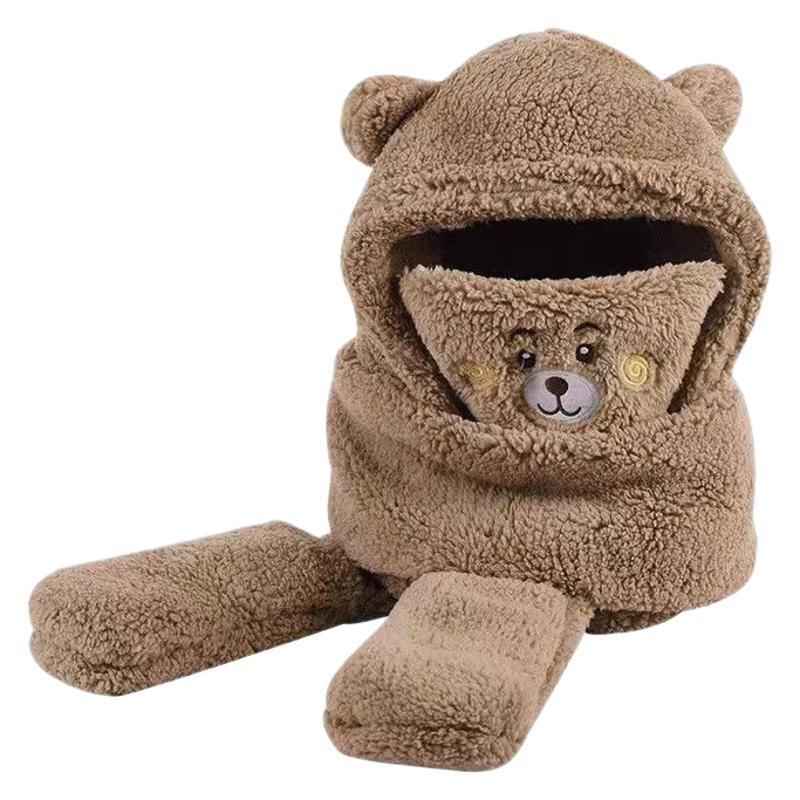 【保暖五合一】冬季成人连体帽加绒加厚可爱小熊一体口罩帽保暖帽