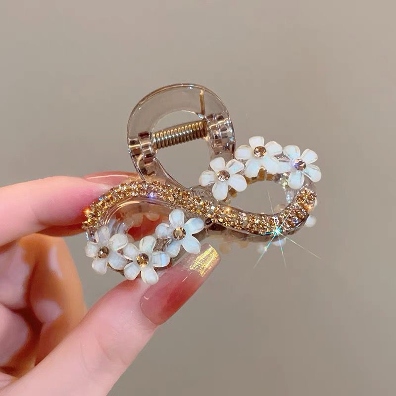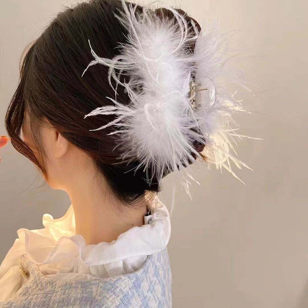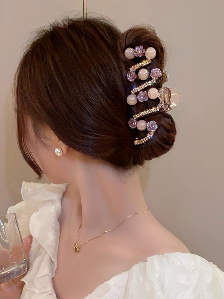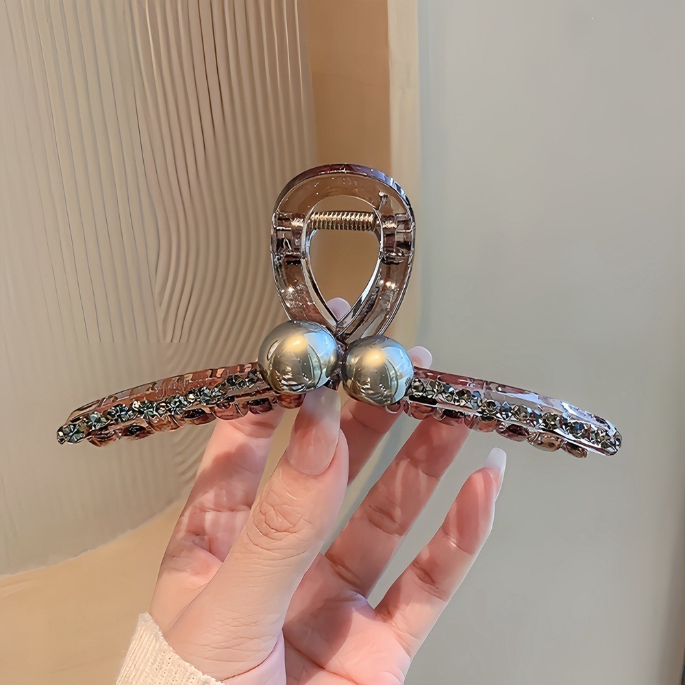 新款珍珠水貂毛抓夹字母水钻后脑勺发夹时尚百搭网红毛绒鲨鱼夹