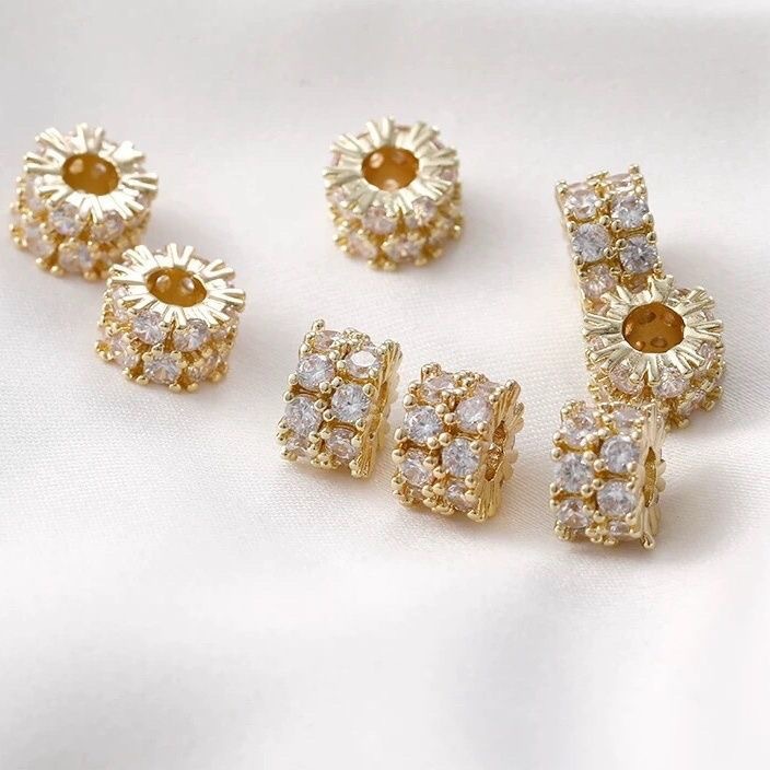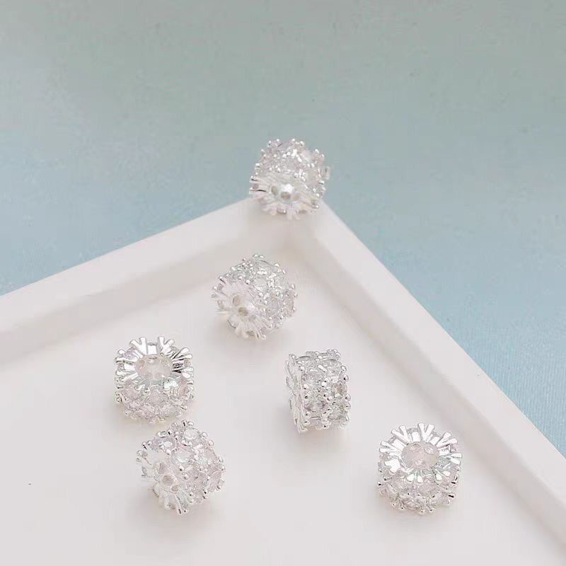 高保色镶嵌双排锆石大孔桶珠散珠钻圈手链隔珠配件手工diy饰品