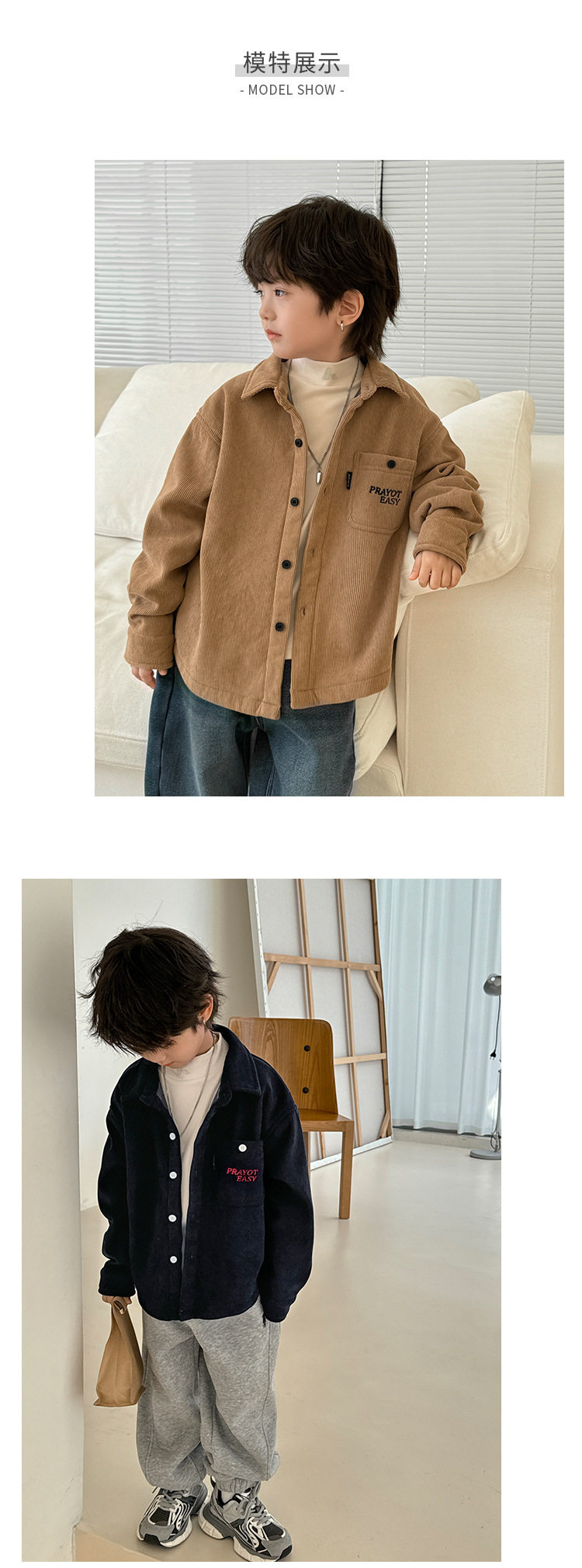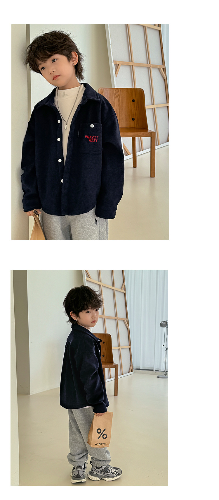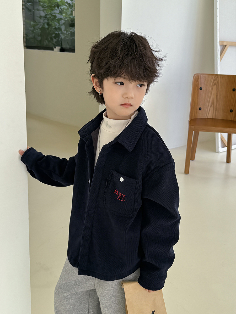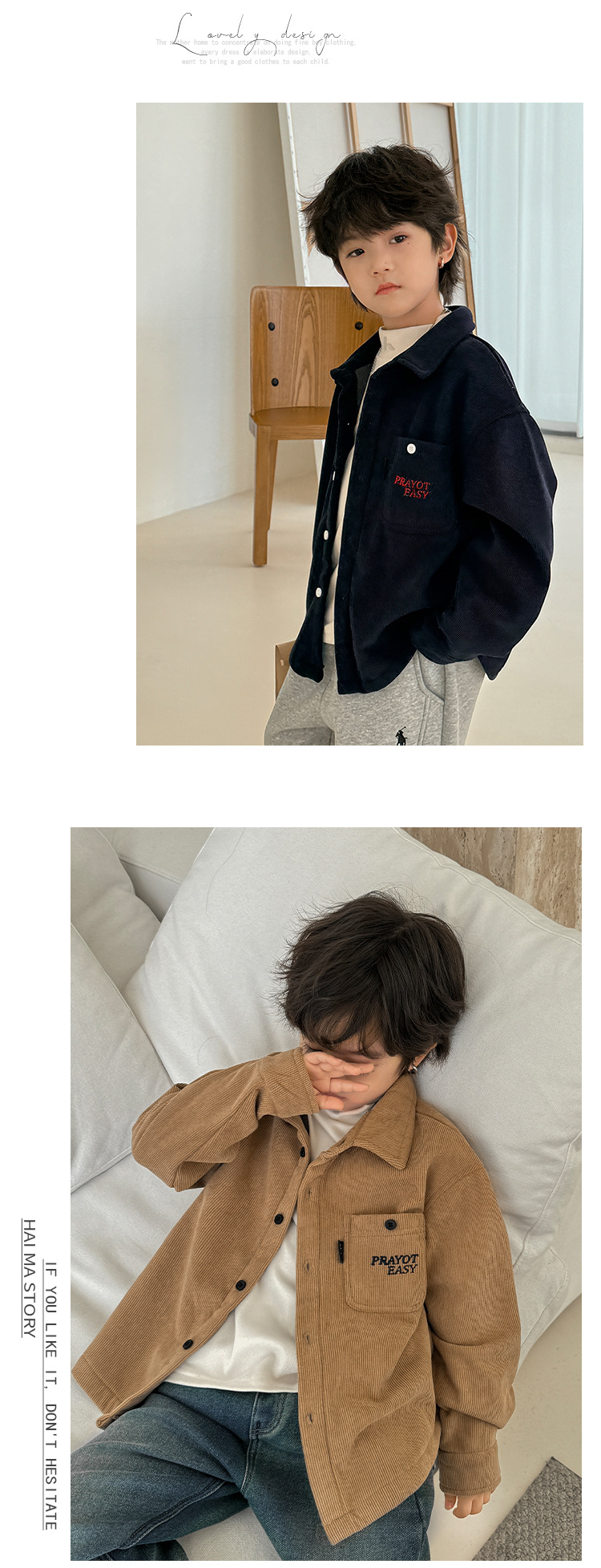 2024海妈家秋冬新款儿童男童韩版灯芯绒加绒加厚衬衫儿童冬装外穿