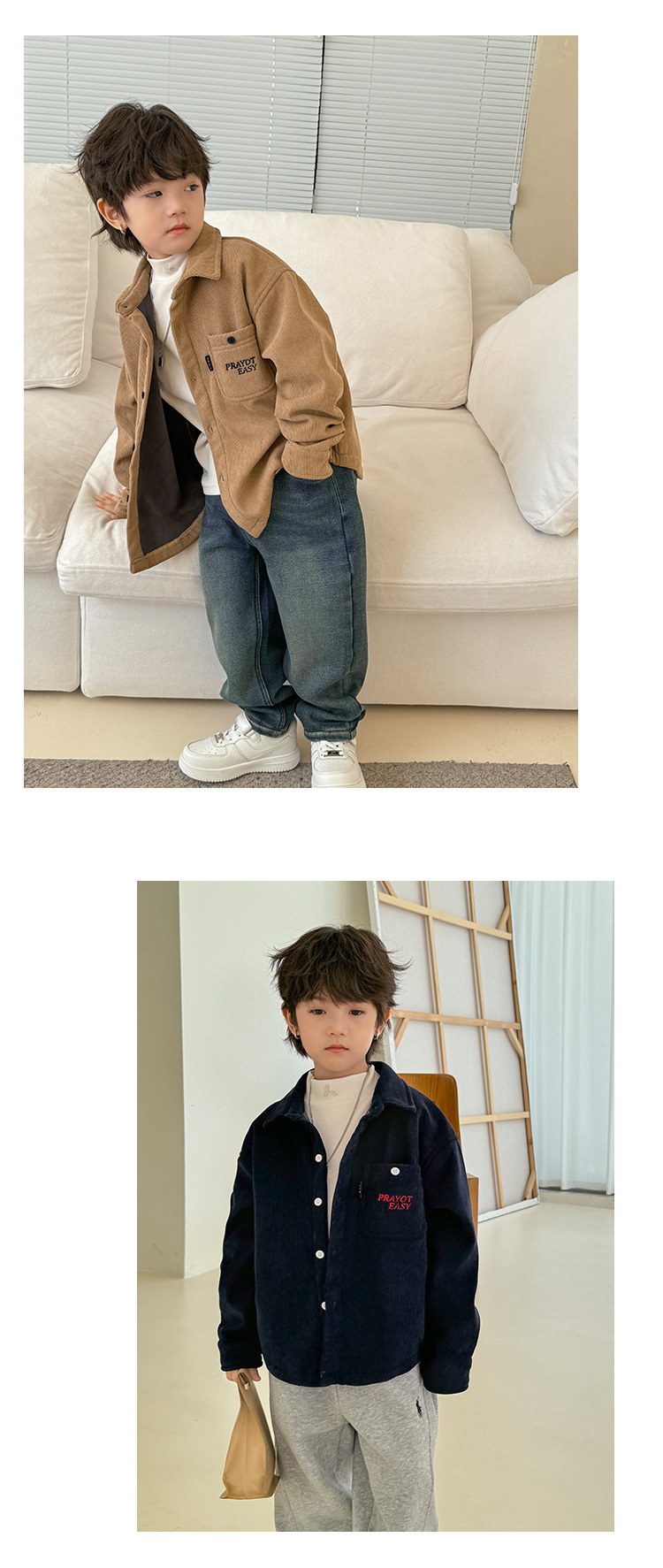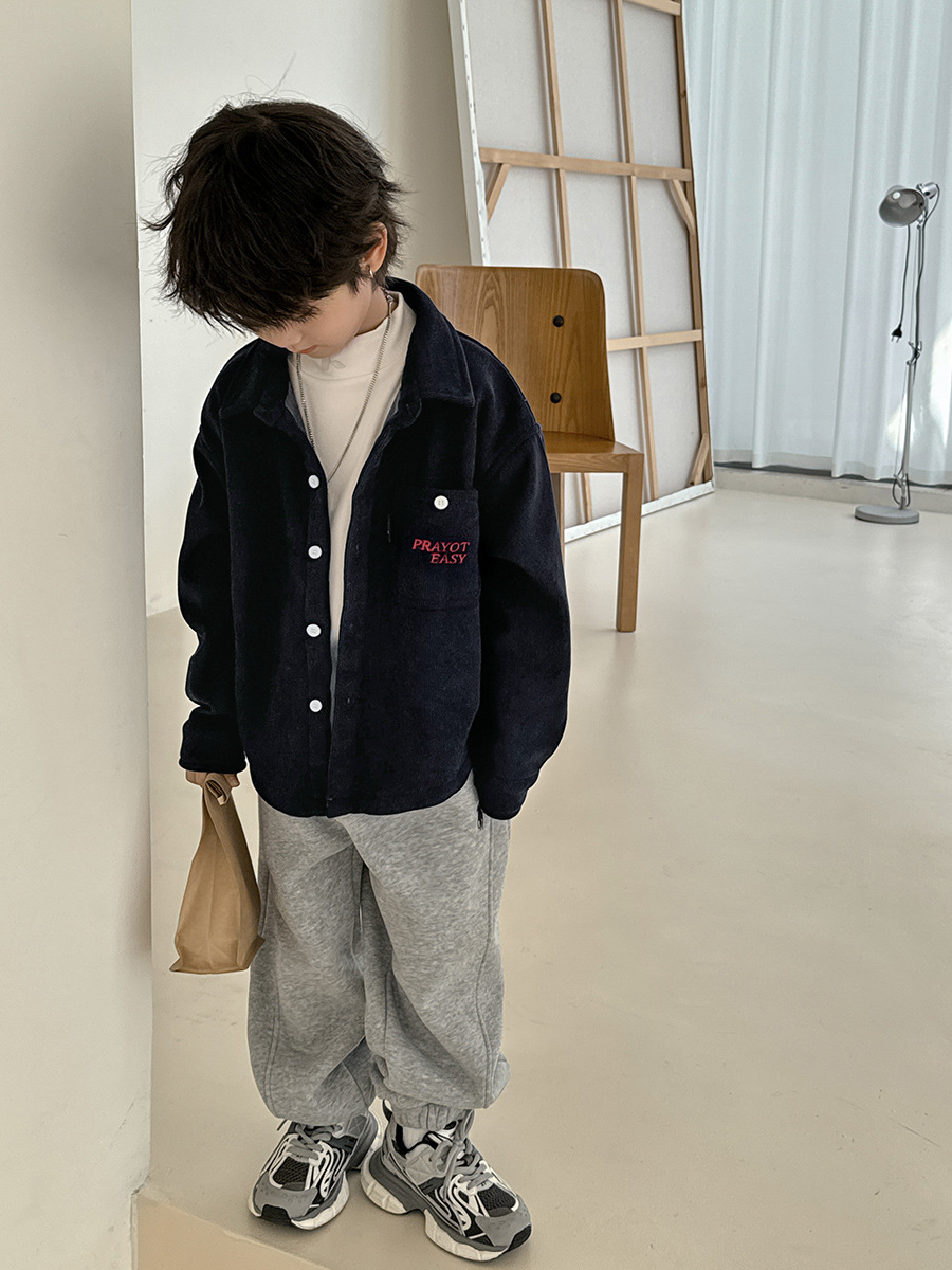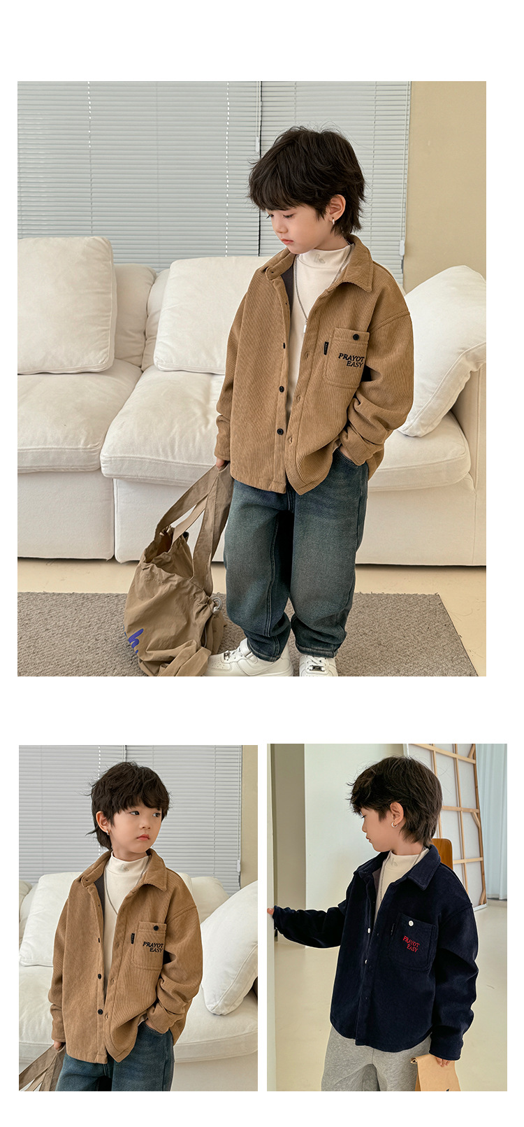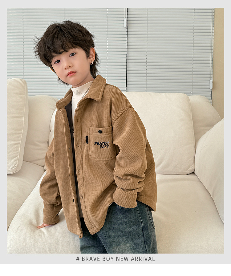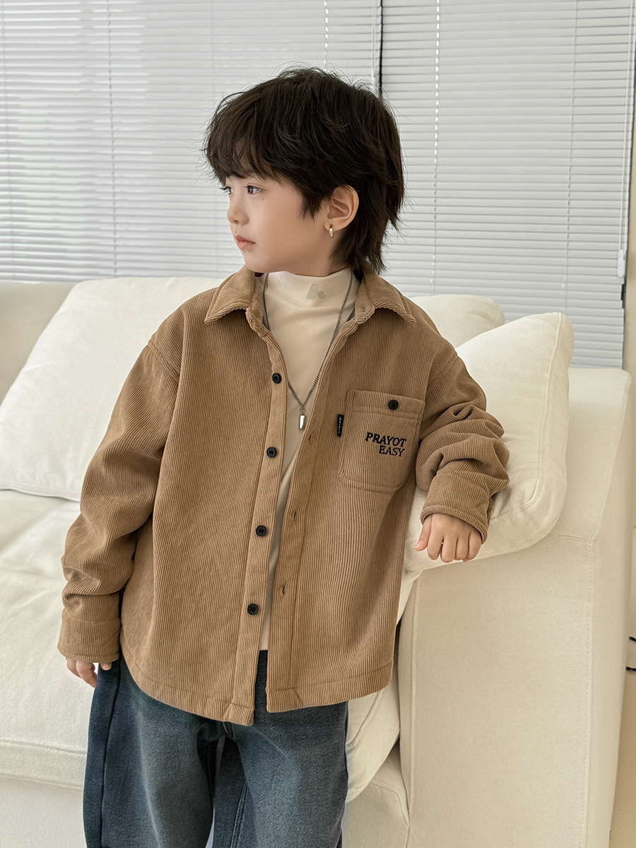 2024海妈家秋冬新款儿童男童韩版灯芯绒加绒加厚衬衫儿童冬装外穿