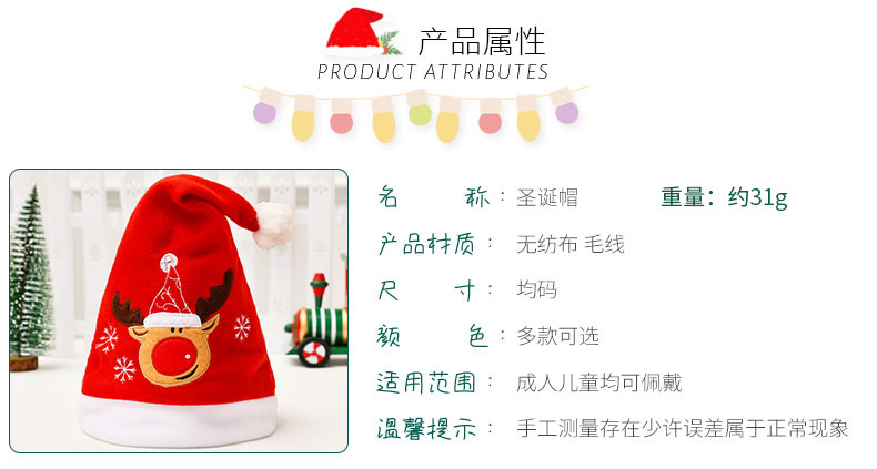 圣诞帽儿童成人圣诞老人鹿角帽子装扮头饰幼儿园圣诞节装饰品礼物