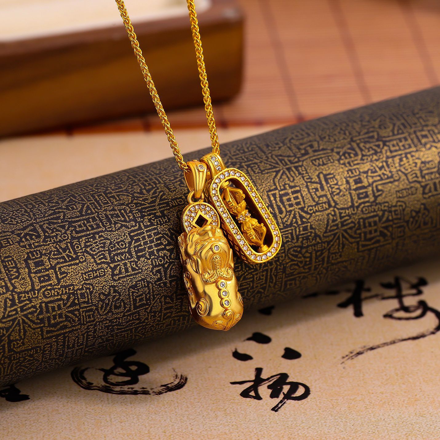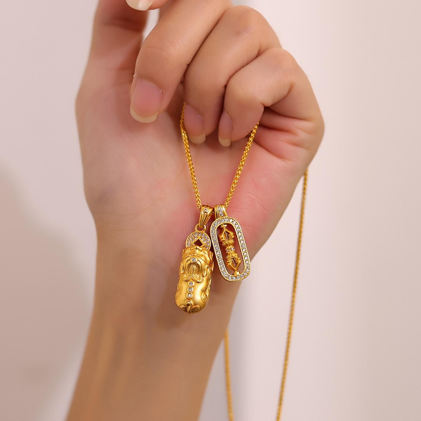 貔貅金刚杵吊坠项链时尚新中式古法沙金设计高级感2024叠戴锁骨链