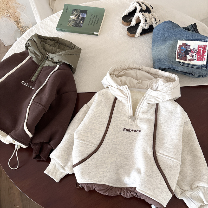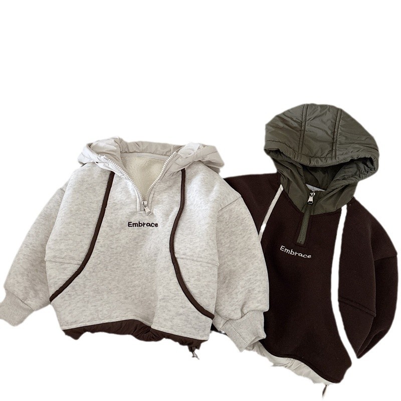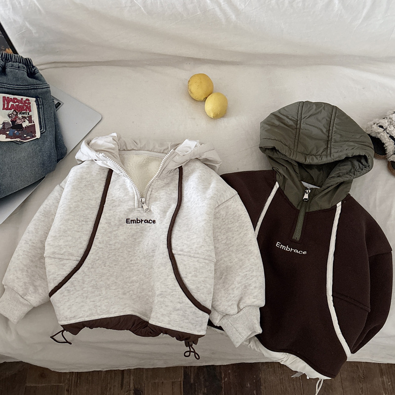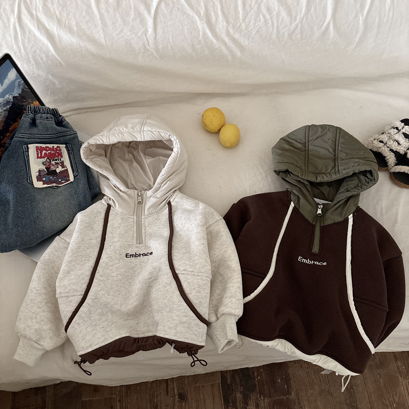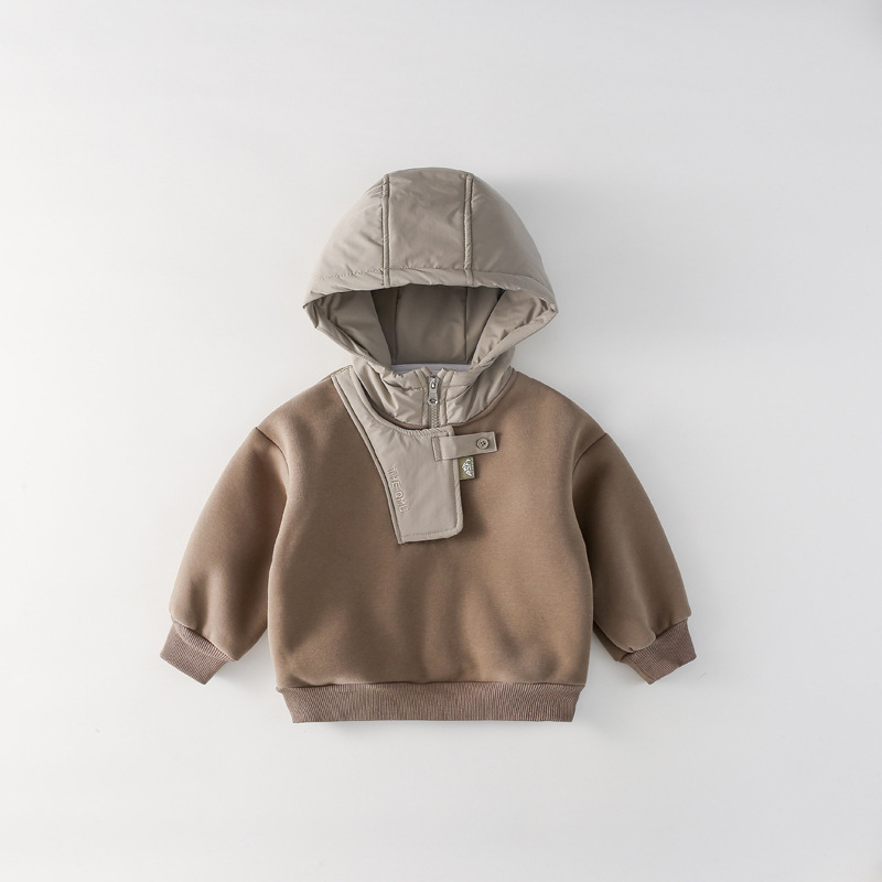 男童连帽加绒卫衣秋冬新款韩版儿童上衣男孩冬装潮牌一体绒上衣