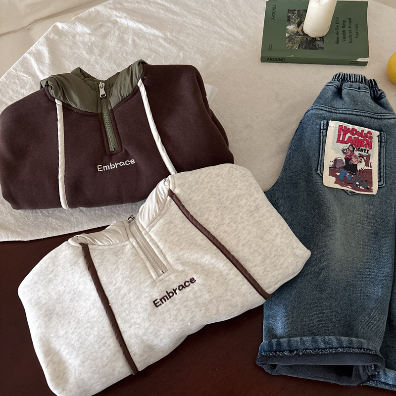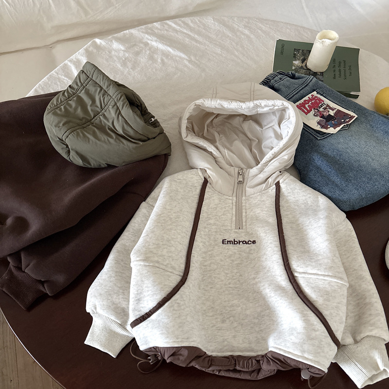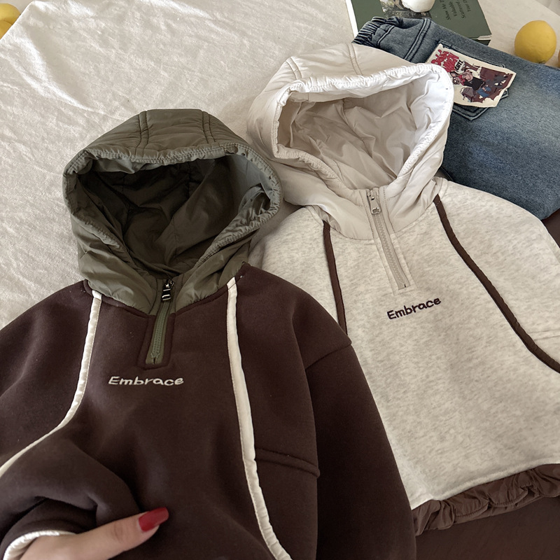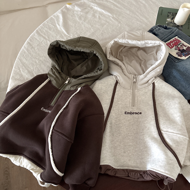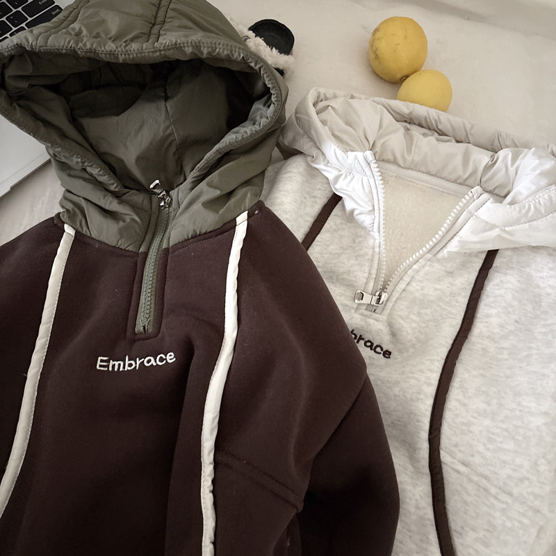 男童连帽加绒卫衣秋冬新款韩版儿童上衣男孩冬装潮牌一体绒上衣
