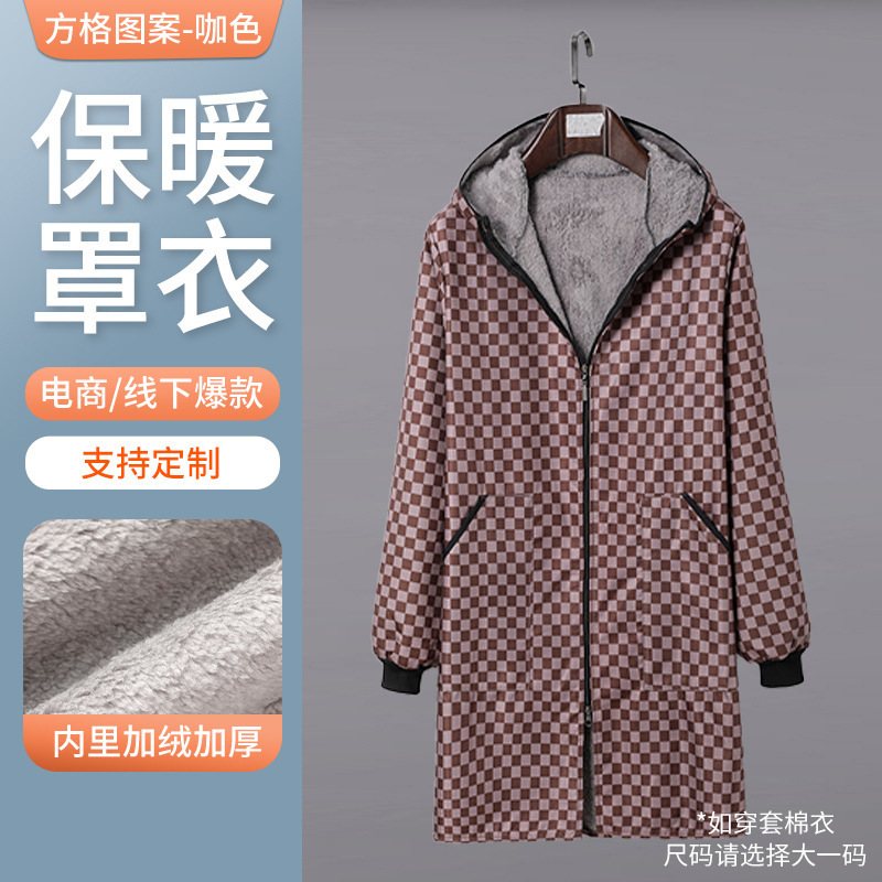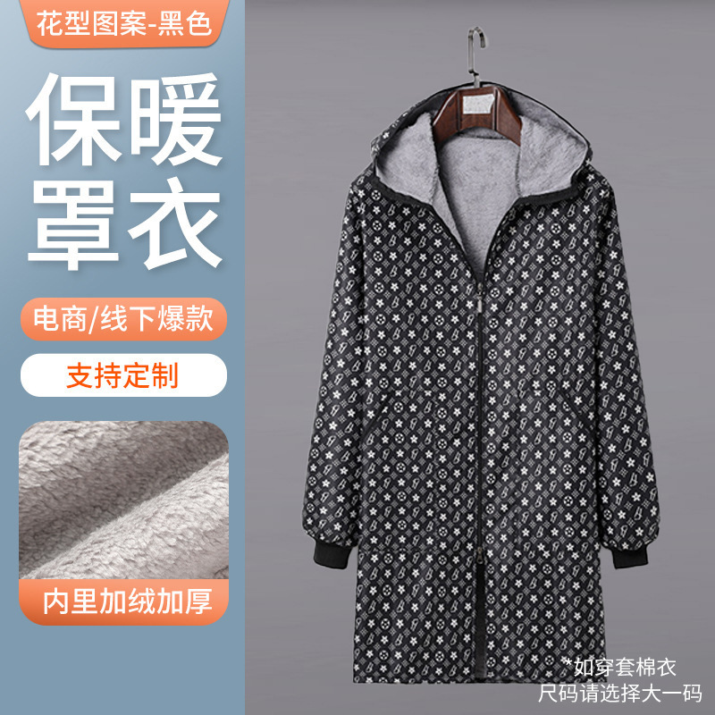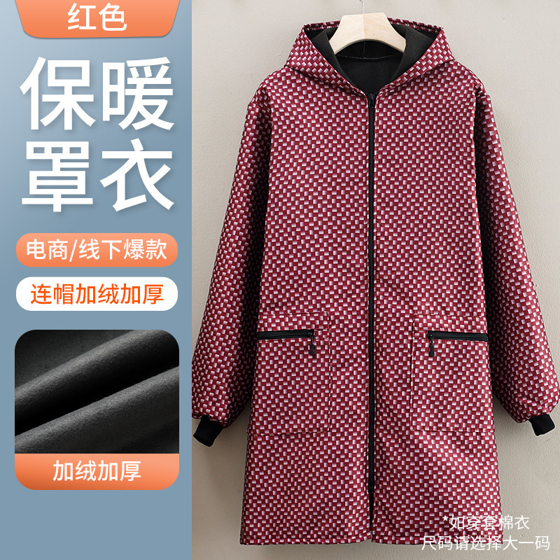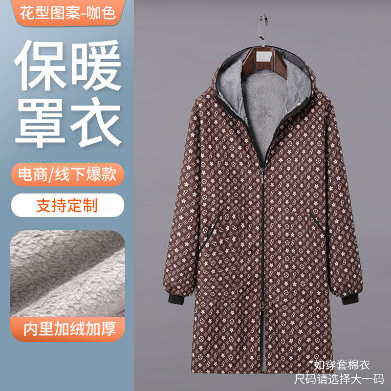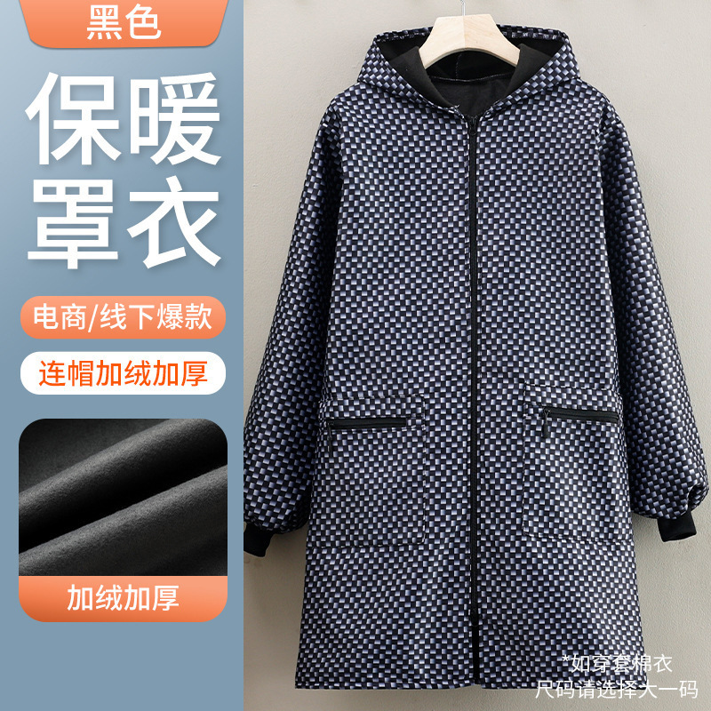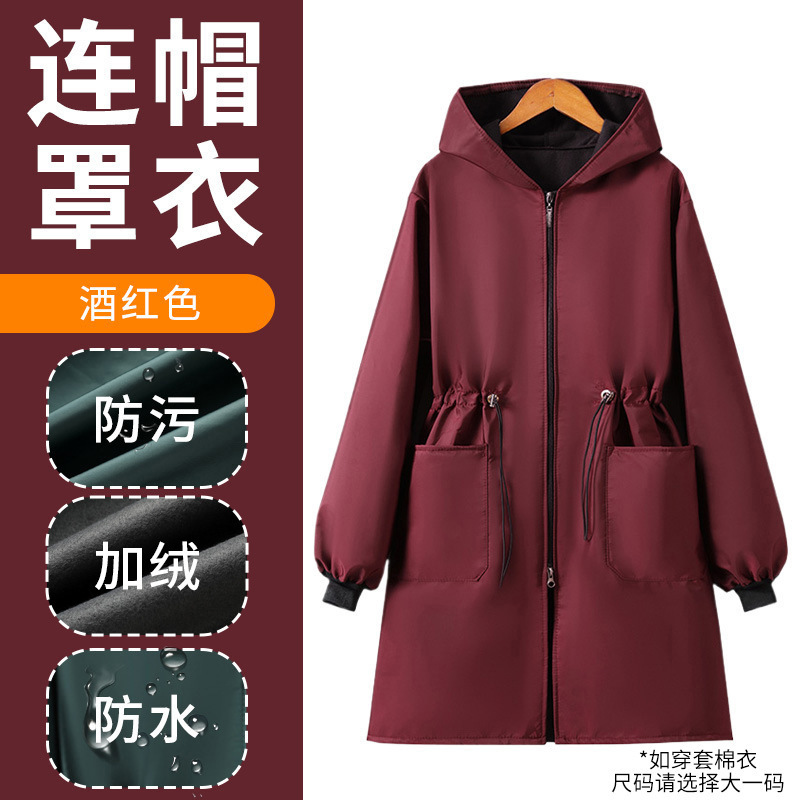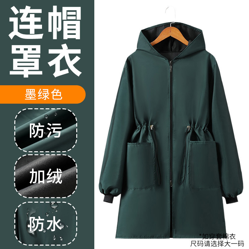 批发新款保暖罩衣加绒防水防油罩衣收腰厨房长袖围裙工作服耐脏女