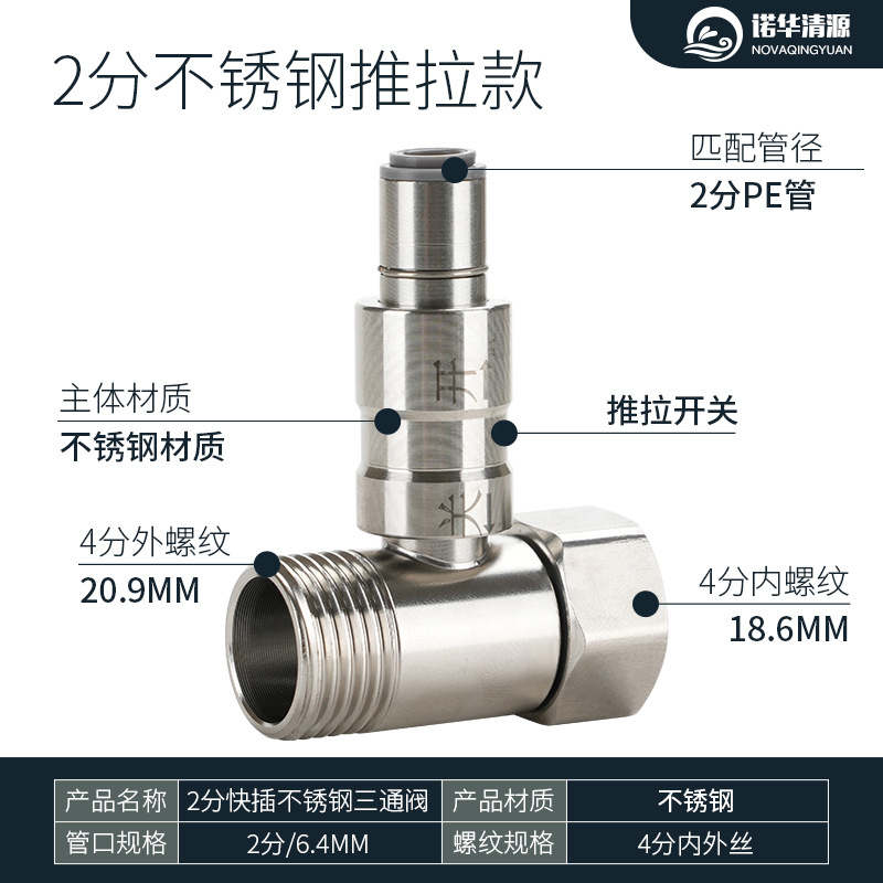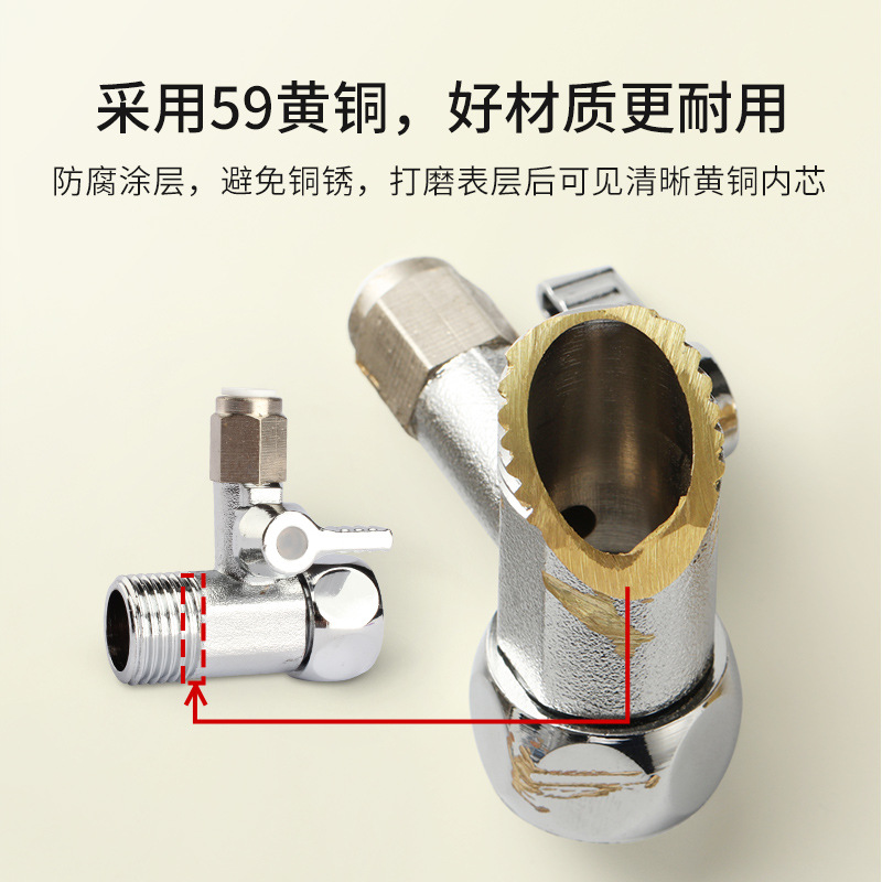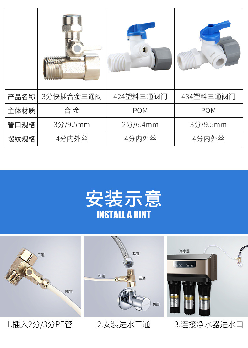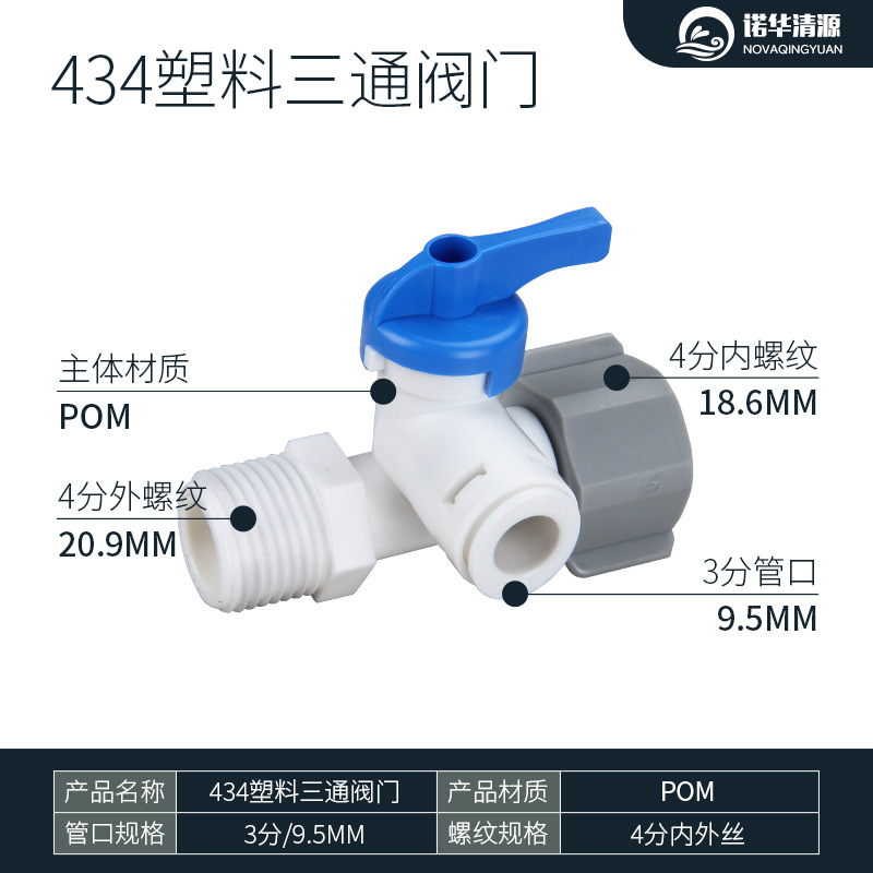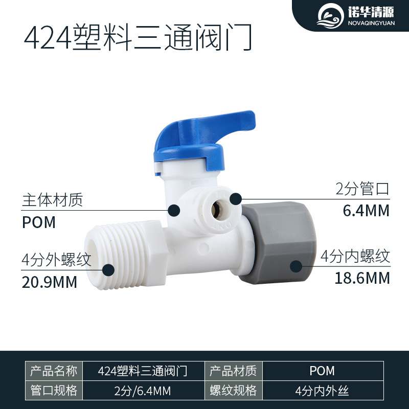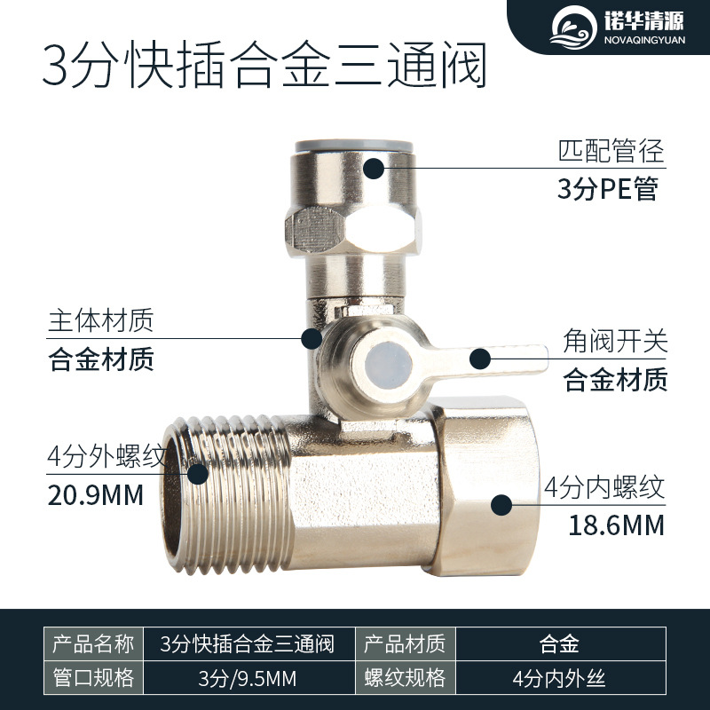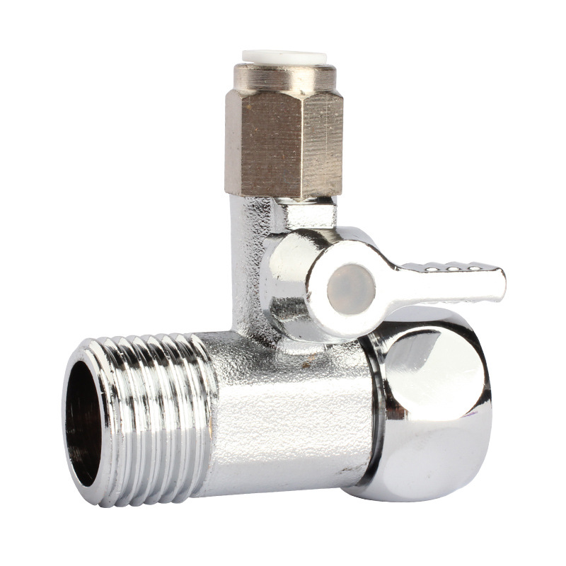 净水器配件2分3分进水三通阀门合金黄铜连体式4转2金属阀4转3开关