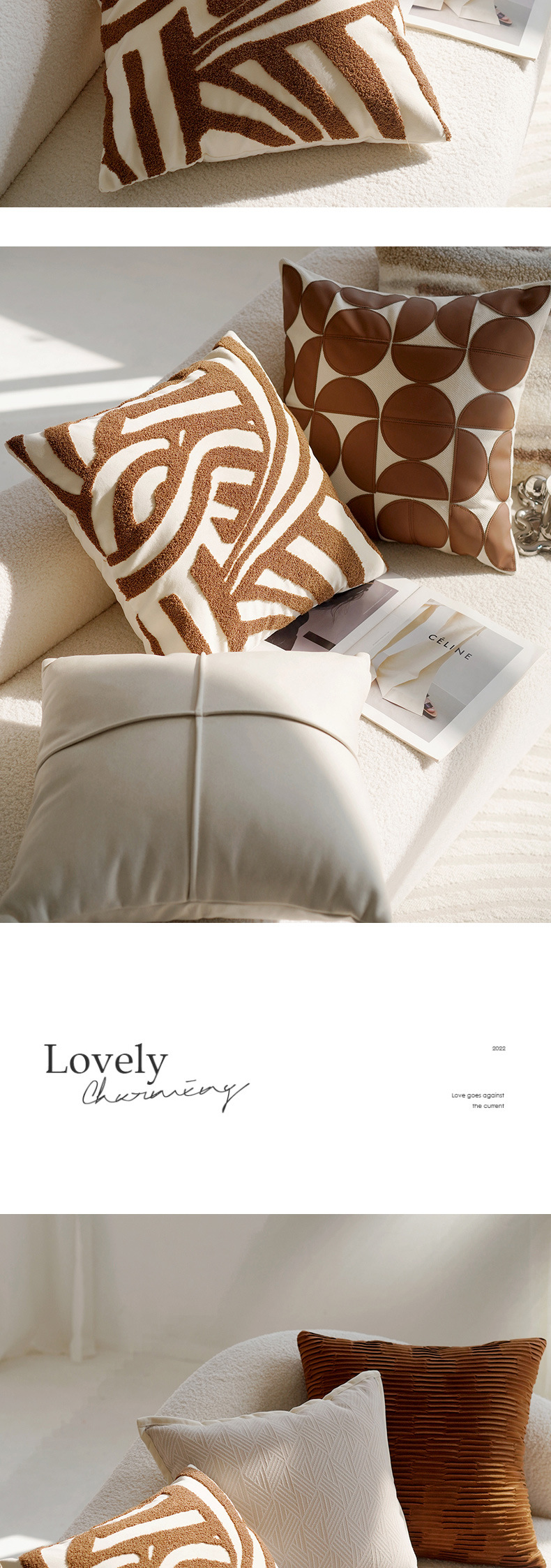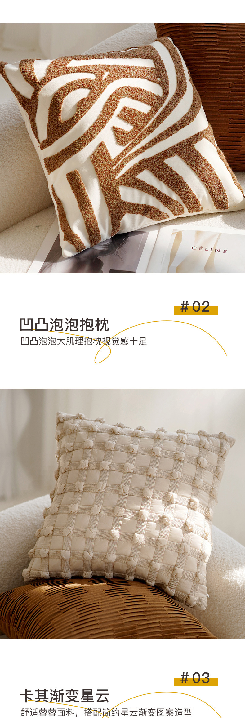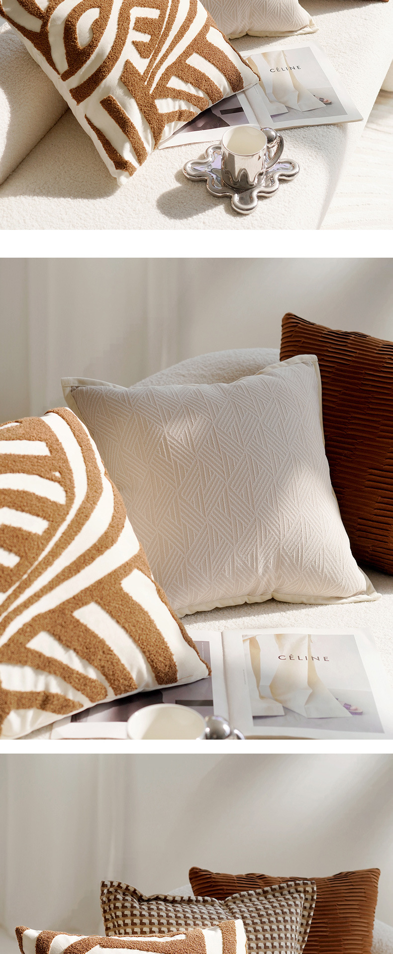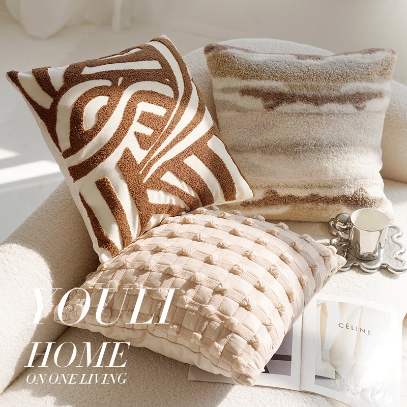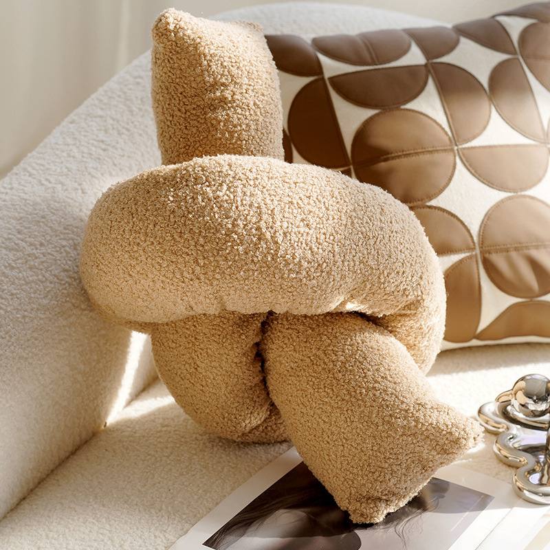 奶油色高级复古风打结抱枕套沙发床上棕色床上腰靠枕靠垫含芯飘窗