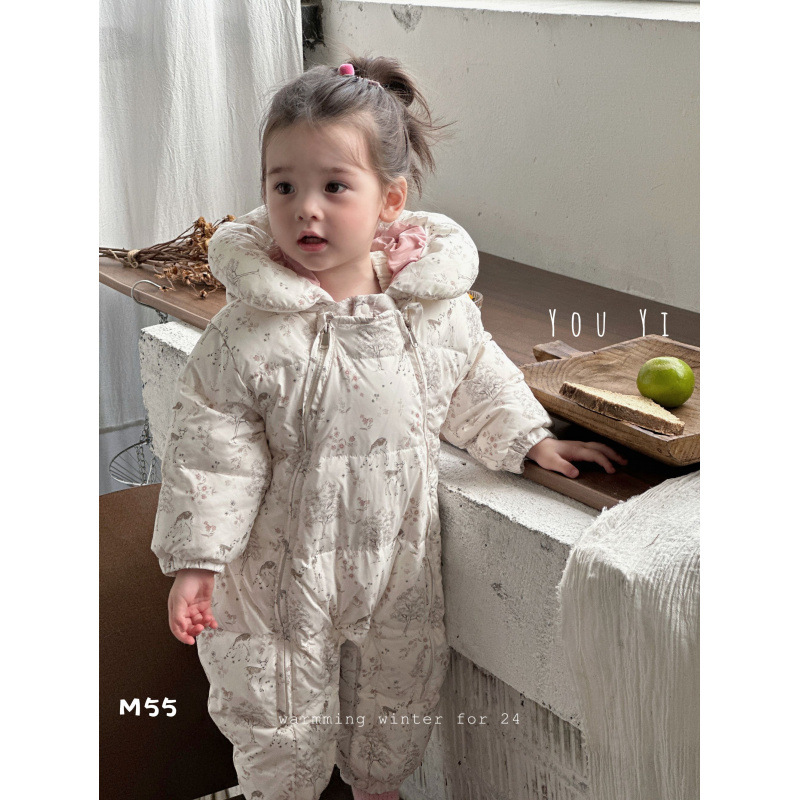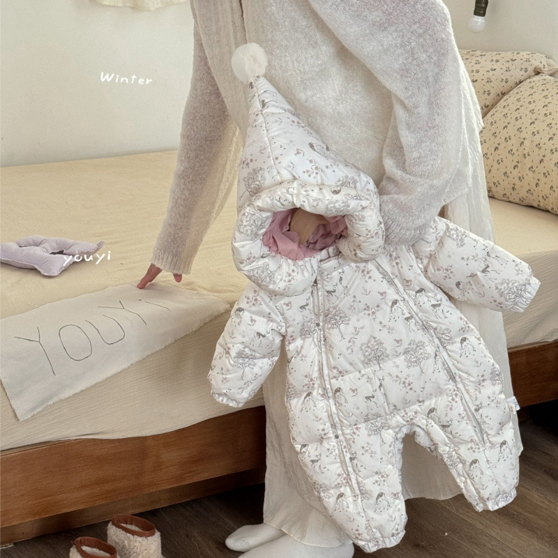 婴儿羽绒服连体衣公主女宝宝冬装白鸭绒哈衣外出保暖抱衣可爱小鹿