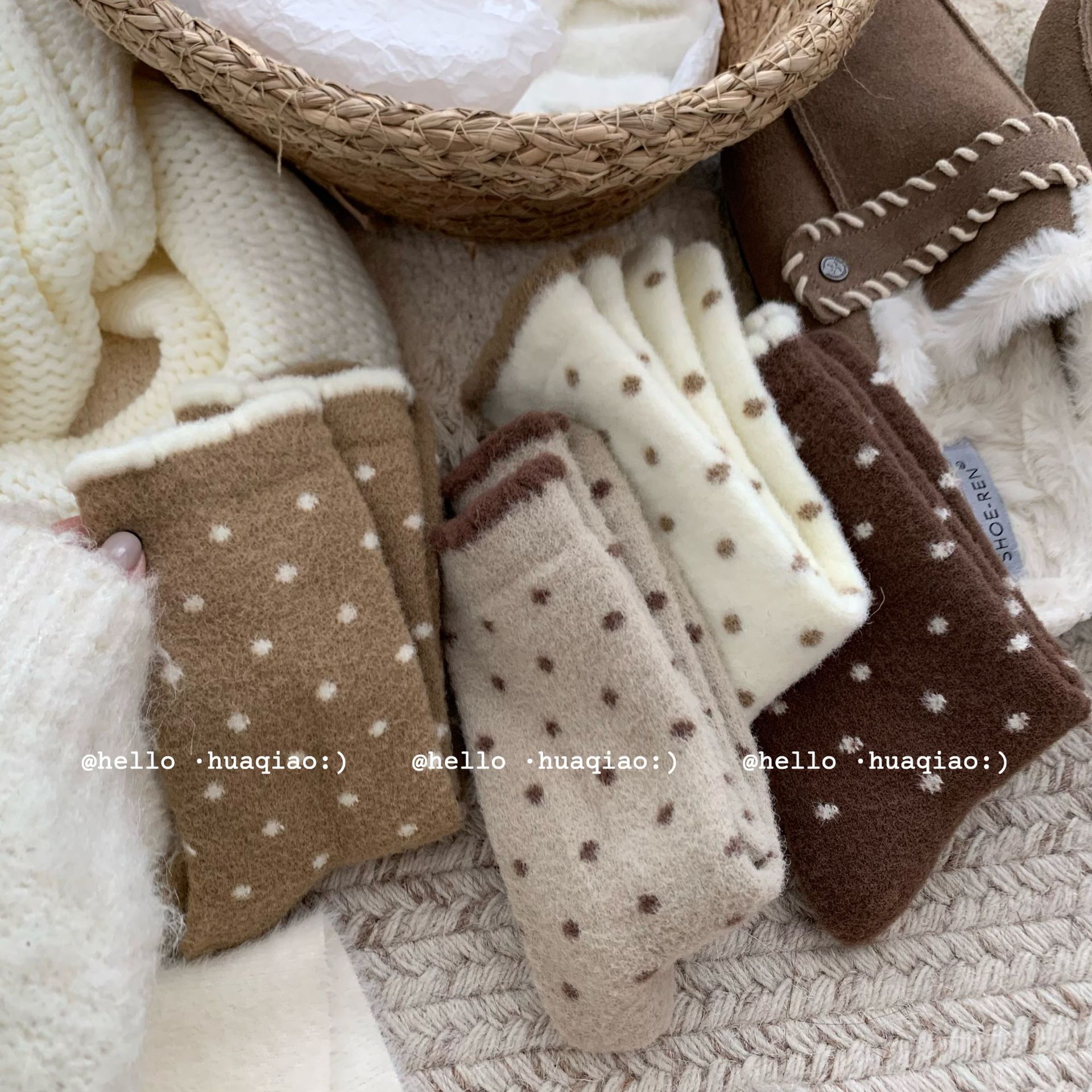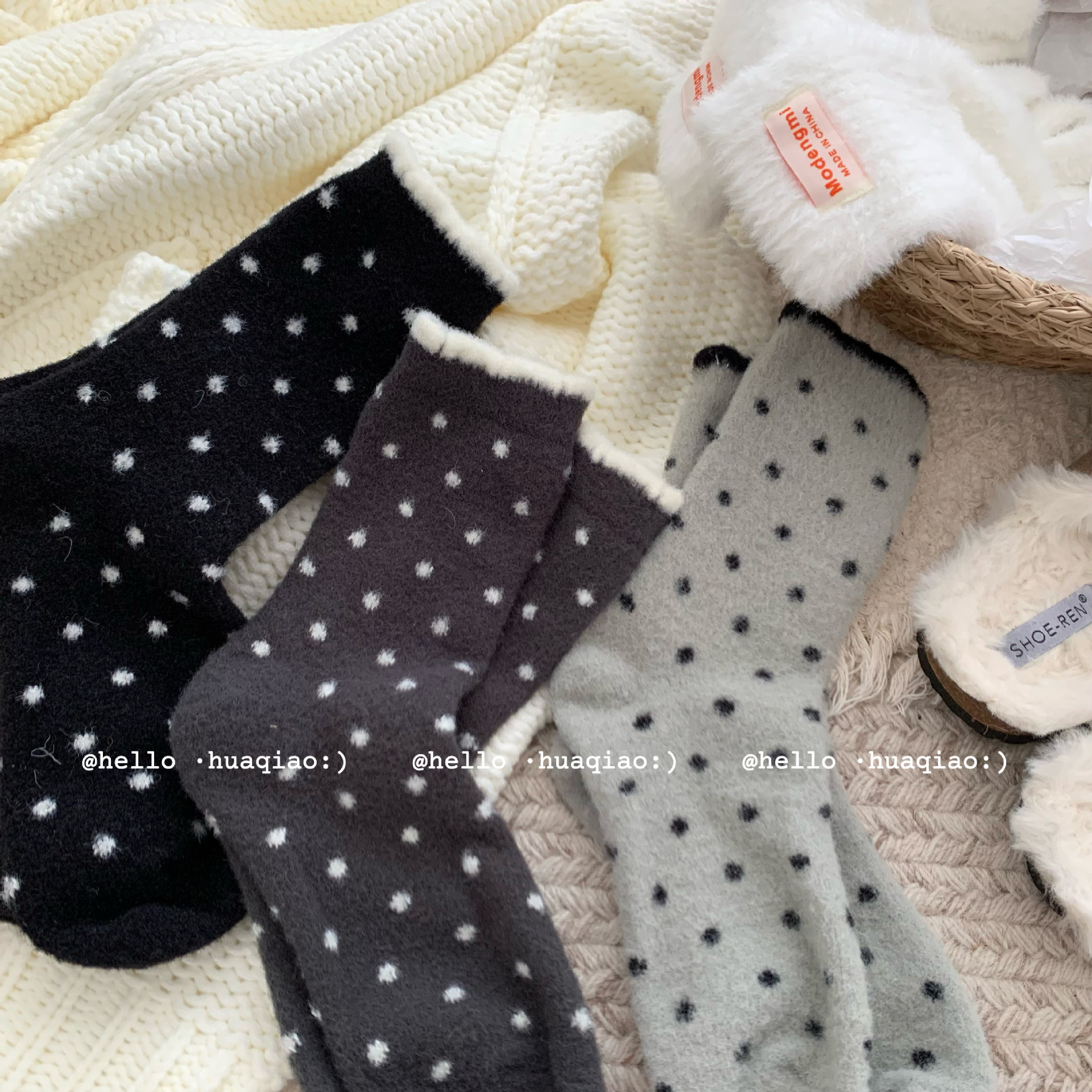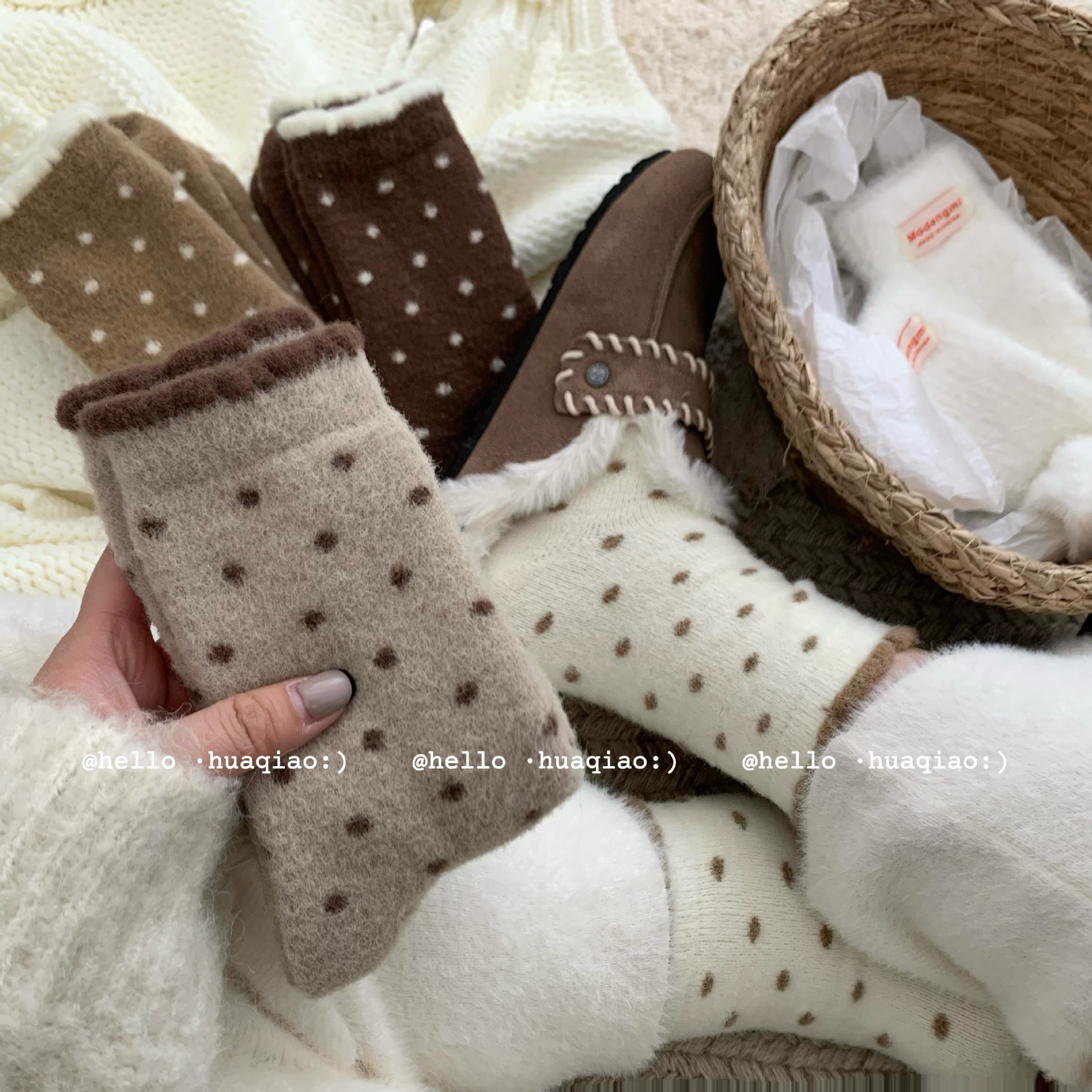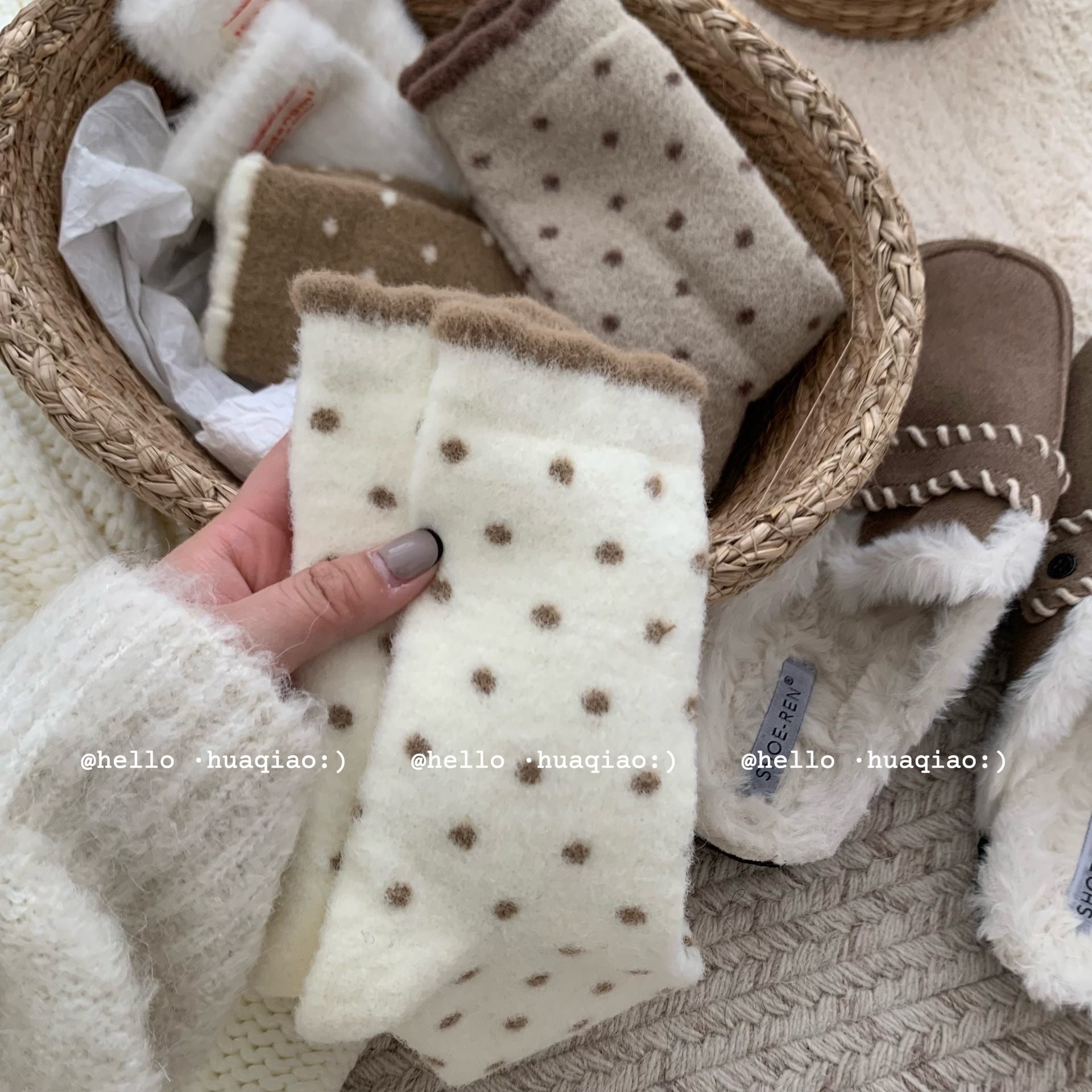 “冬日小暖炉 ”少女甜美波点lolita花边加厚保暖澳绒中筒袜女袜