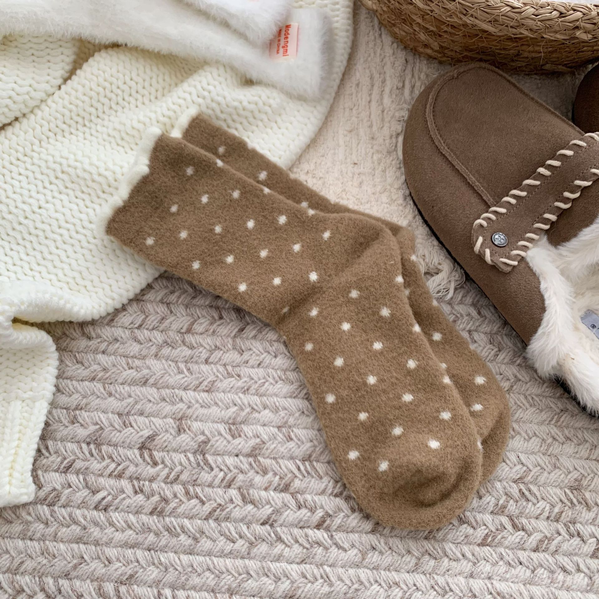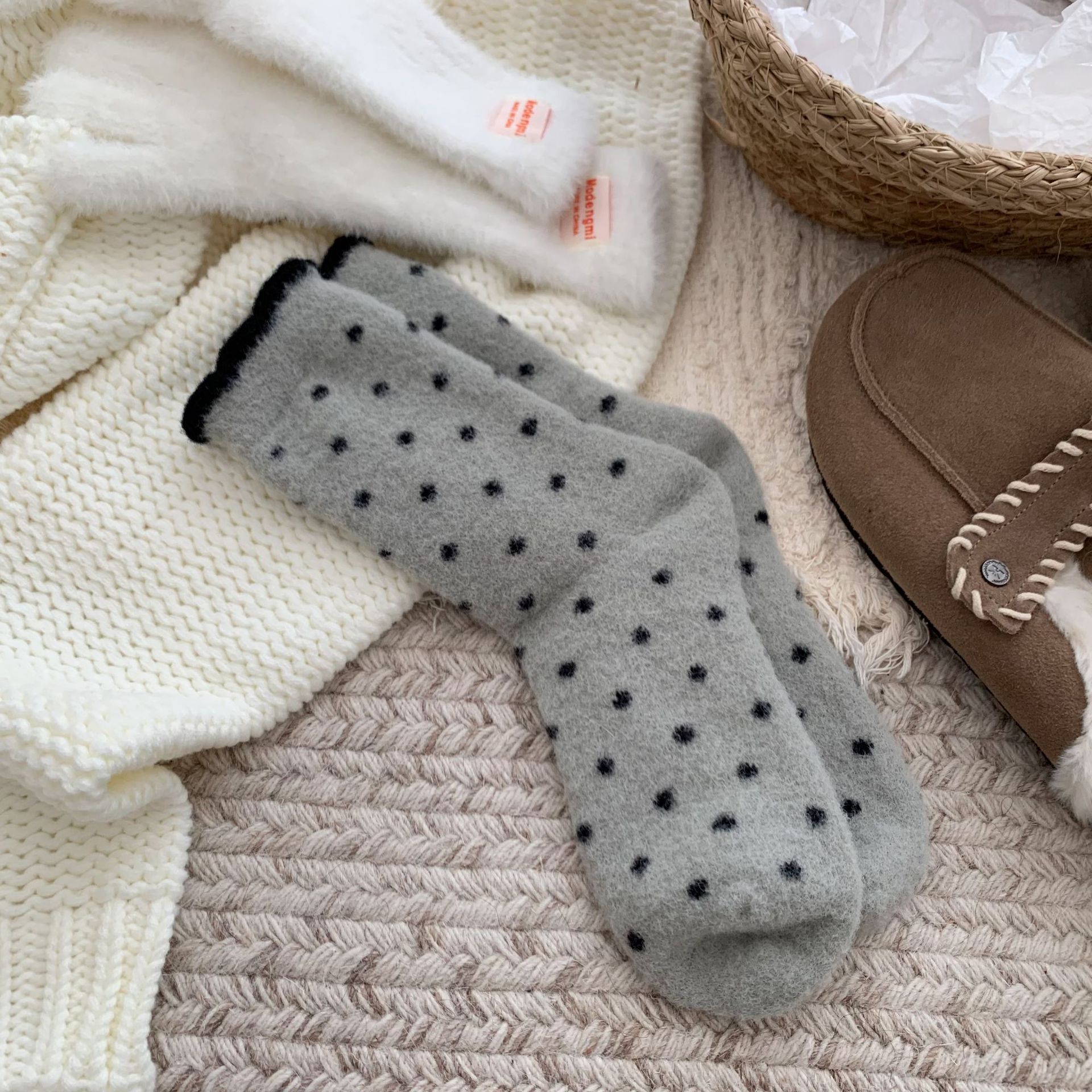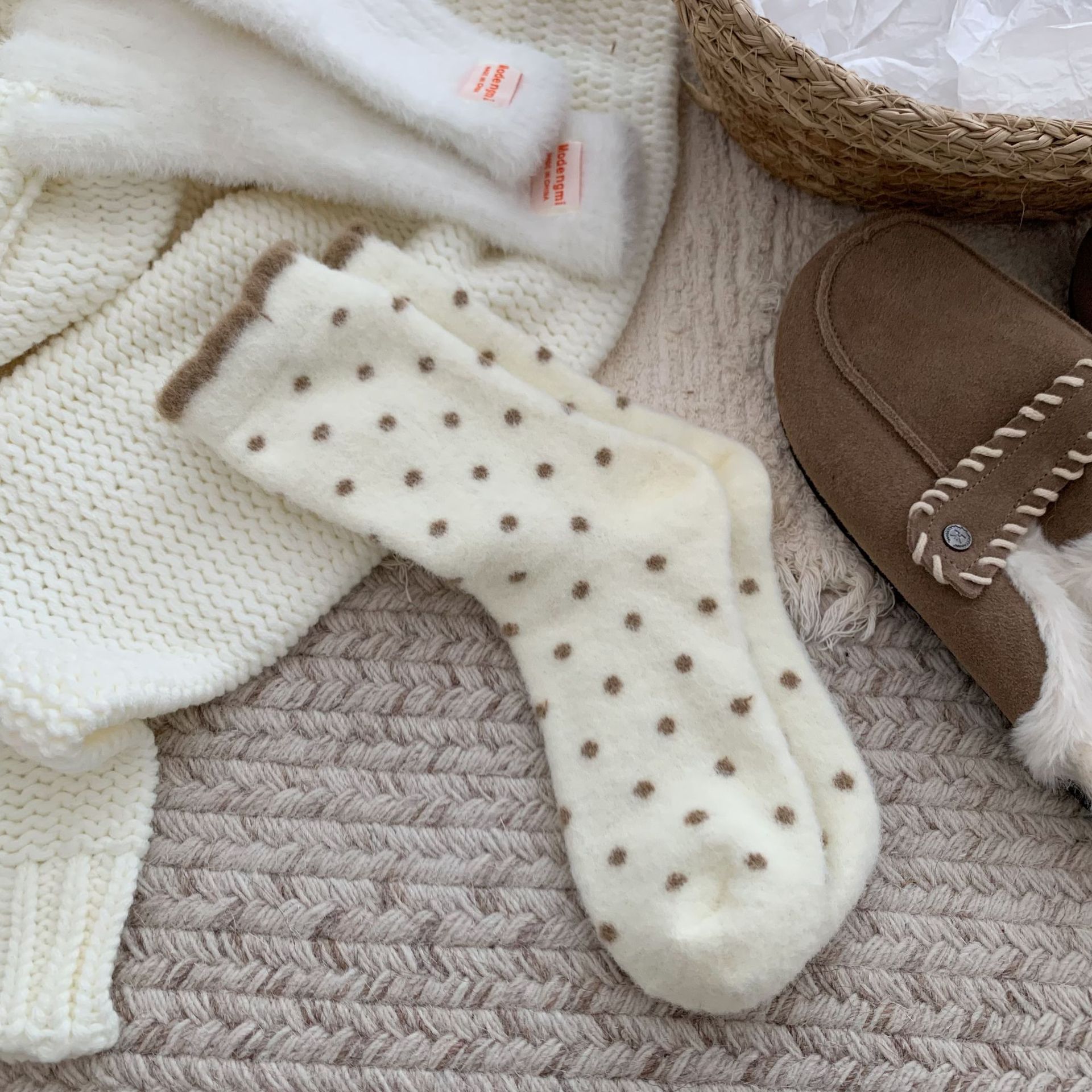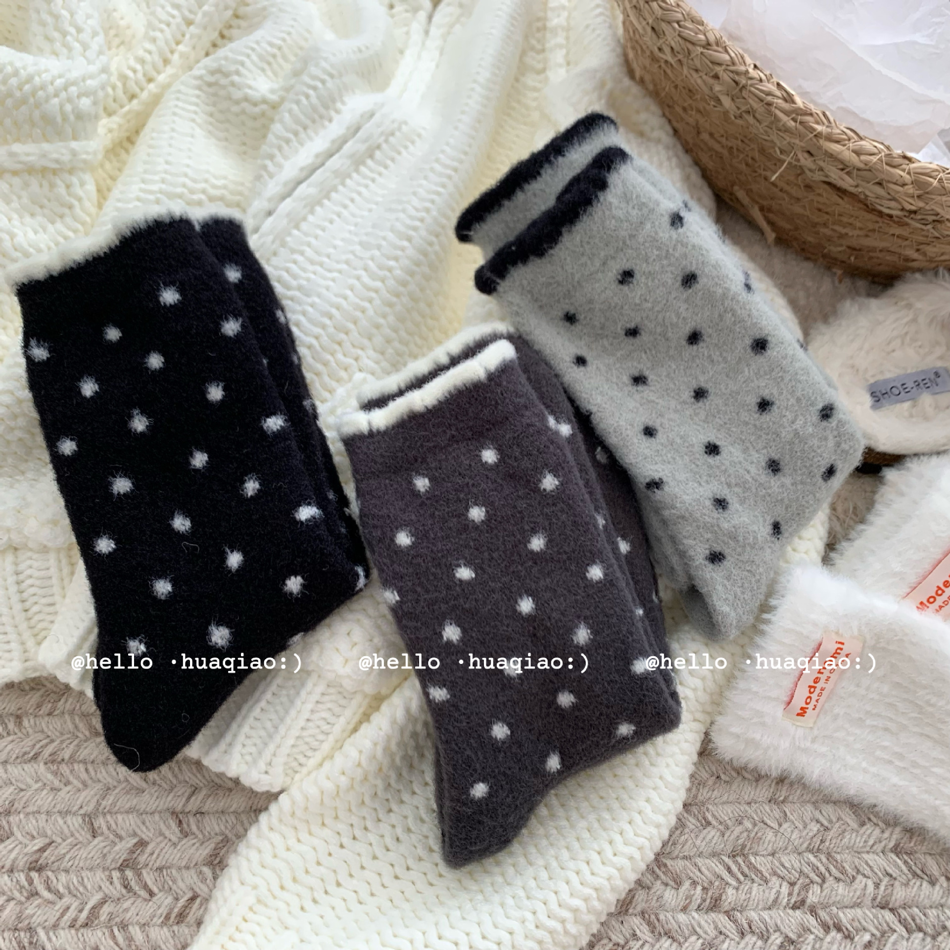 “冬日小暖炉 ”少女甜美波点lolita花边加厚保暖澳绒中筒袜女袜