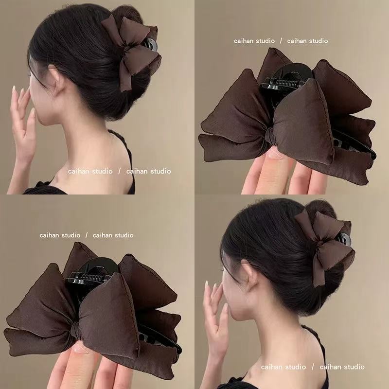韩国头饰小众设计发饰秋冬饰品可爱甜美发抓夹粉色大蝴蝶结鲨鱼夹