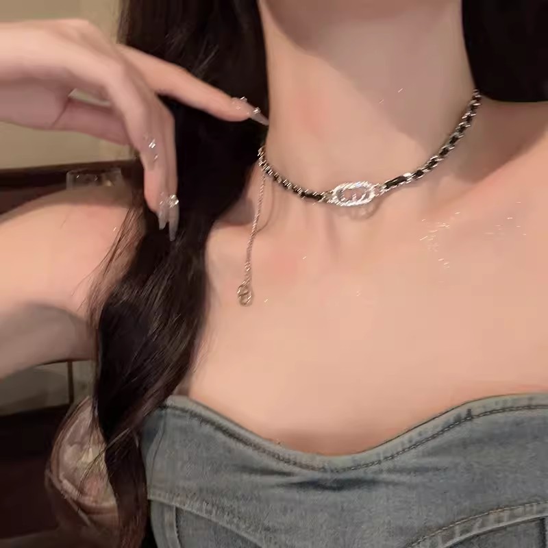 2024新款超闪满钻流苏珍珠项链女款轻奢高级感锁骨链颈链百搭配饰