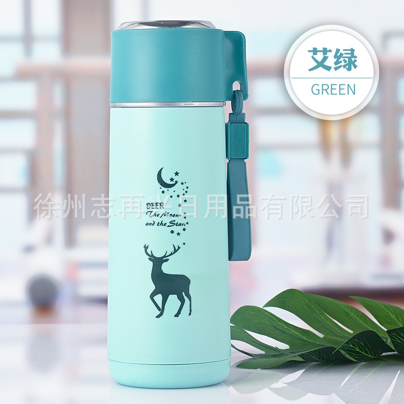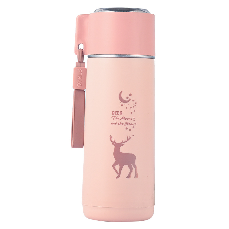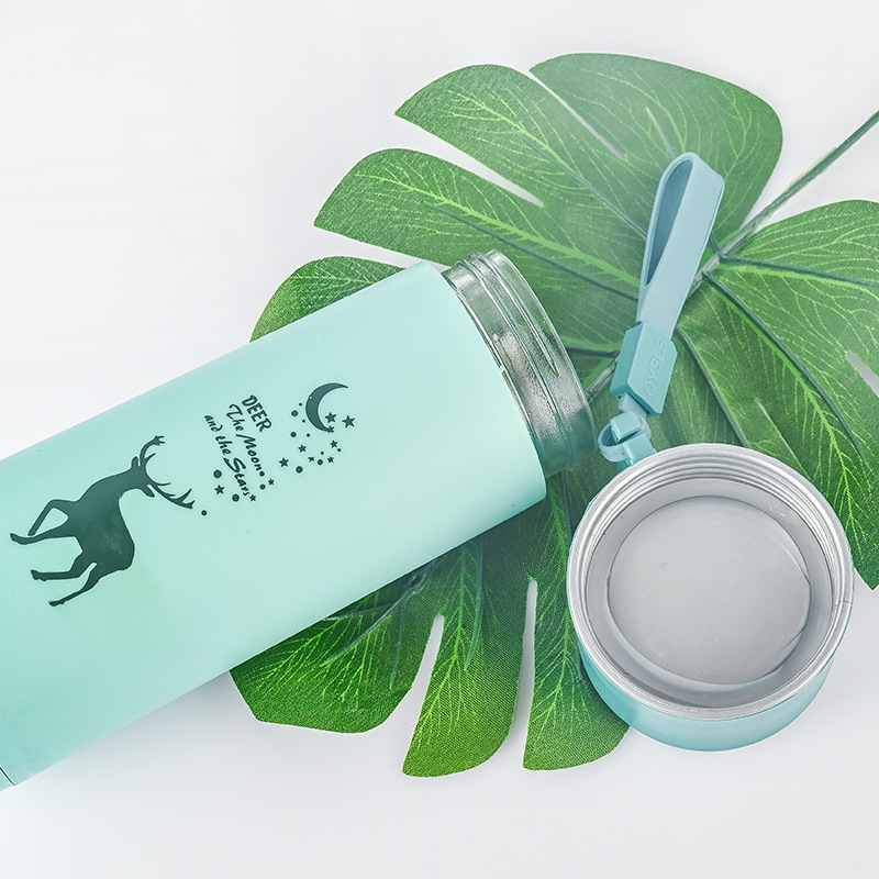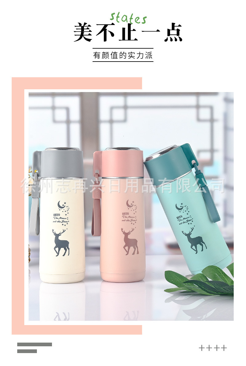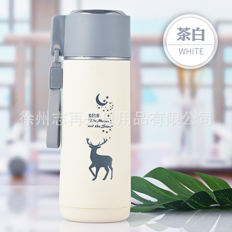 批发星空鹿水杯保温杯双层礼品杯促销饮水杯礼品卡通玻璃提绳杯