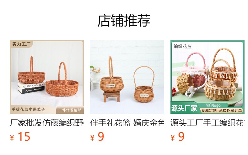 厂家供应藤编手提编织花篮情人节花篮收纳篮婚礼插花篮家用装饰篮