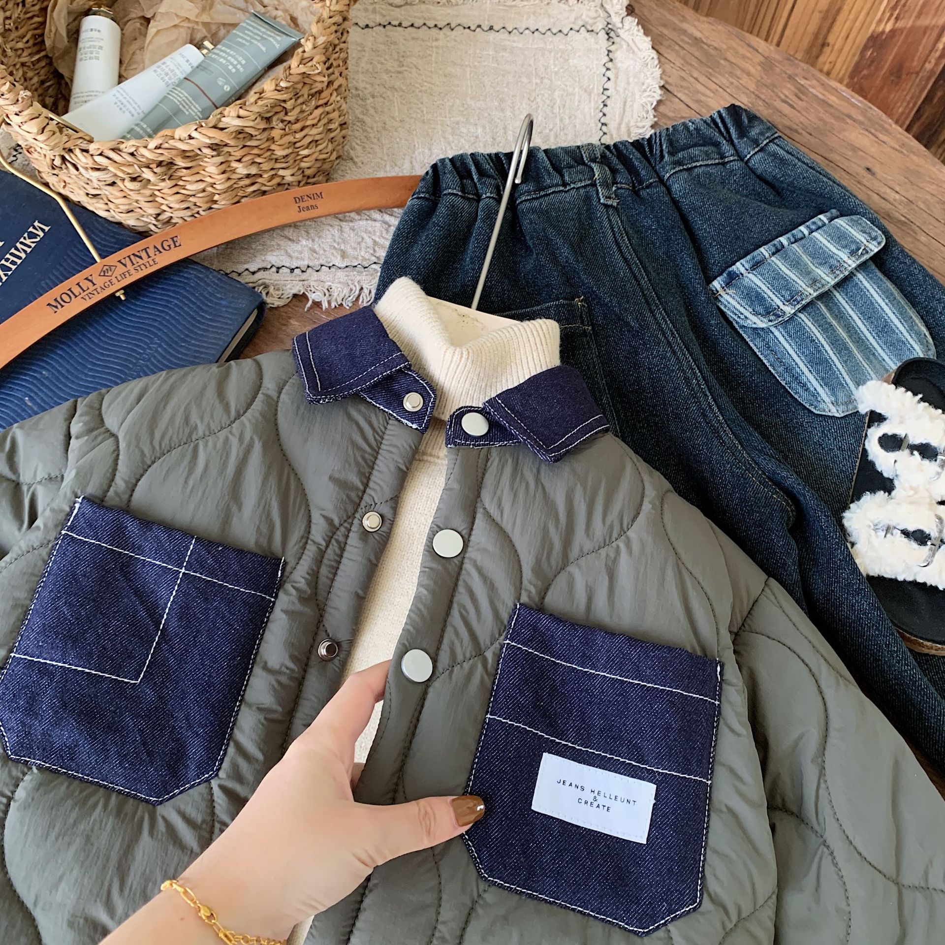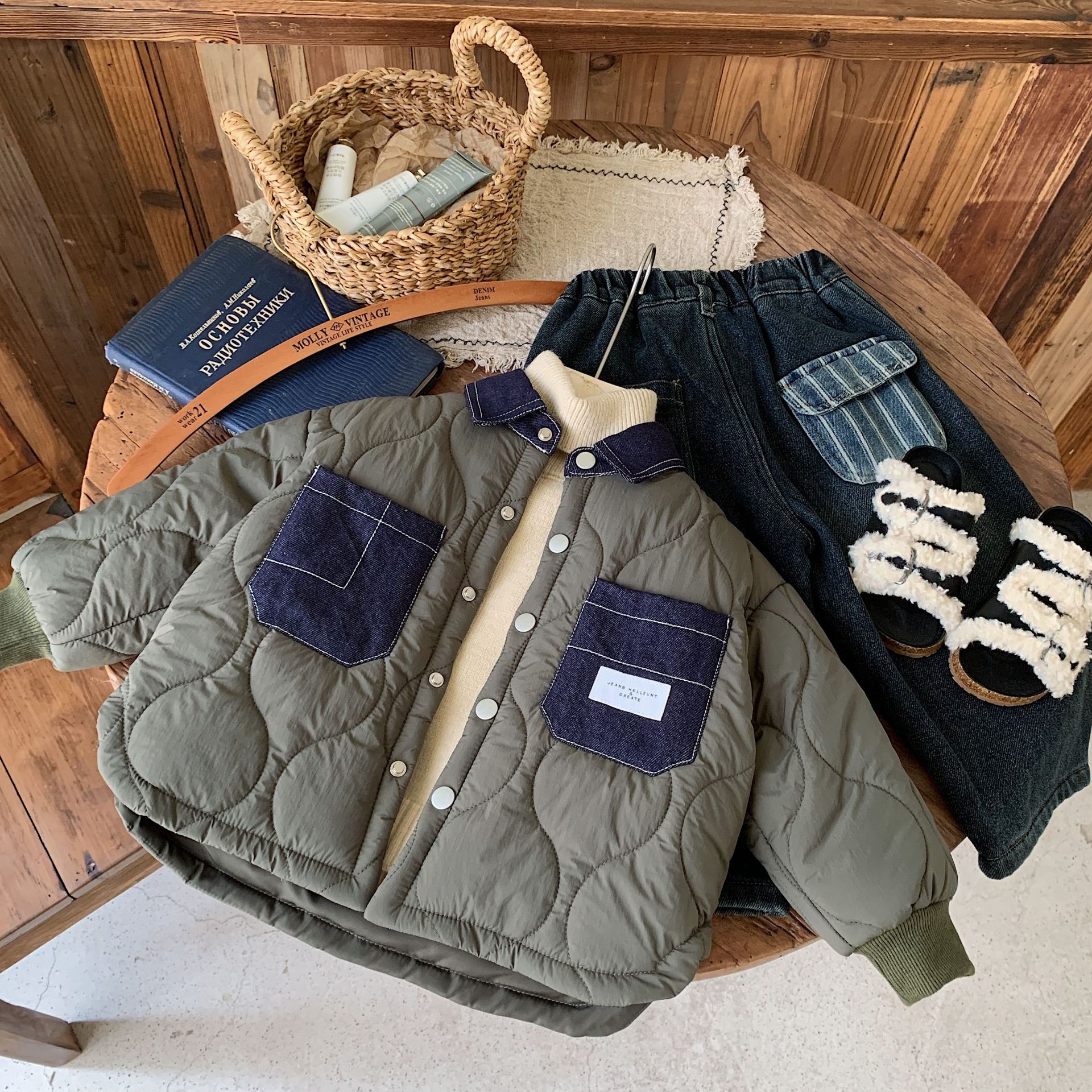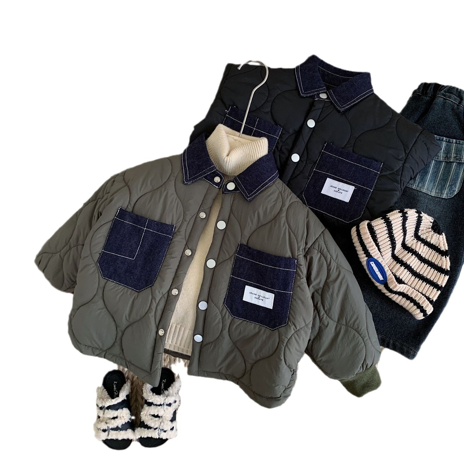 儿童外套邦诚2024冬季新品牛仔领绗棉衬衣男童百搭棉服棉衣F0541