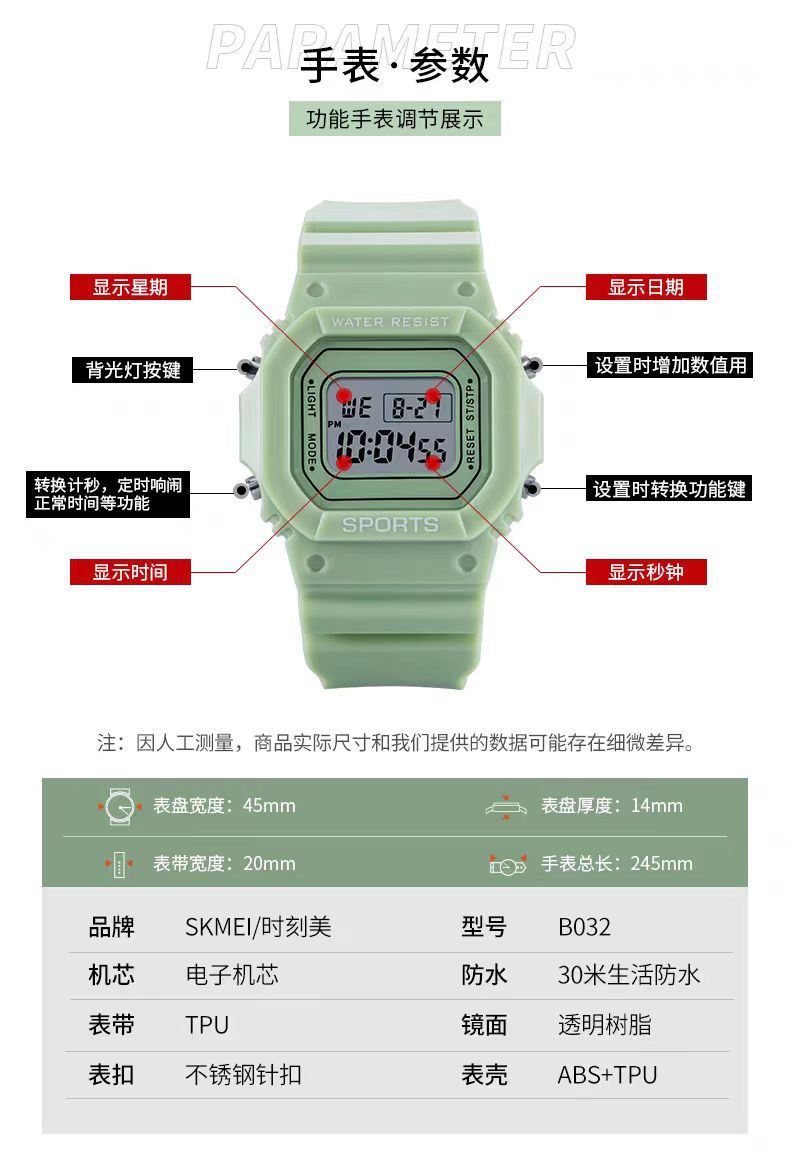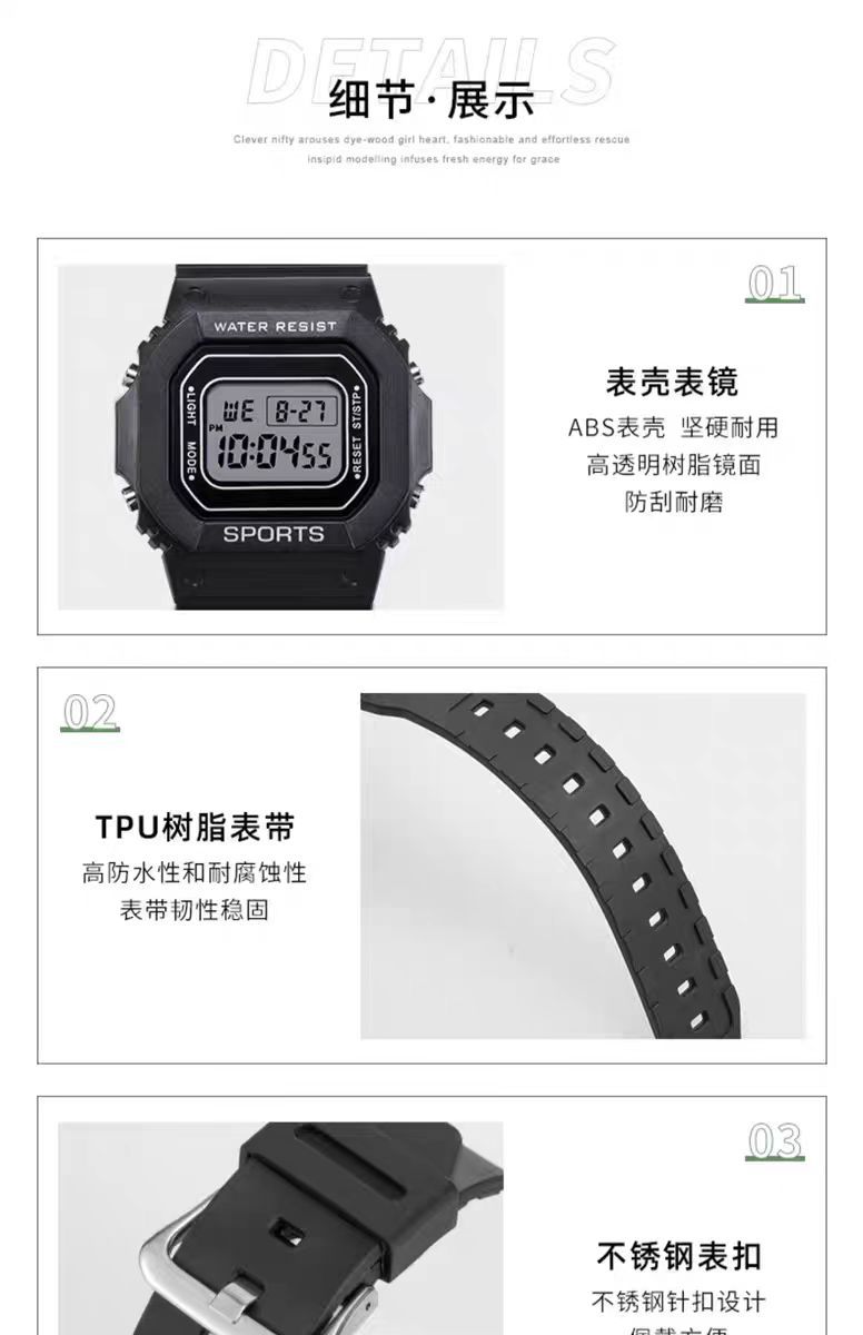 2024新款电子手表男生初中初高中学生用高颜值运动防水女生小方块