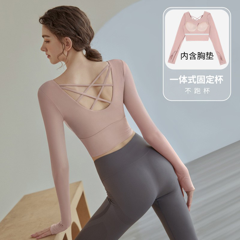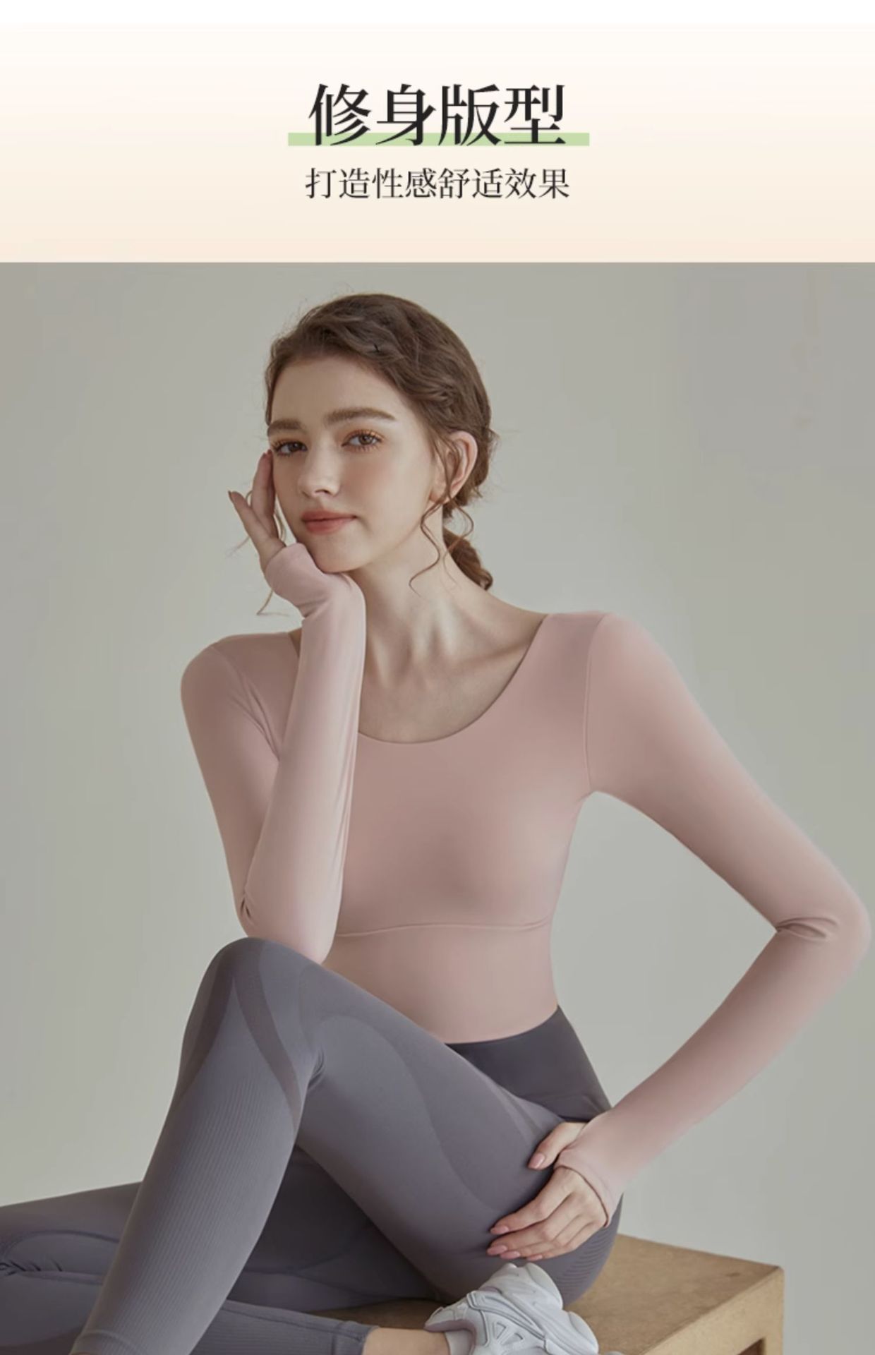 瑜伽服女2024新款瑜伽长袖上衣运动健身训练服专业普拉提透气套装