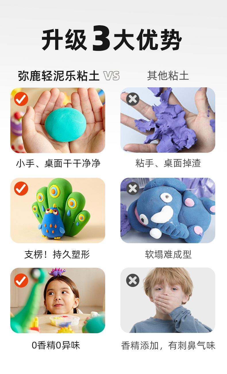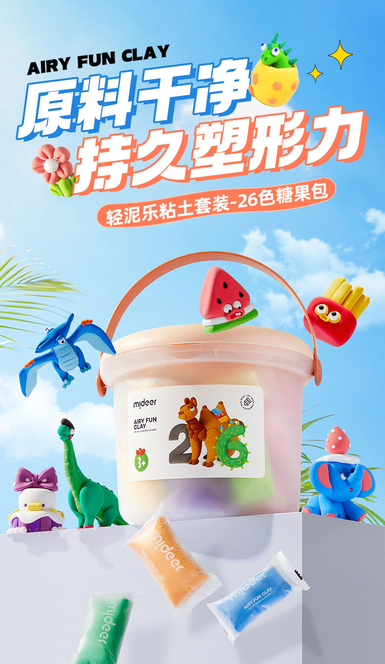 mideer弥鹿儿童轻泥乐轻粘土糖果色彩泥黏土橡皮泥幼儿园DIY玩具