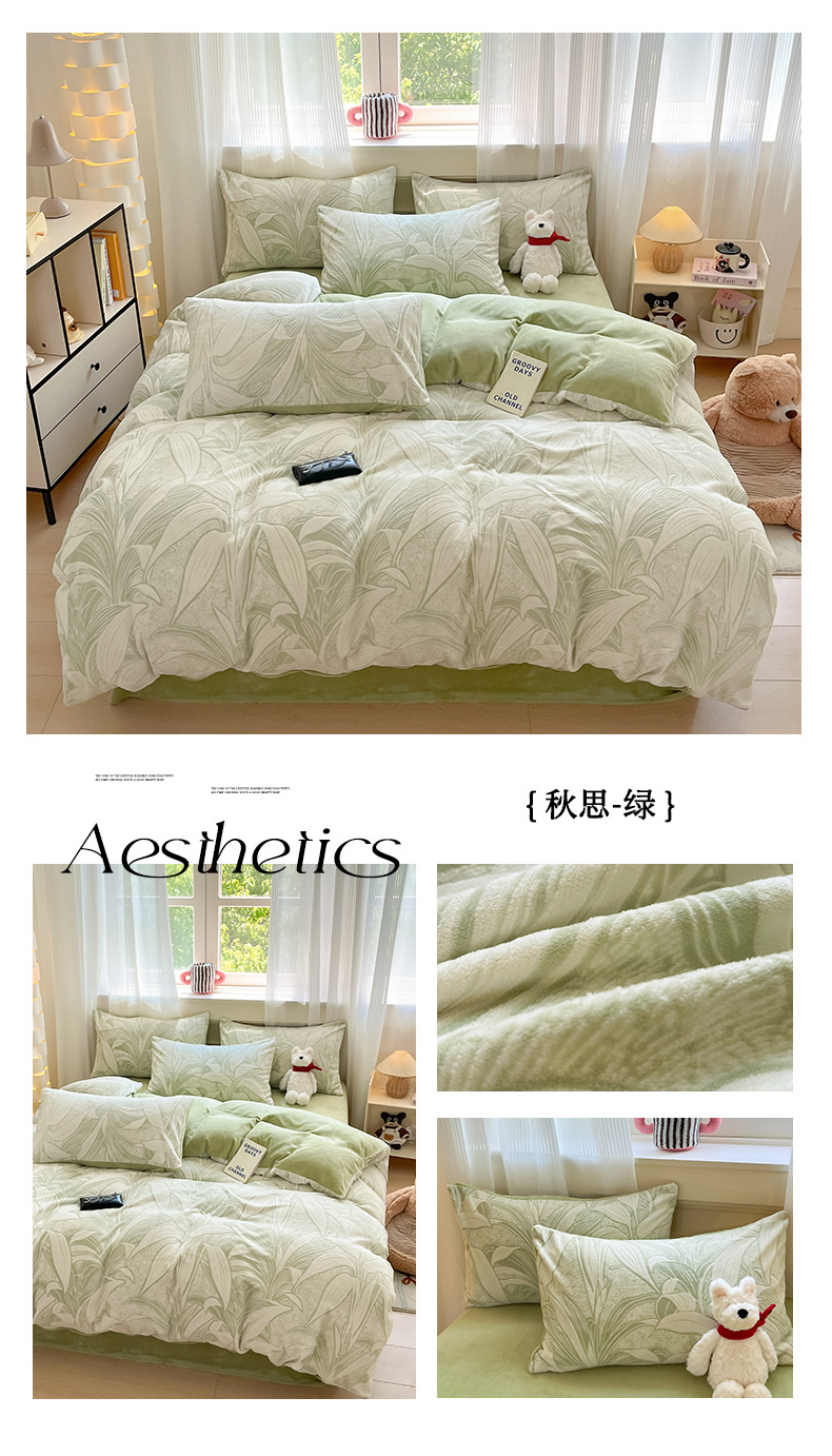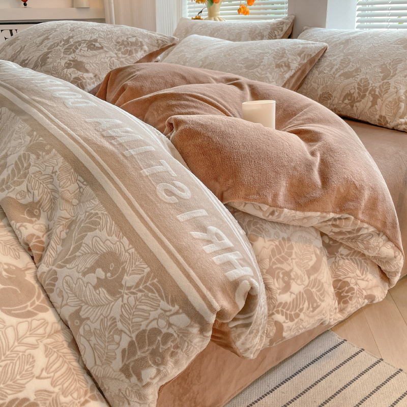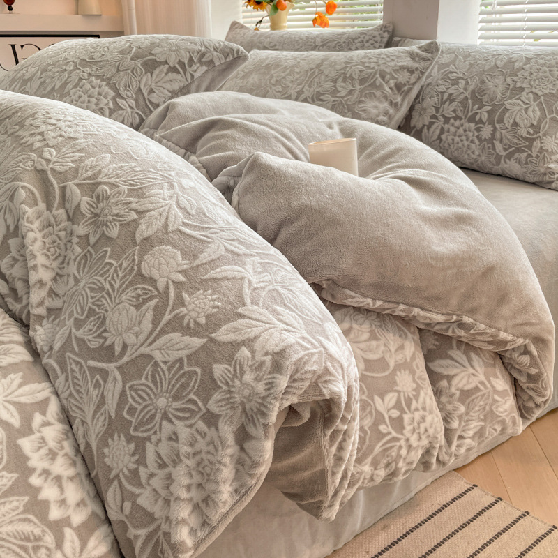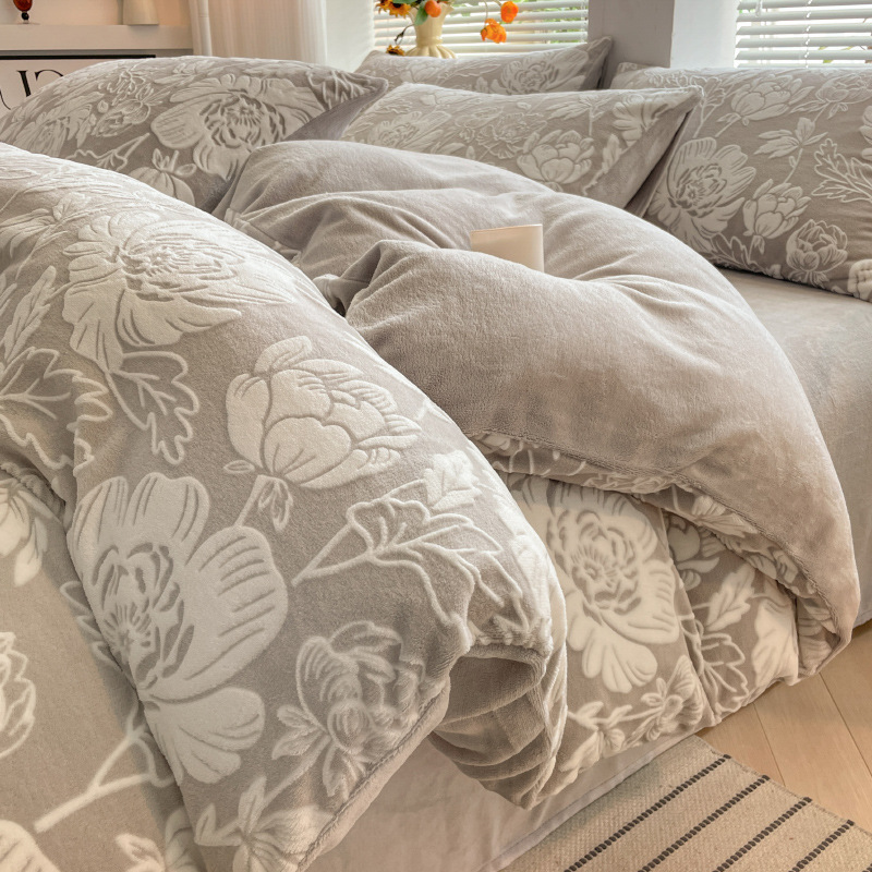 A类母婴级加厚保暖牛奶绒四件套珊瑚绒雕花绒被套加绒床单床笠款3