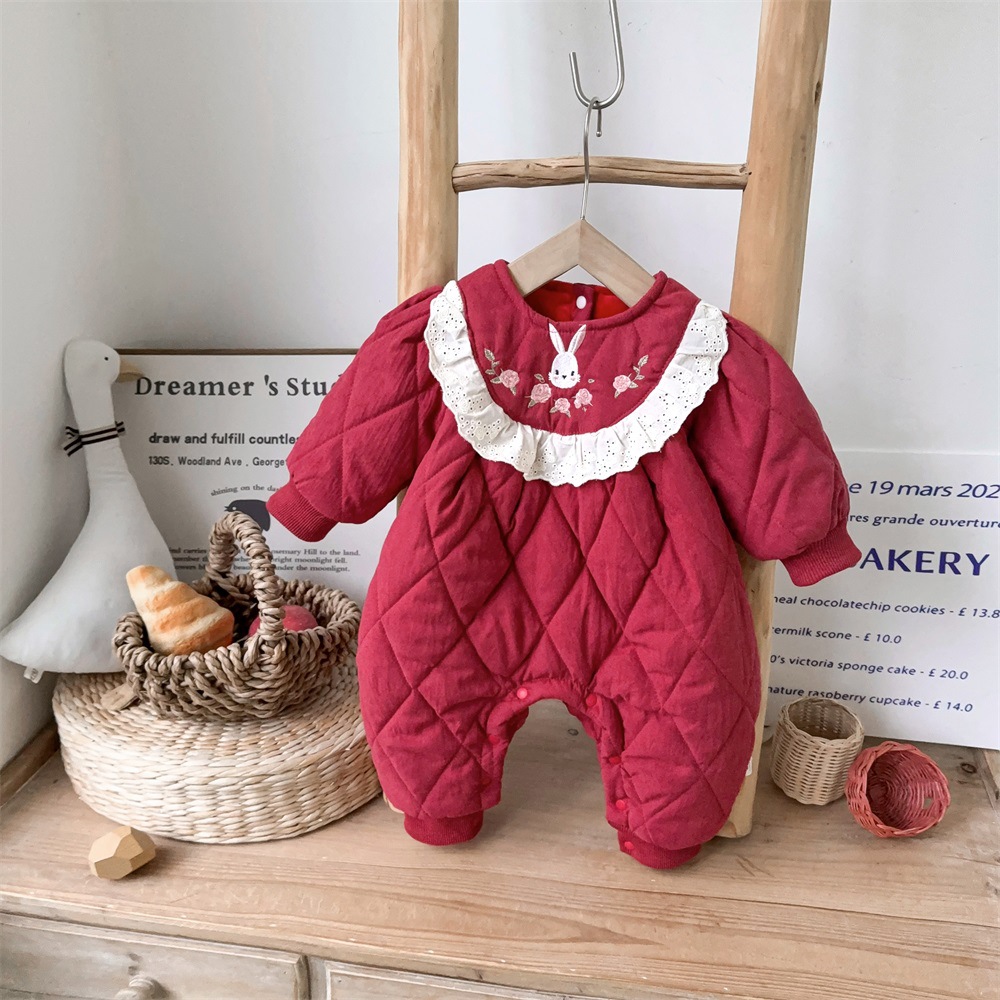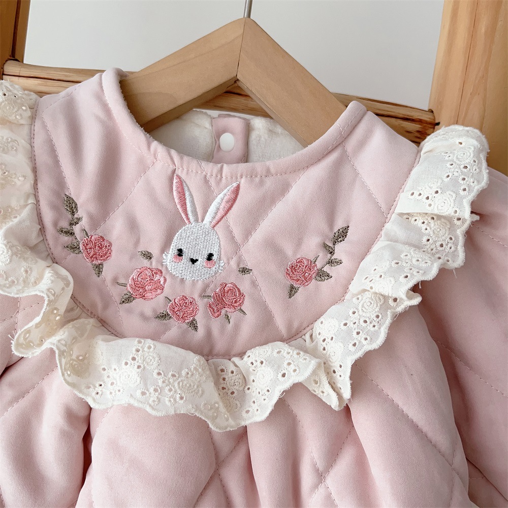 婴儿衣服秋冬可爱超萌女宝宝加绒哈衣桁棉加厚保暖连体衣外穿爬服