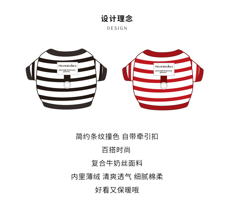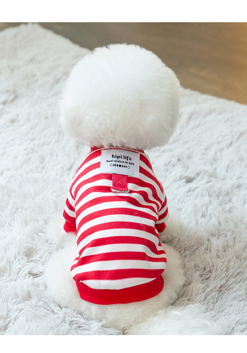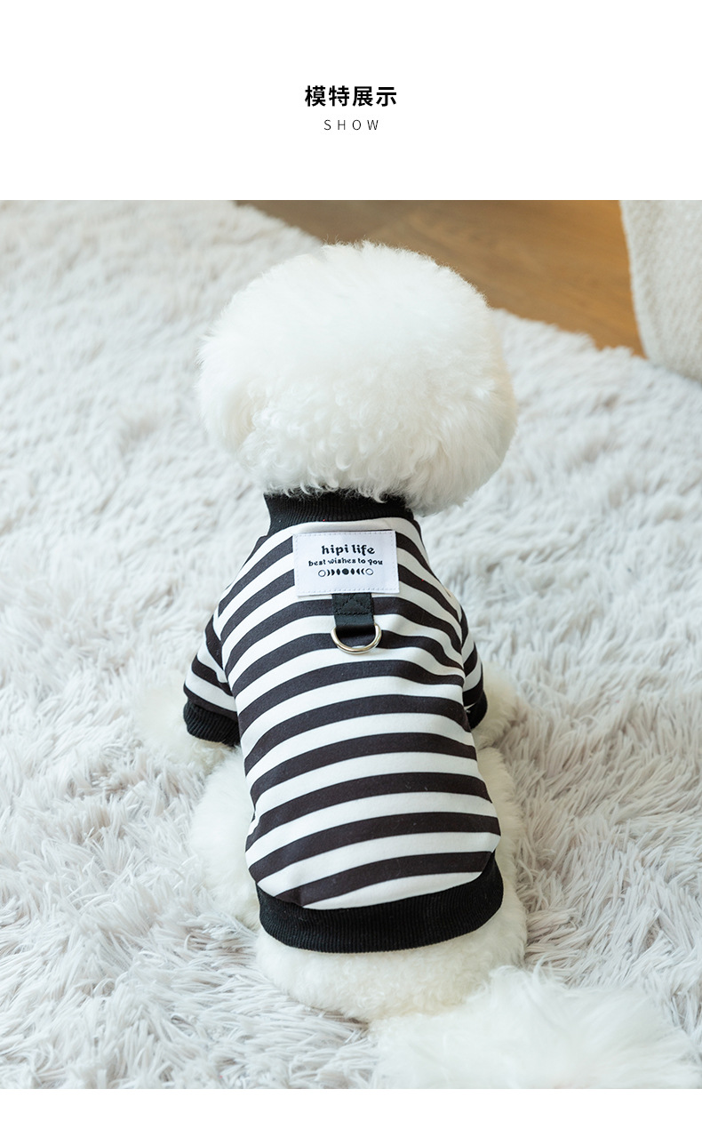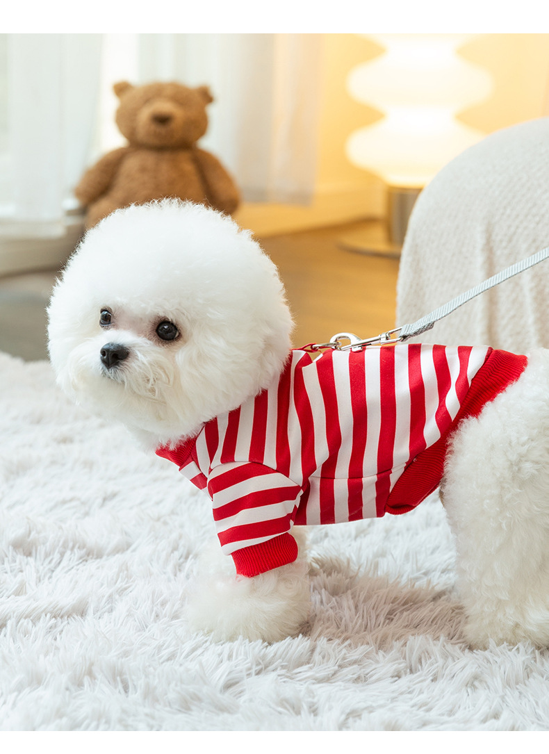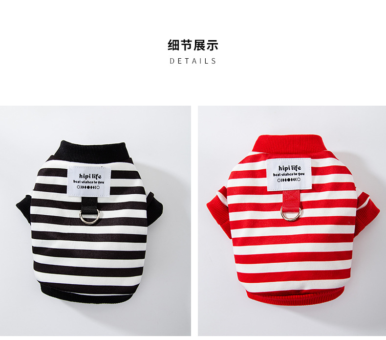 秋冬季狗狗简约条纹可牵引款卫衣休闲风猫咪两脚泰迪博美宠物衣服