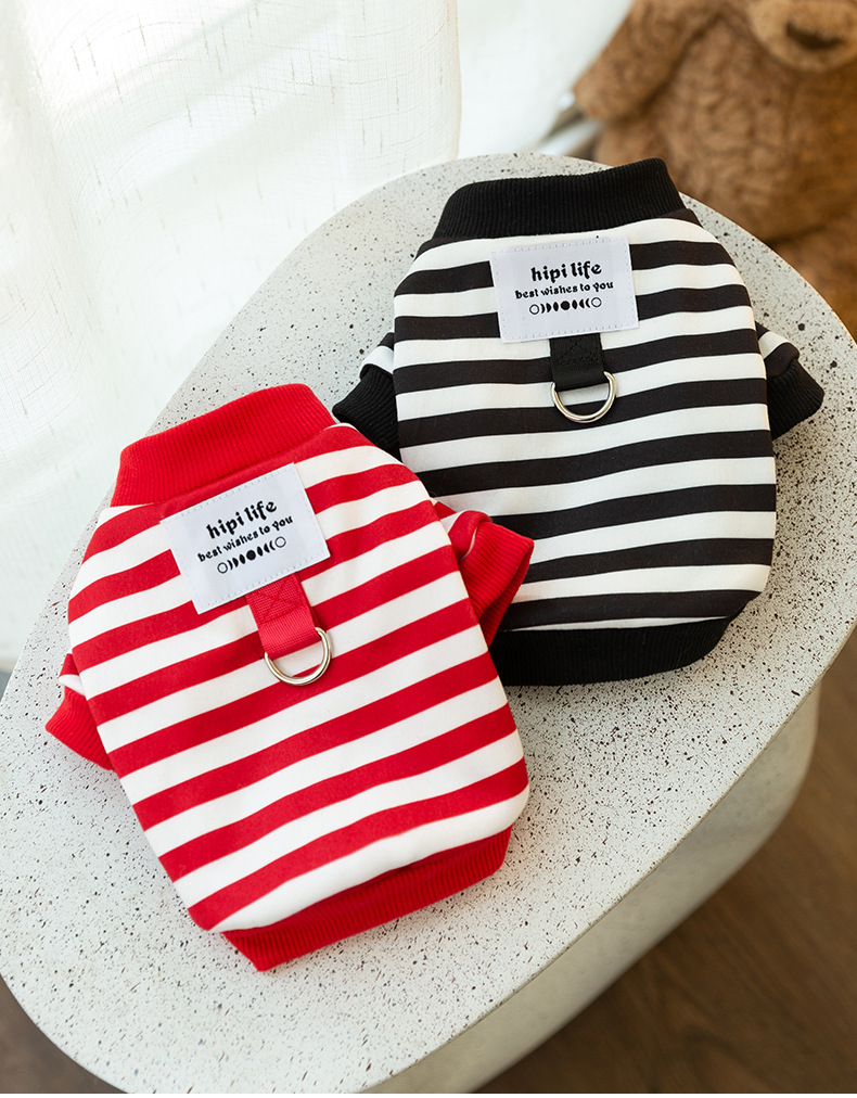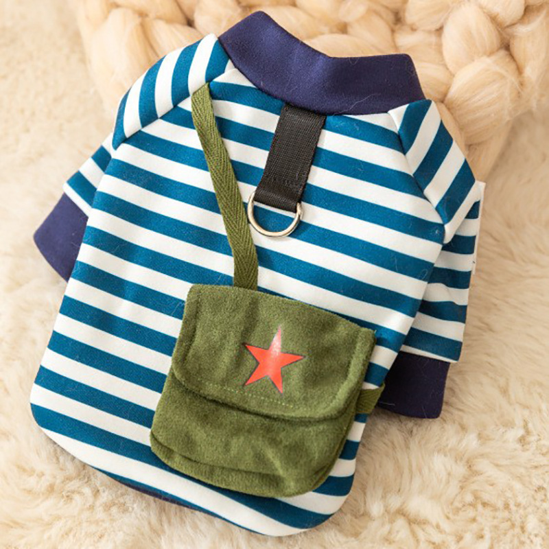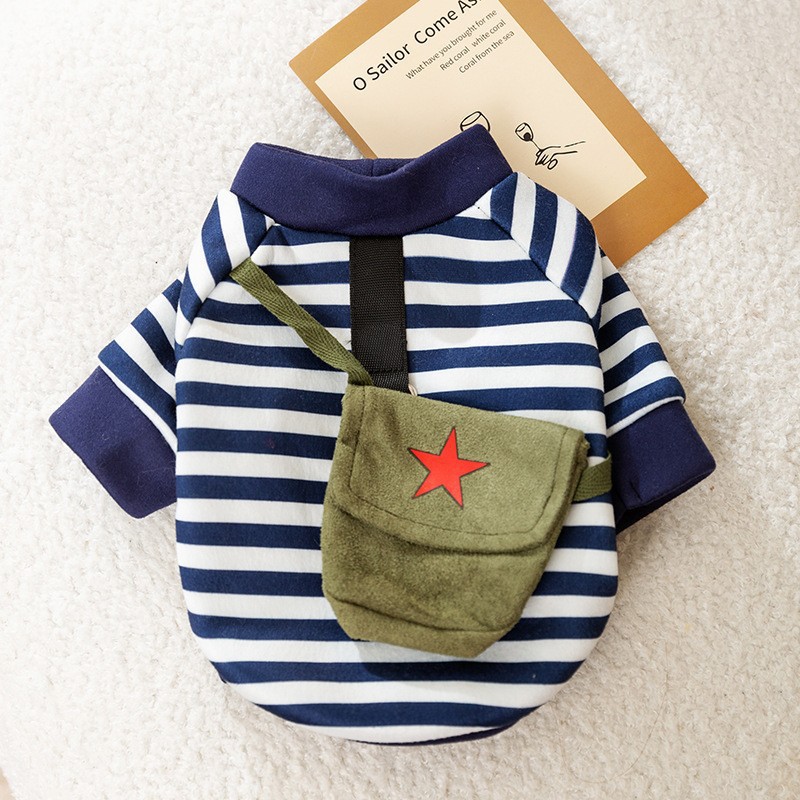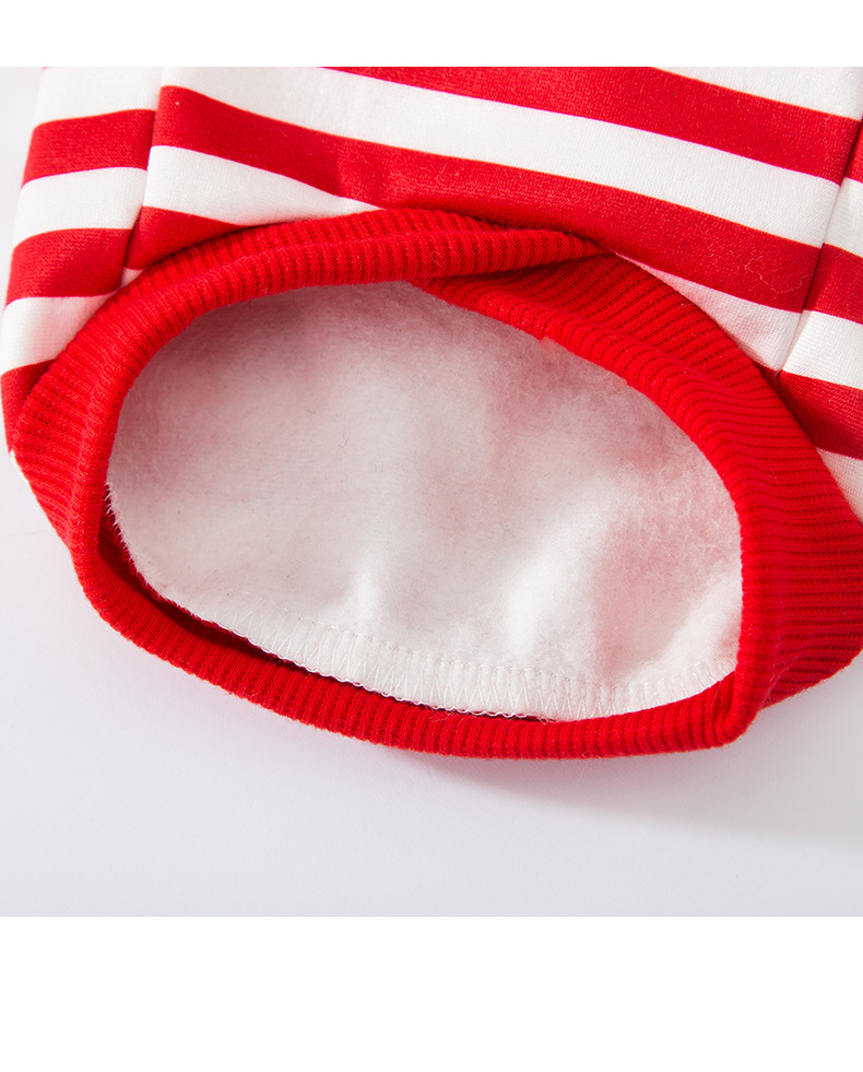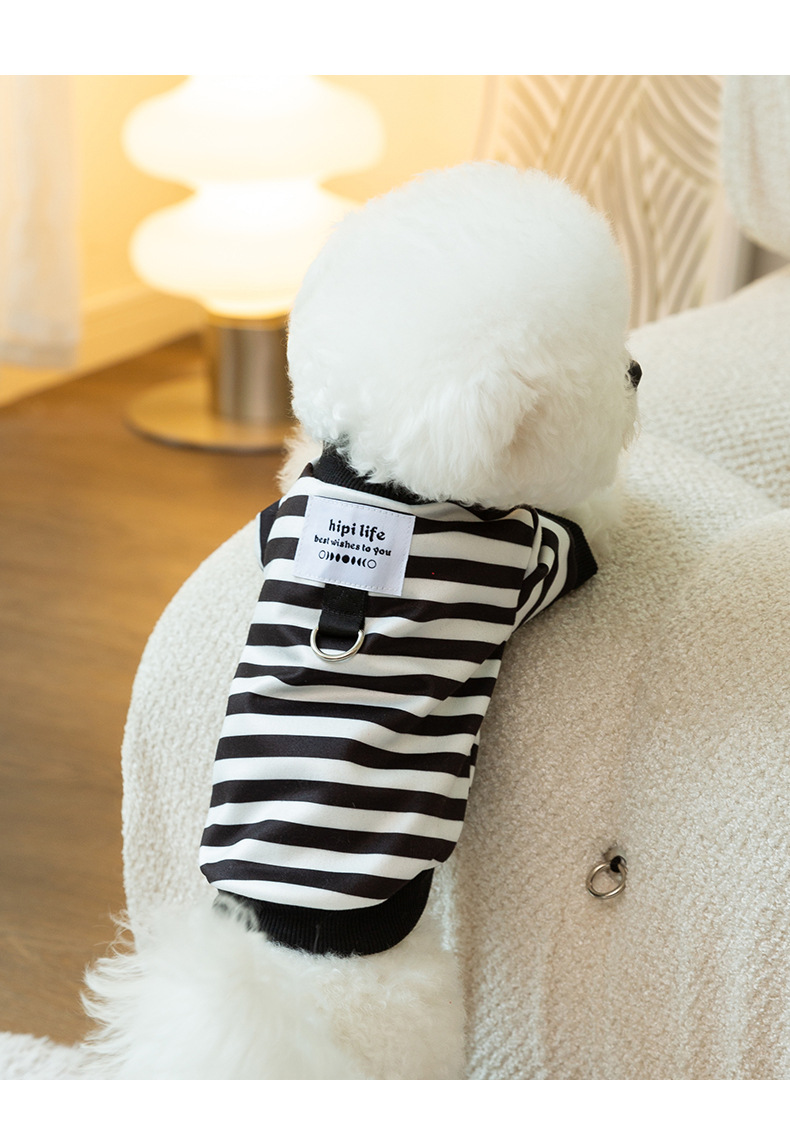秋冬季狗狗简约条纹可牵引款卫衣休闲风猫咪两脚泰迪博美宠物衣服