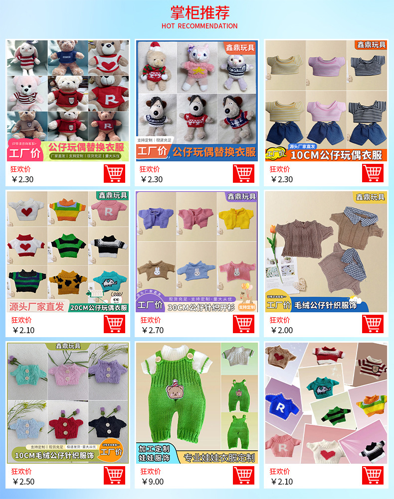 10cm娃衣批发西高地掌门狗衣服替换毛衣公仔玩偶配饰棉花娃娃衣服