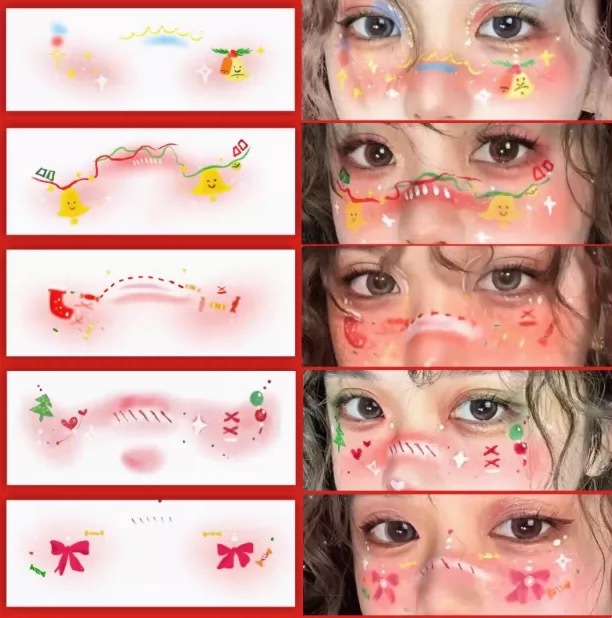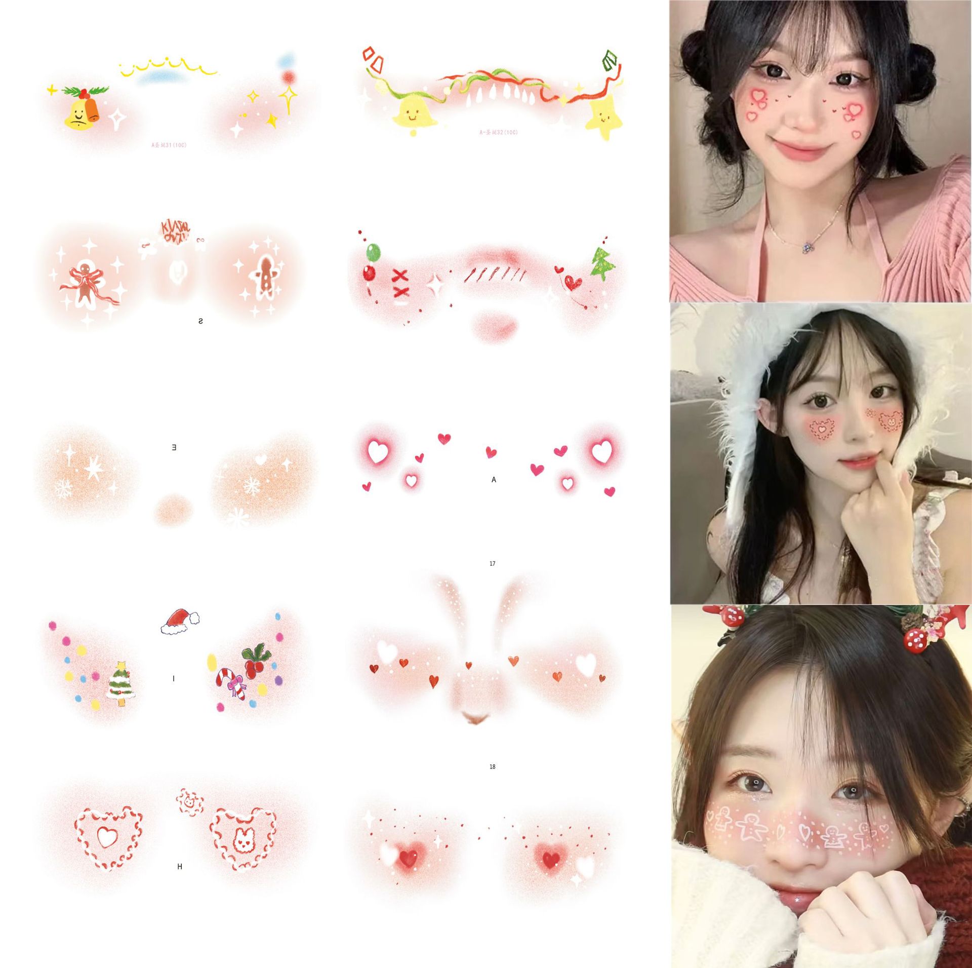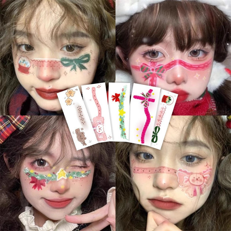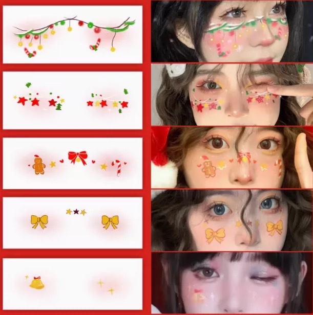 圣诞雪花纹身贴水转移圣诞老人脸贴卡通可爱贴纸一次性脸贴纹身贴