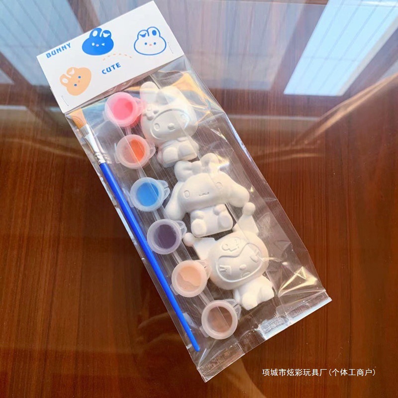 洛米新品玉桂狗圆盘涂色石膏娃娃草莓熊史迪仔贝蒂彩绘白胚批女生
