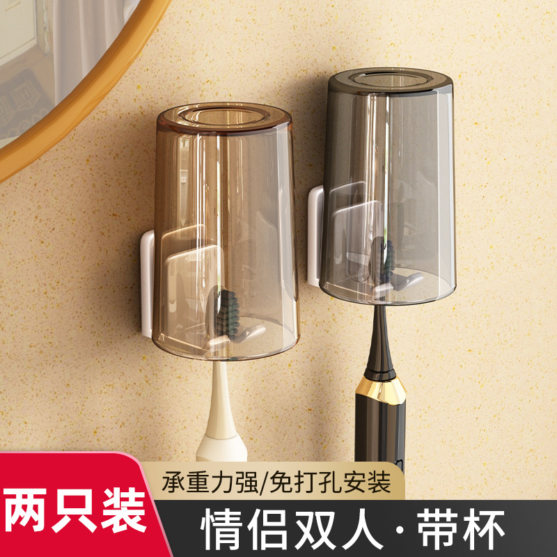 牙刷置物架免打孔壁挂式放牙杯牙刷漱口杯收纳挂墙式电动牙刷架子